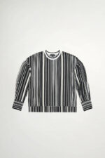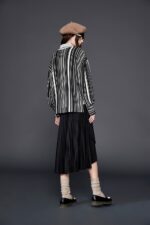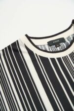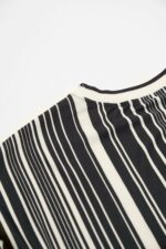 典雅黑白條紋圓領上衣 - 神祕純黑, 36