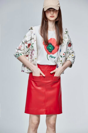 烈焰赤紅個性仿皮裙 - 耀眼赤紅, 38