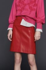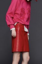 烈焰赤紅個性仿皮裙 - 耀眼赤紅, 38