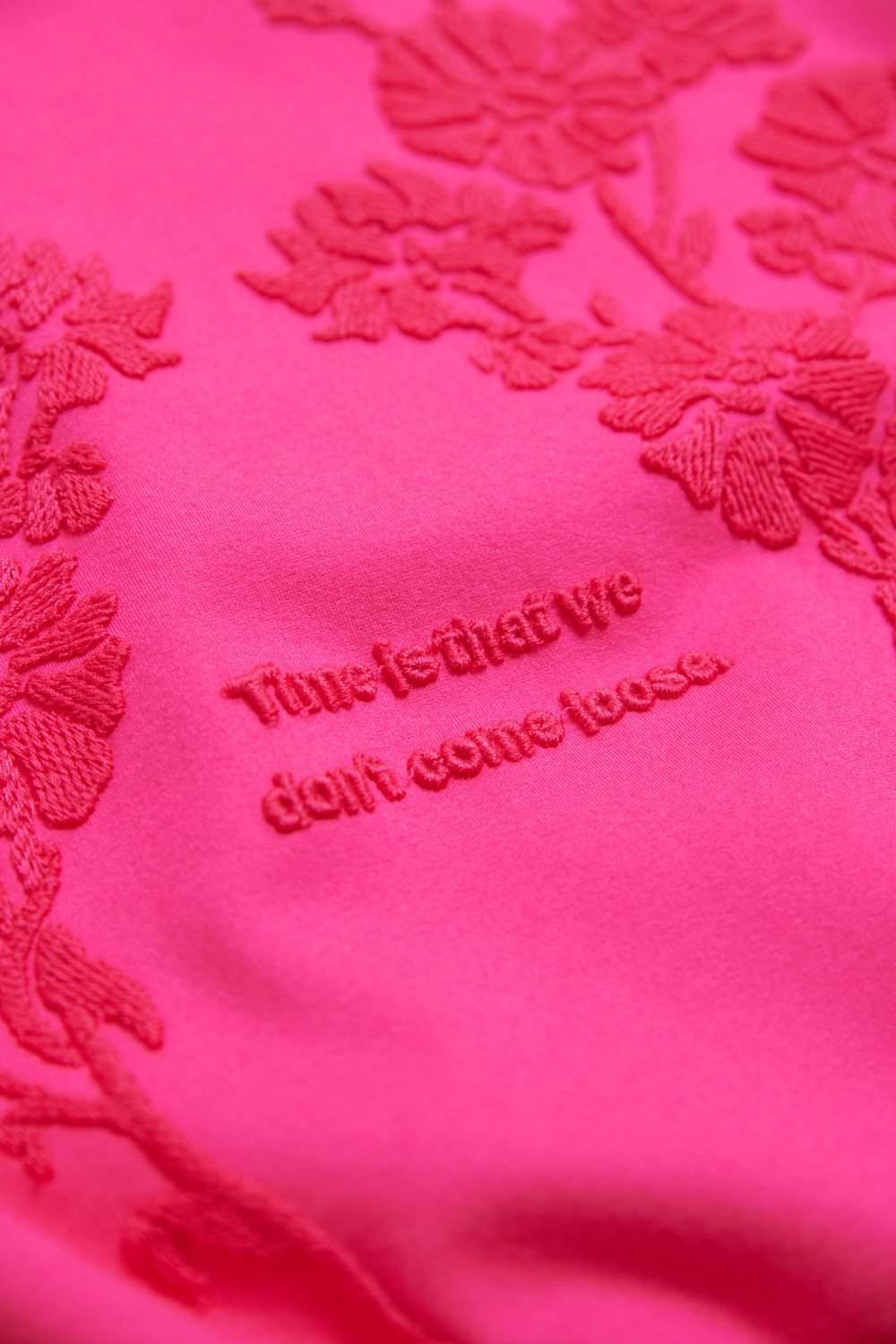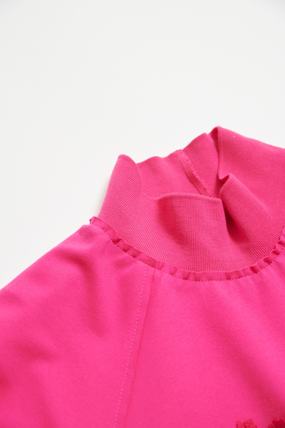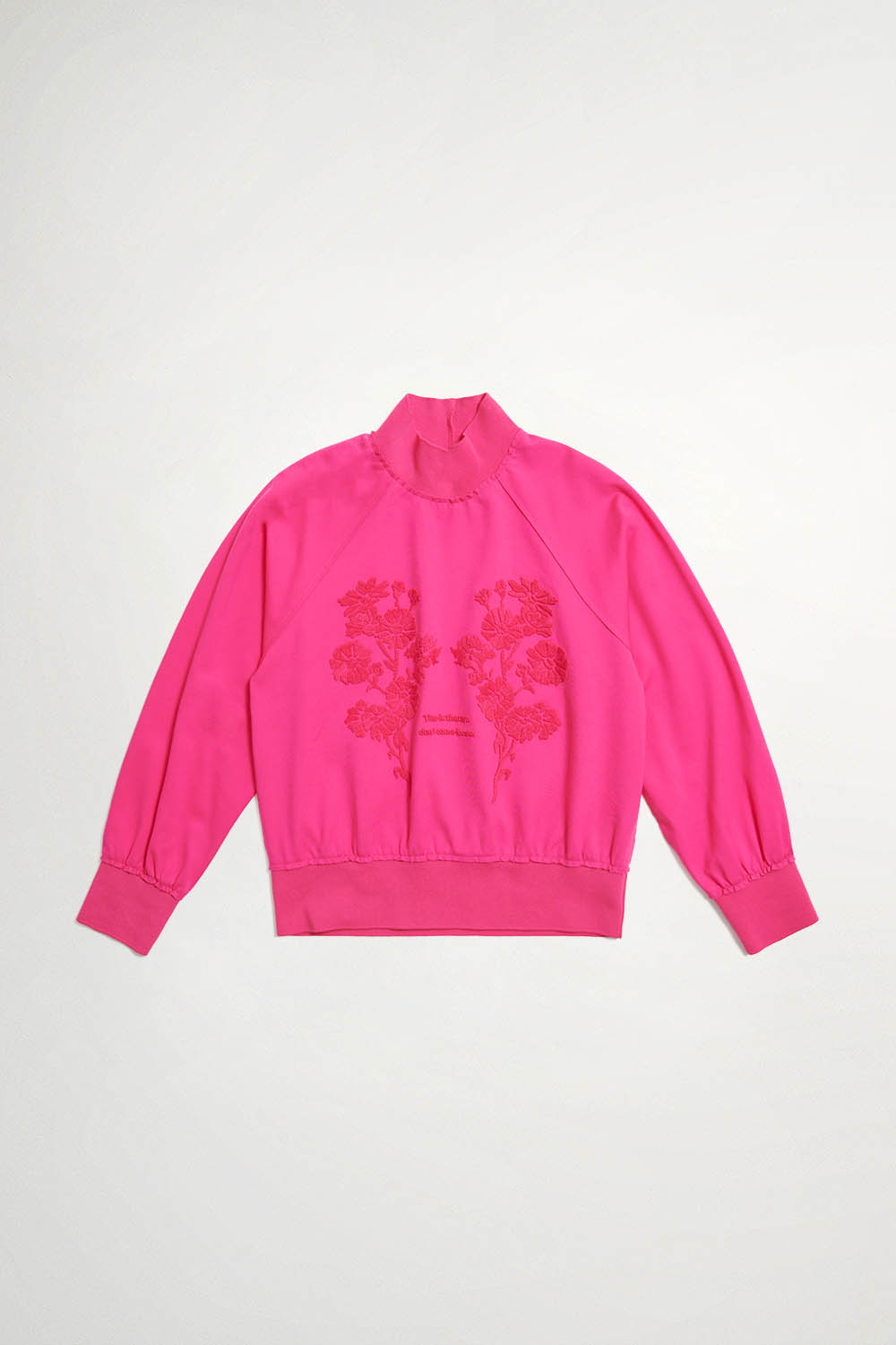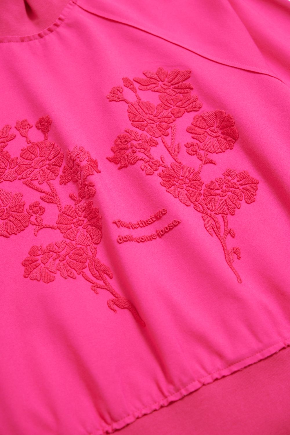粉黛花牆繡花立領上衣 - 胭脂桃紅, 38