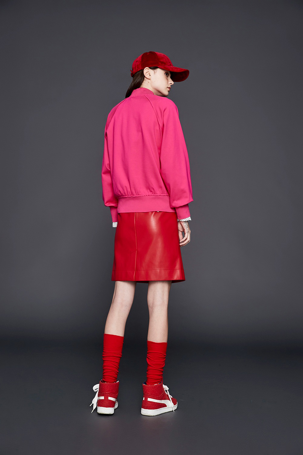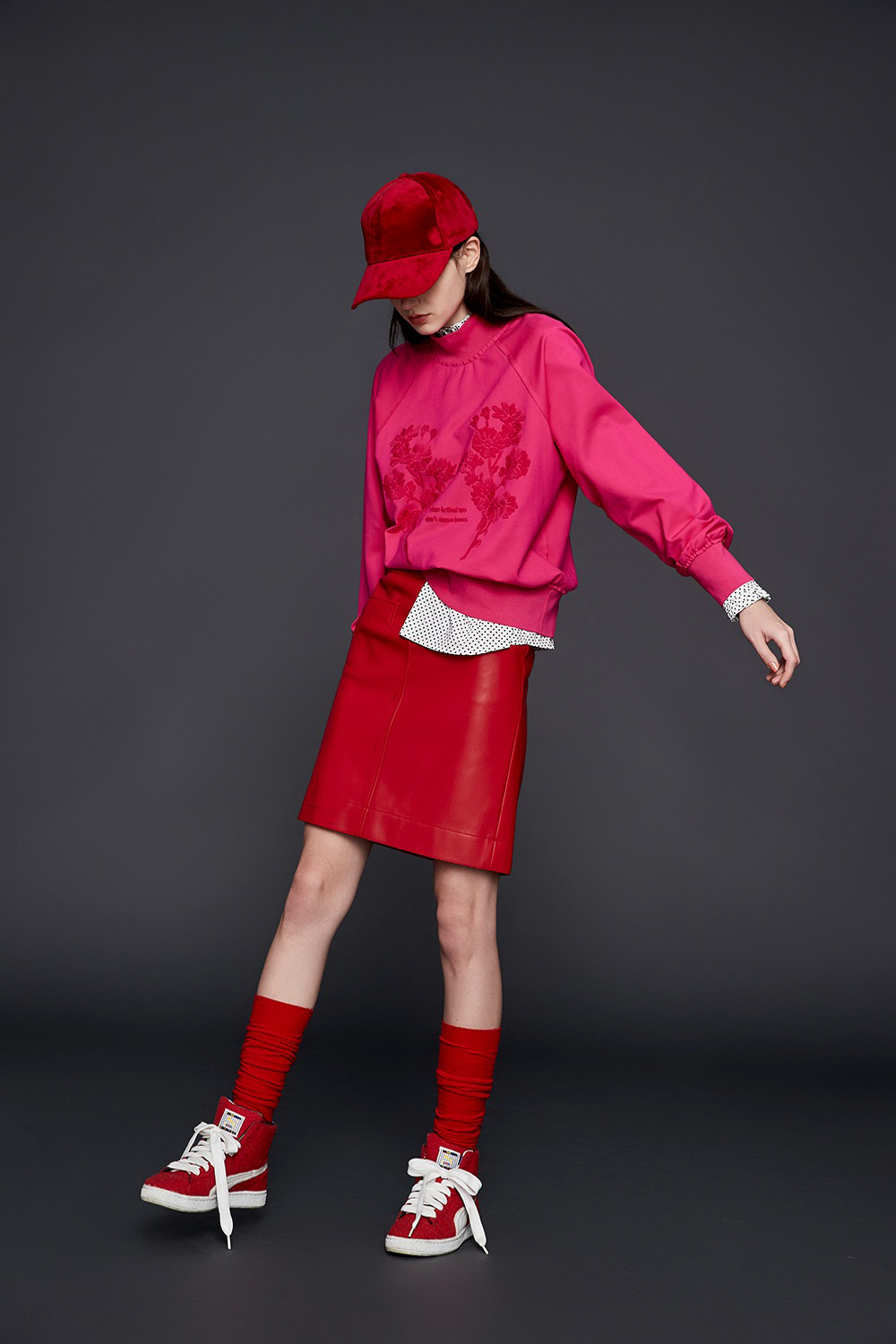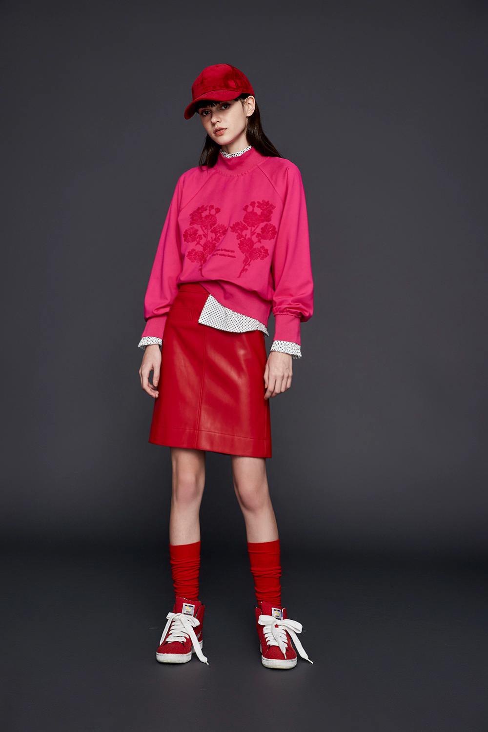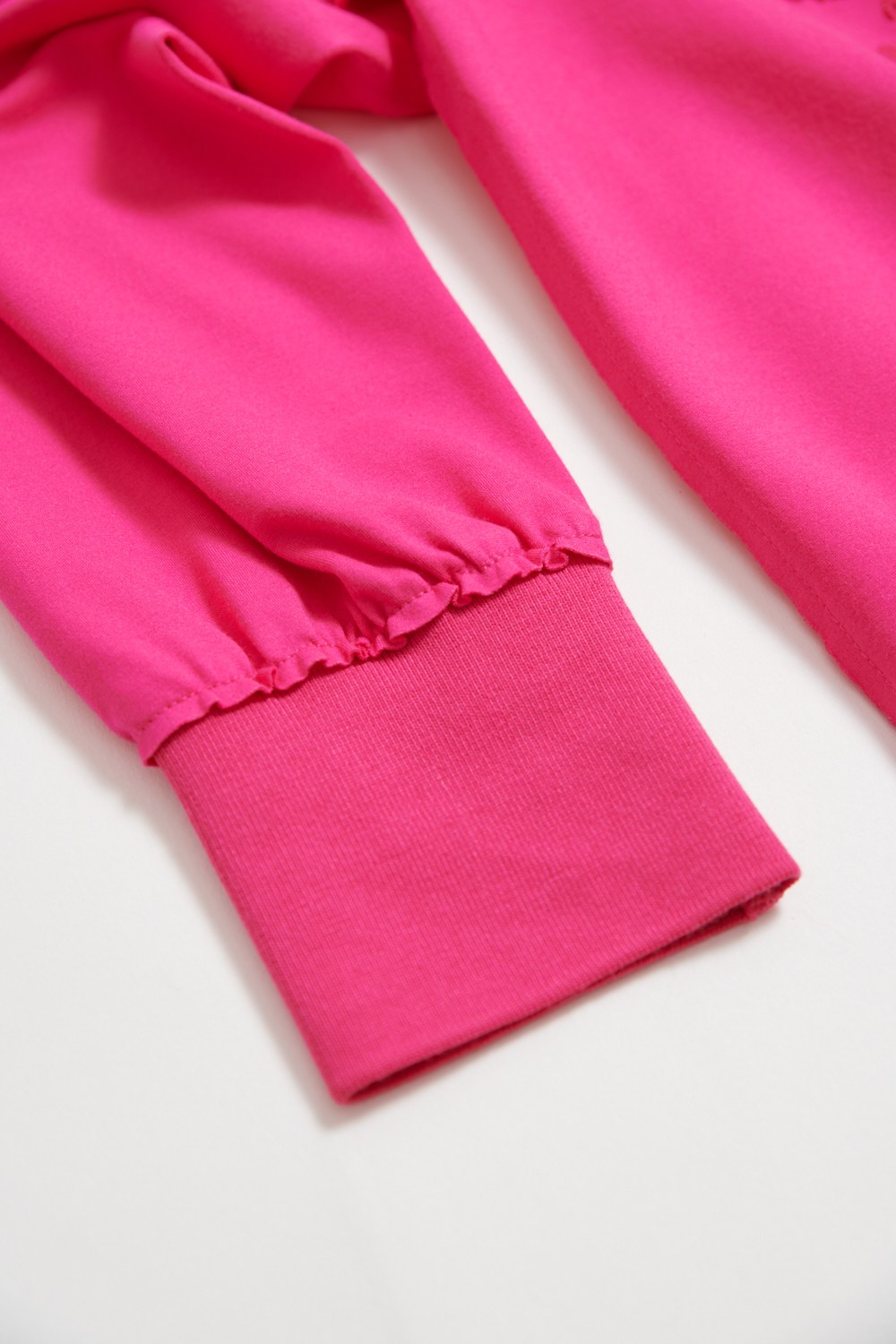 粉黛花牆繡花立領上衣 - 胭脂桃紅, 38