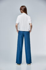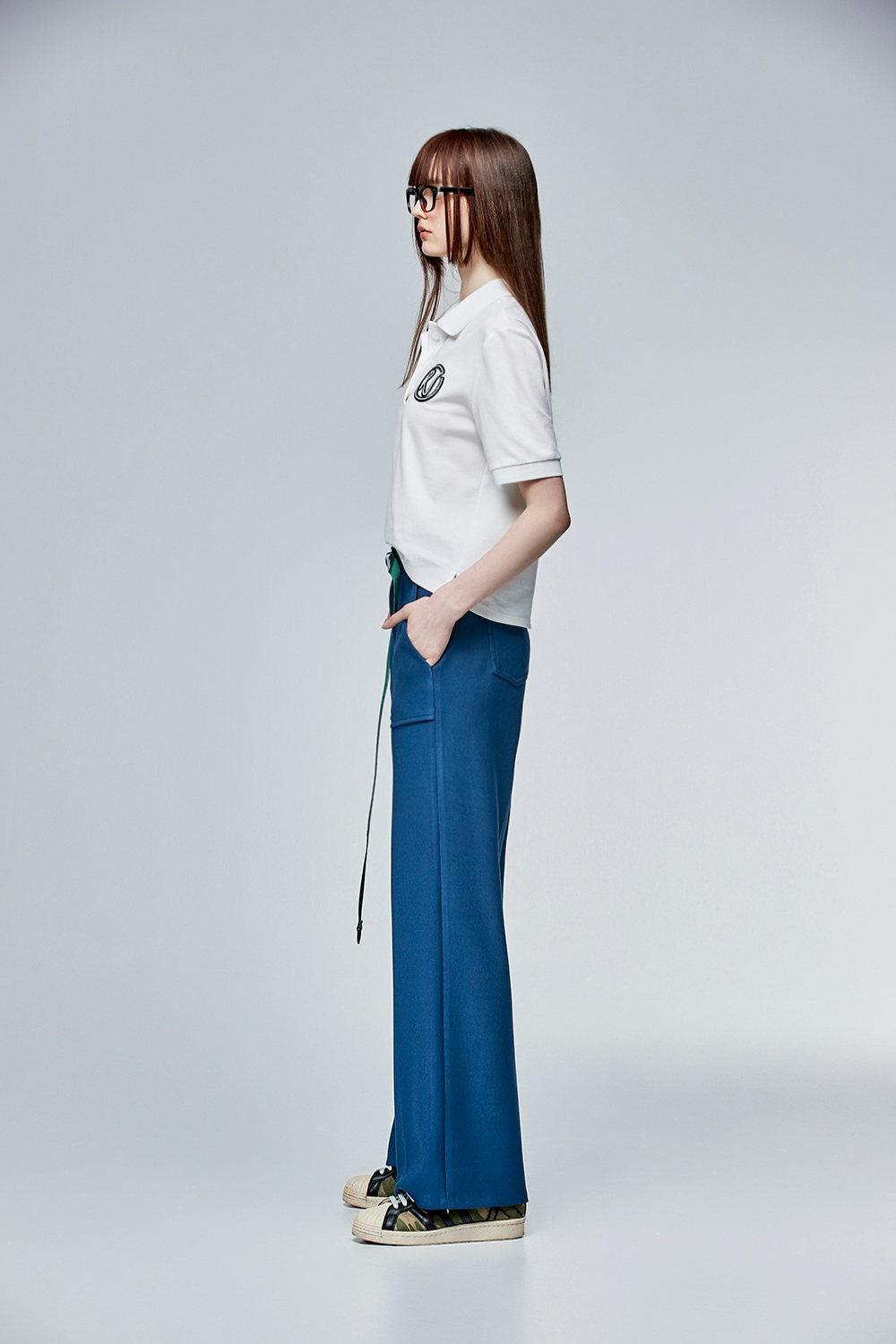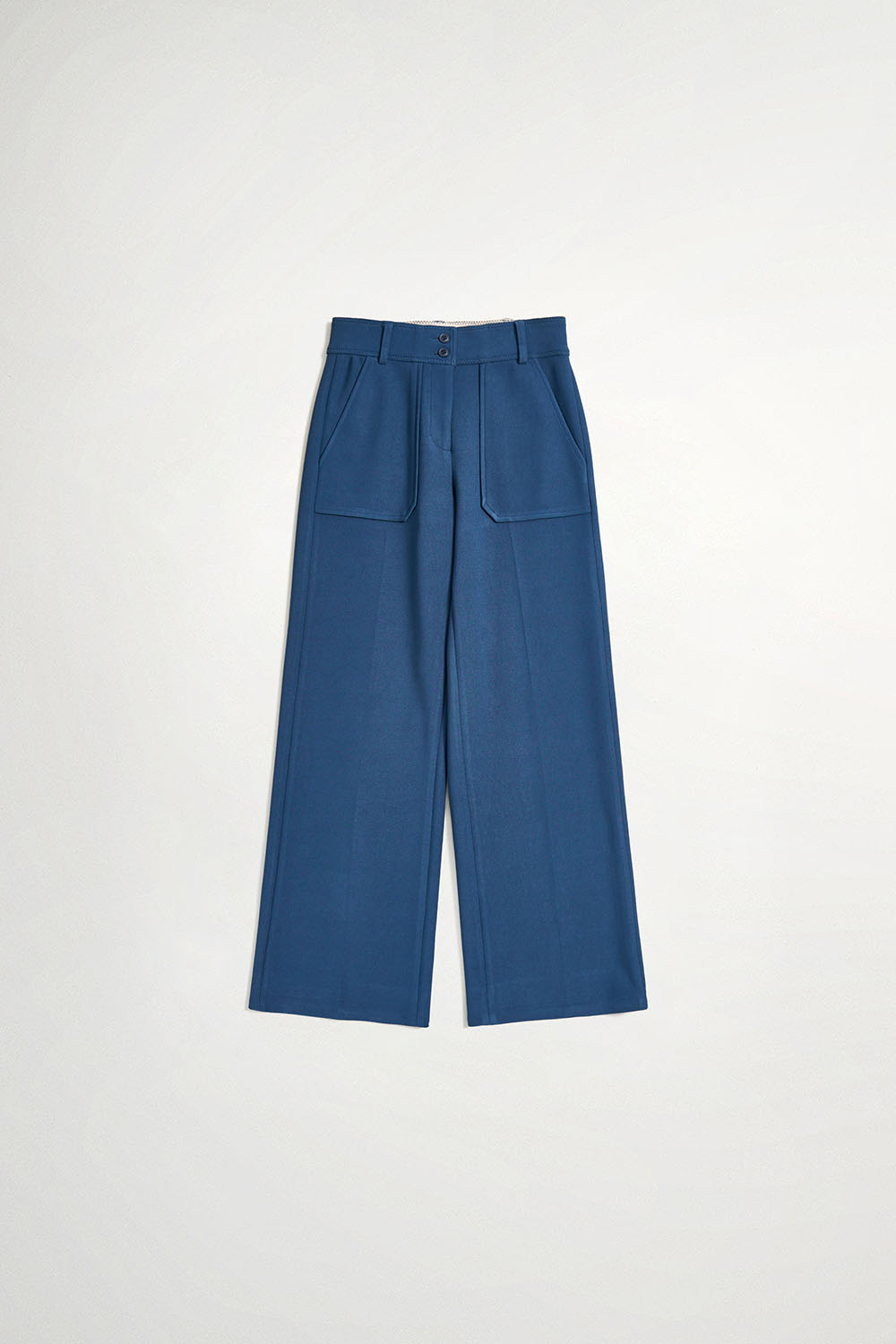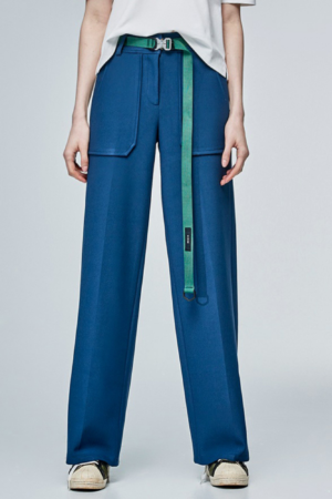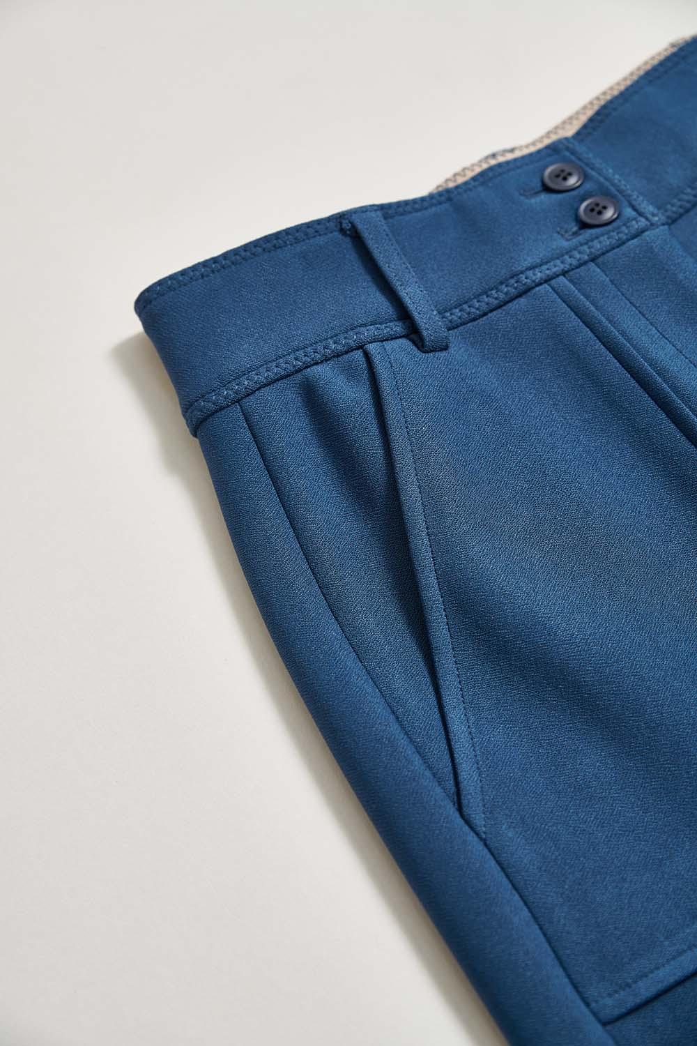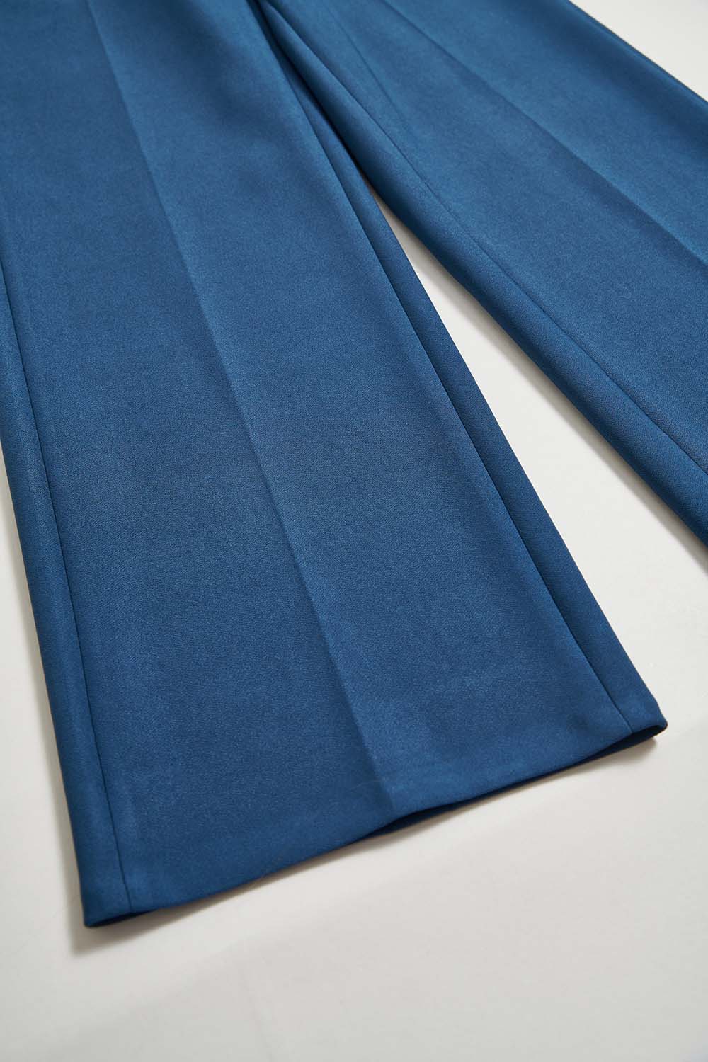 優雅知性鬆緊長寬褲 (黑 / 白 / 藍 / 綠 / 卡其 ) - 寧靜黛藍, 40