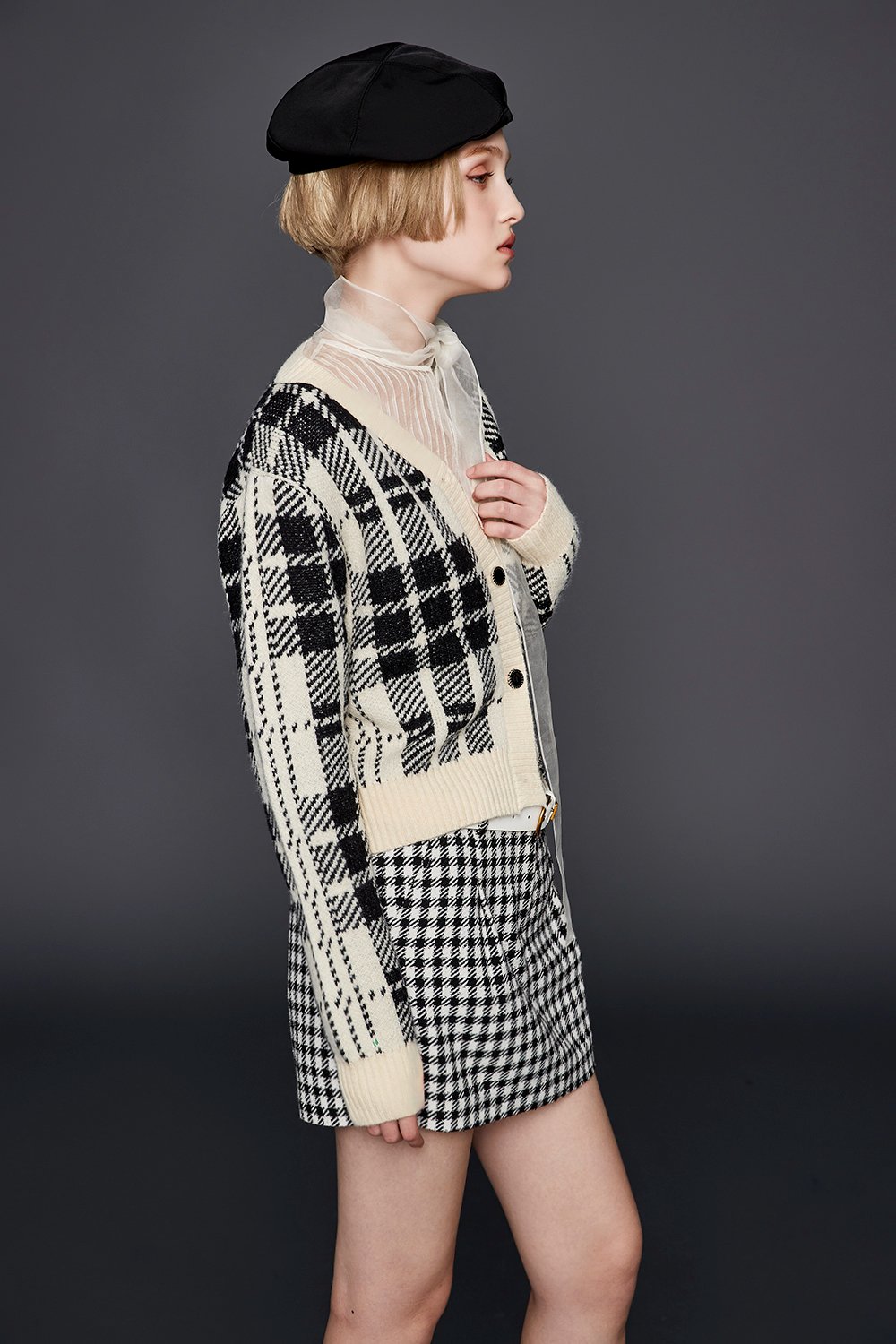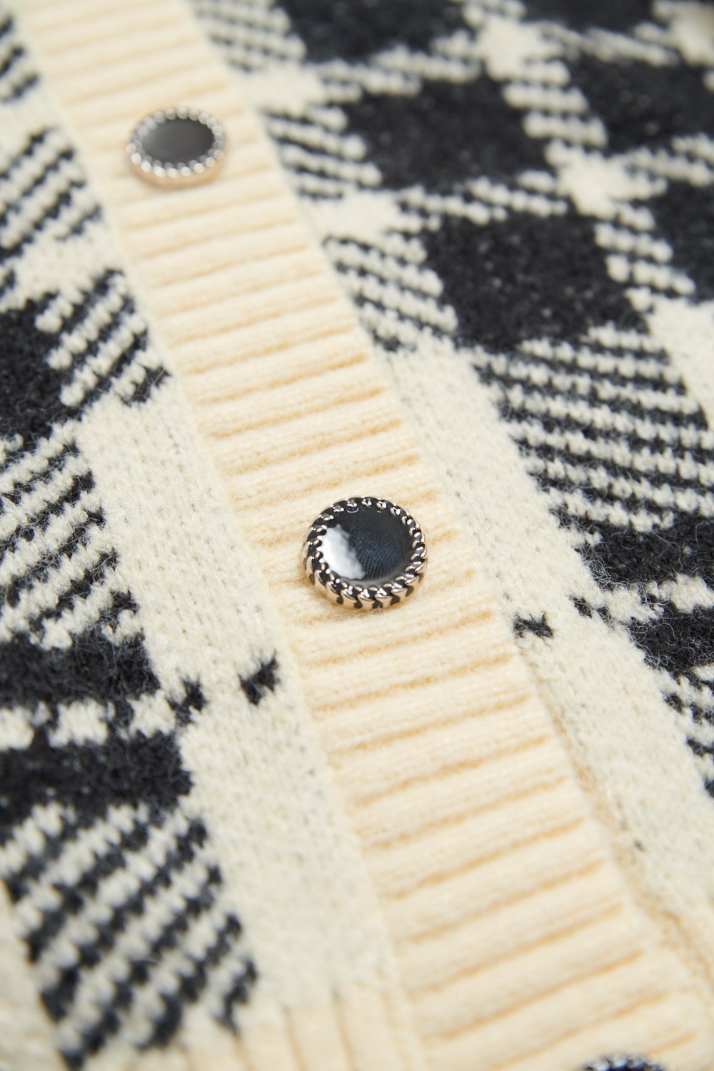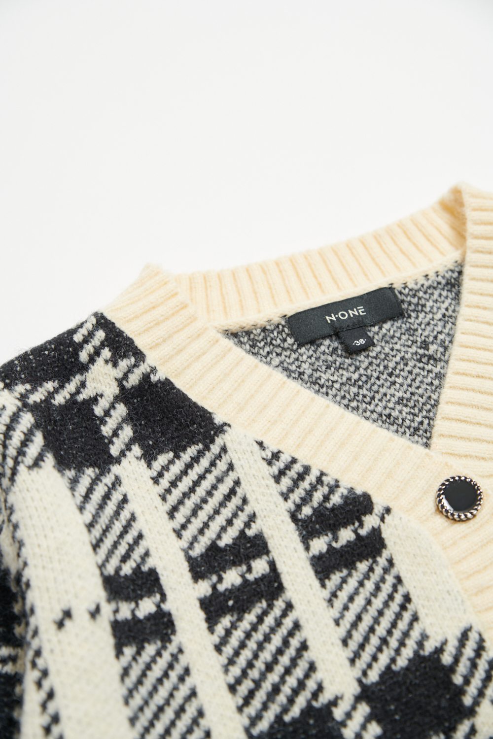 靜覓時光格紋針織外套 - 可可卡其, 36