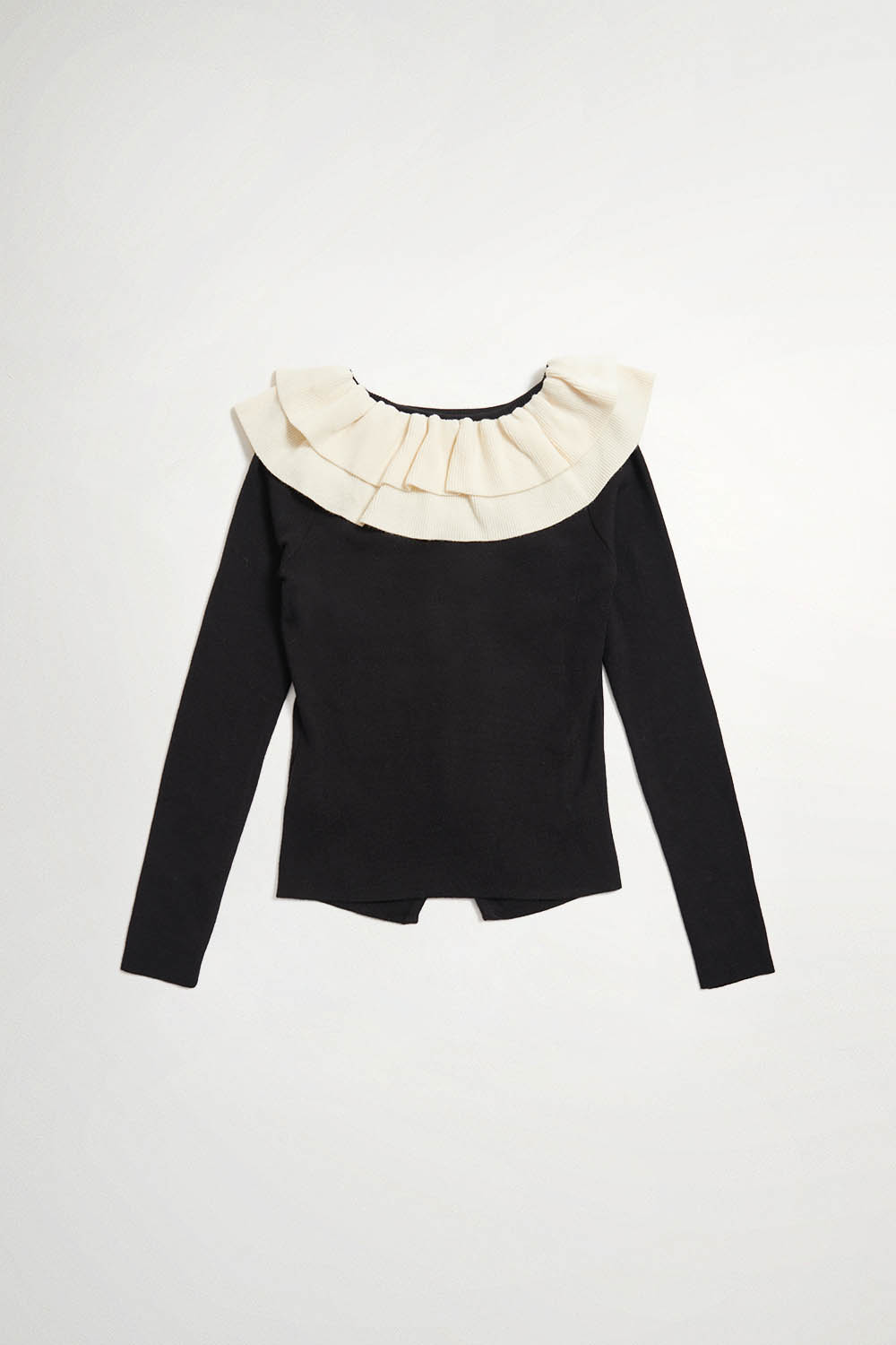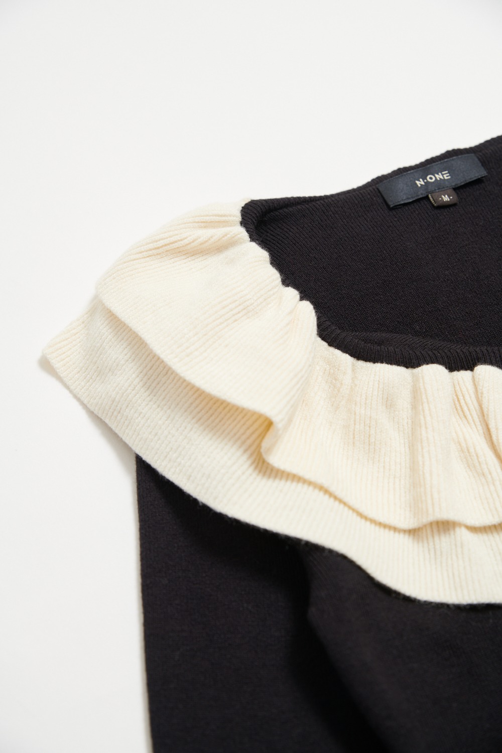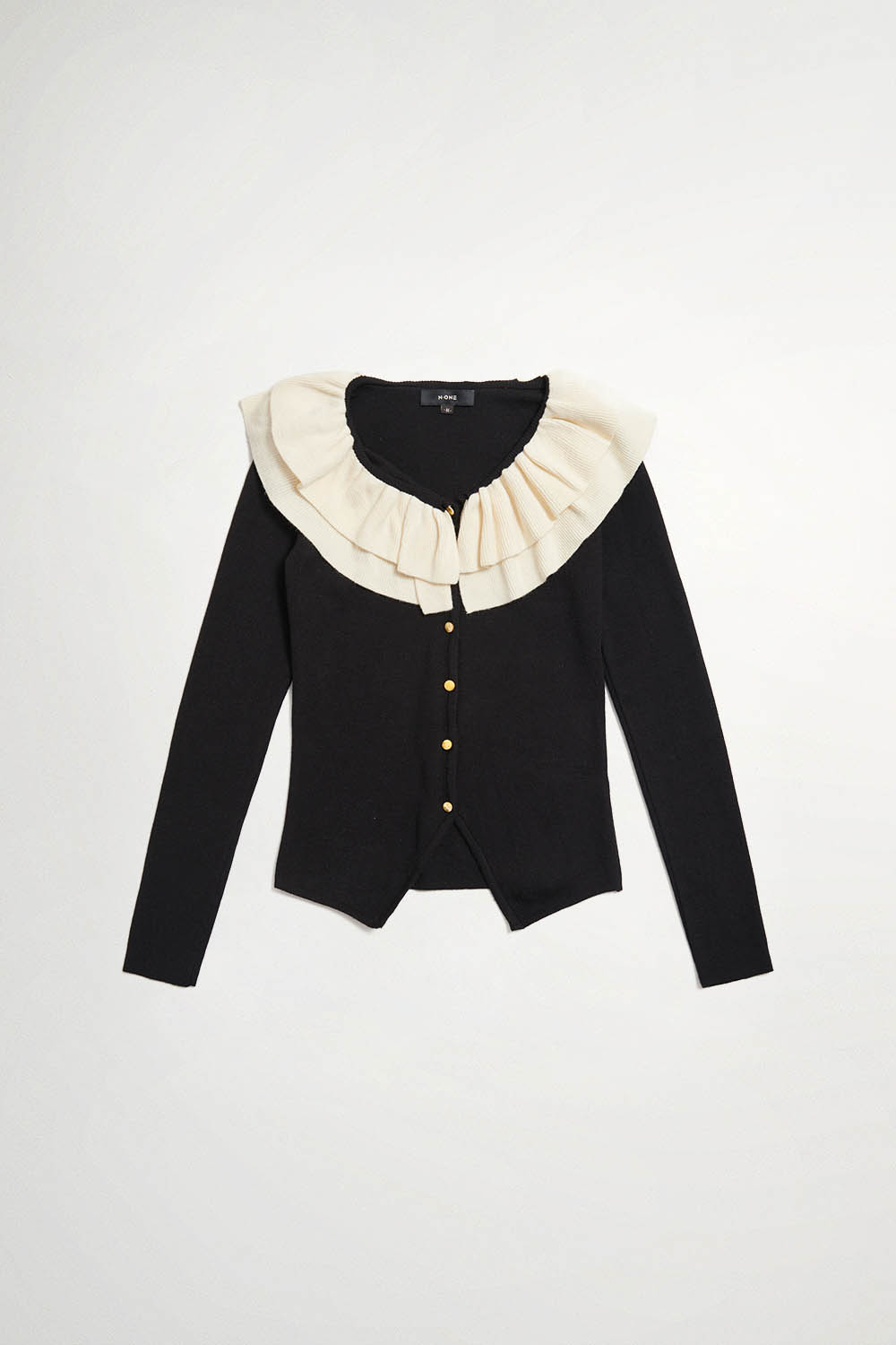 初戀協奏曲雙層荷葉針織外套 - 神祕純黑, 36