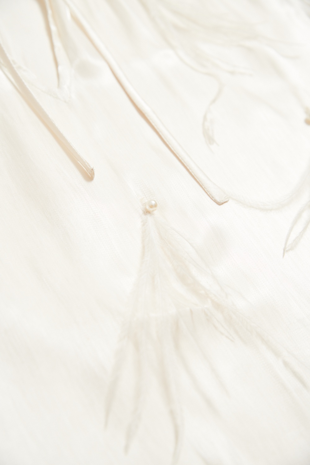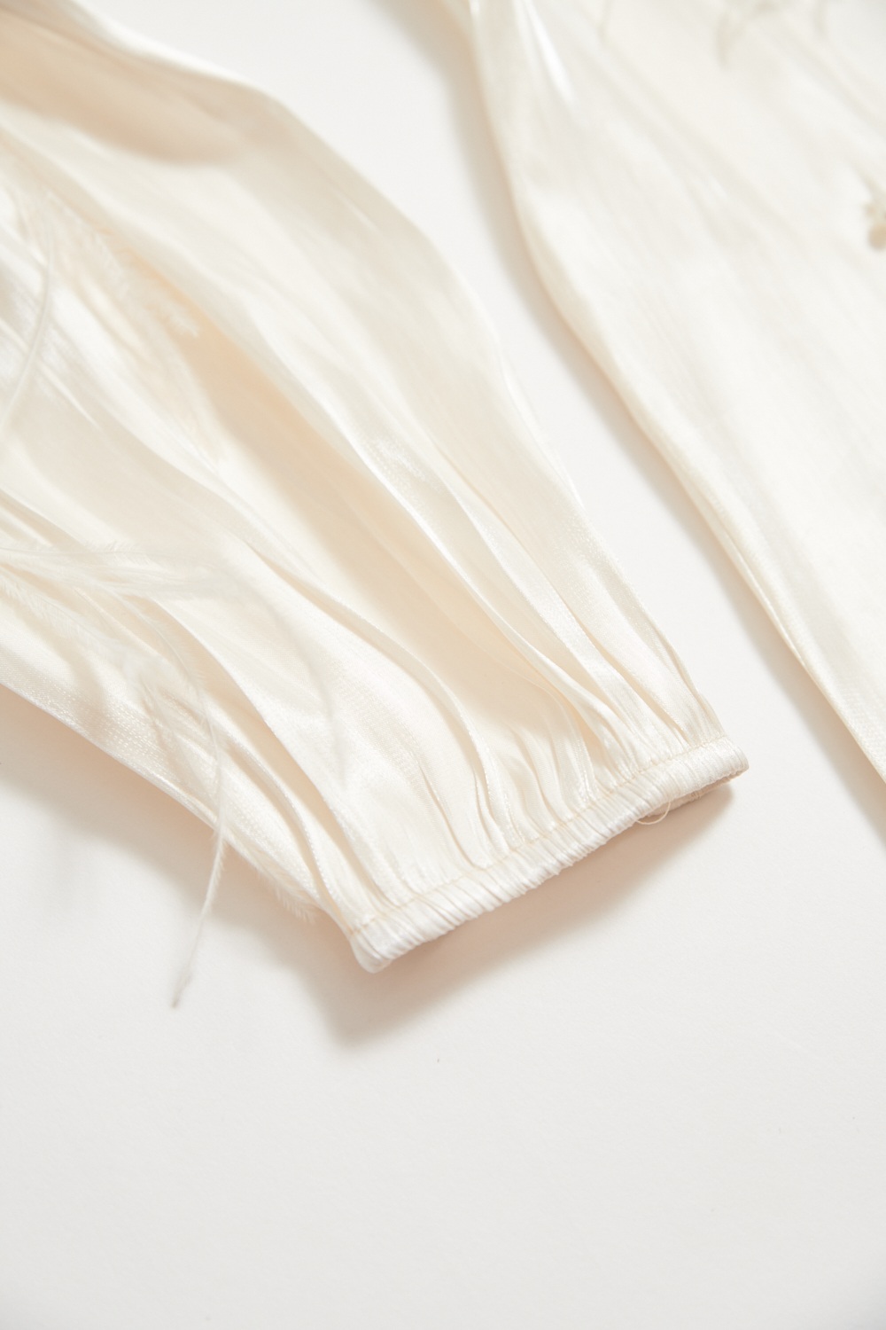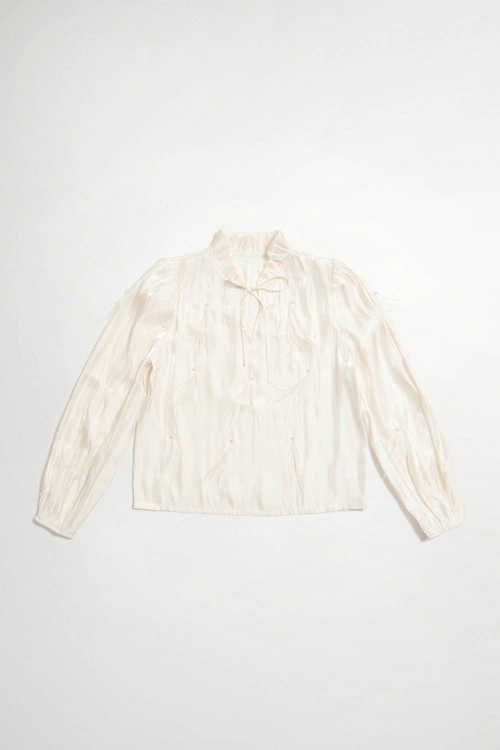 邂逅珍珠光羽毛上衣 - 奶油杏色, 36