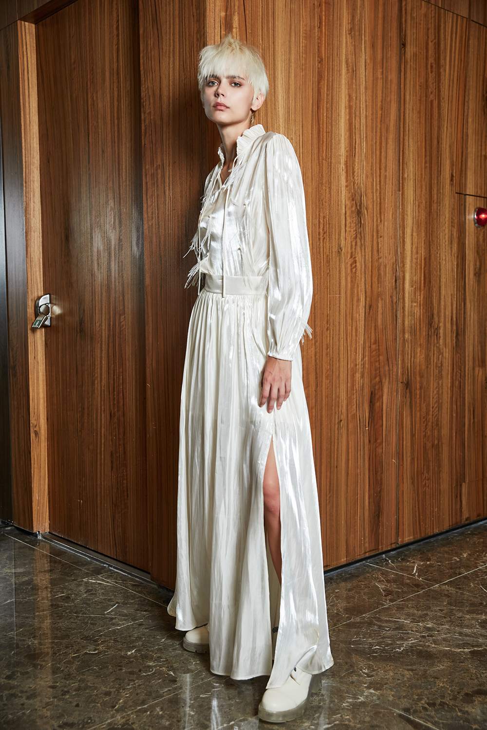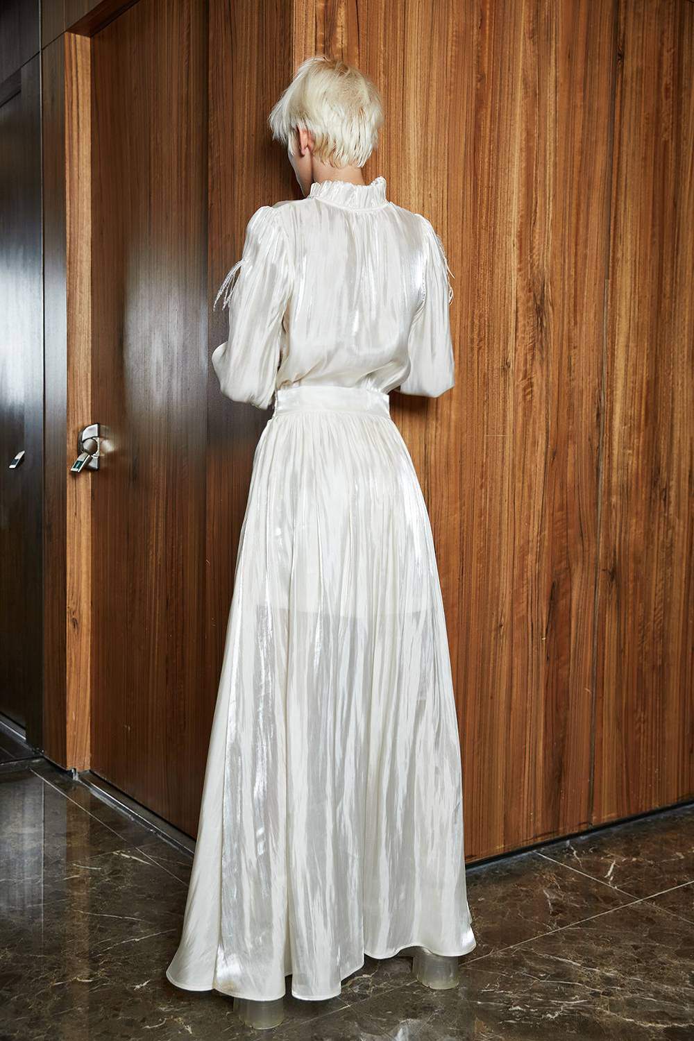 讓溫柔定格,搭配上銀光珍珠感面料,將美好留下是這件裙子的意義