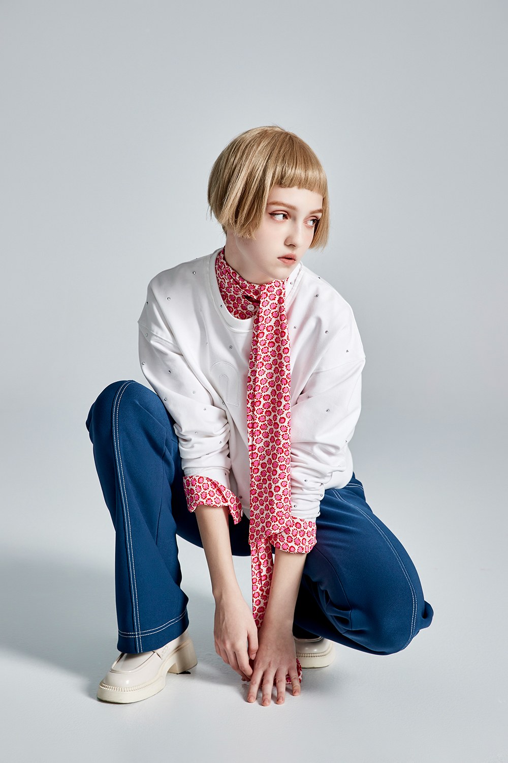 心動的冬日穿搭,搭配上綁帶印花上衣,小眾之中縱容無數浪漫幻想。