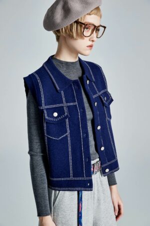 藍調時光壓線針織外套 - 深邃藏藍, 38