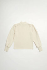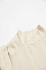 待盞傾感法式感立領內刷毛澎袖上衣(杏&咖) - 奶油杏色, F