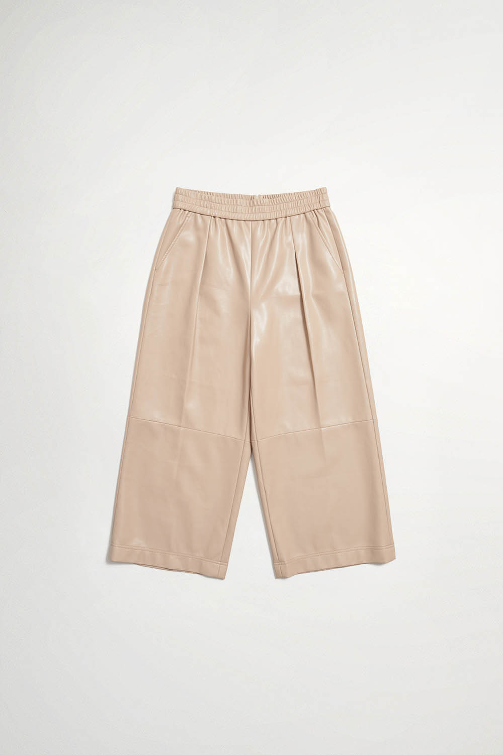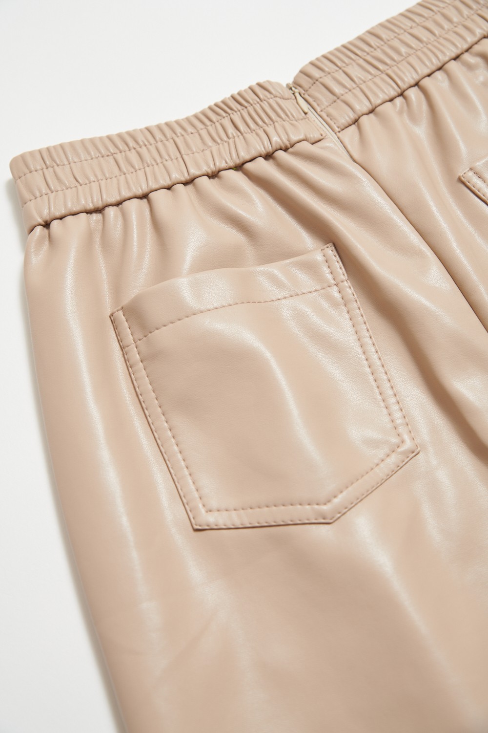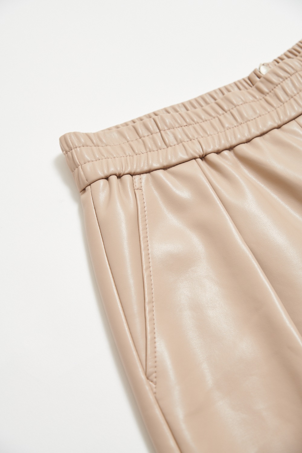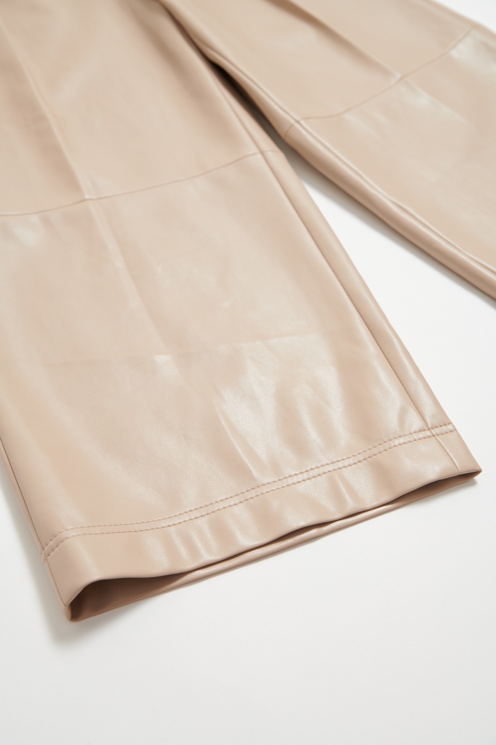 馥鬱拿鐵質感仿皮寬褲 - 可可卡其, 36