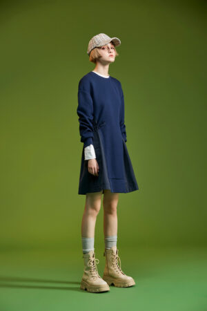 融入溫暖恬靜的深藍色,中和收腰設計,裝下秋冬的溫暖與颯美。