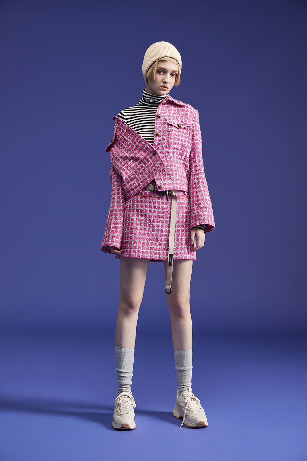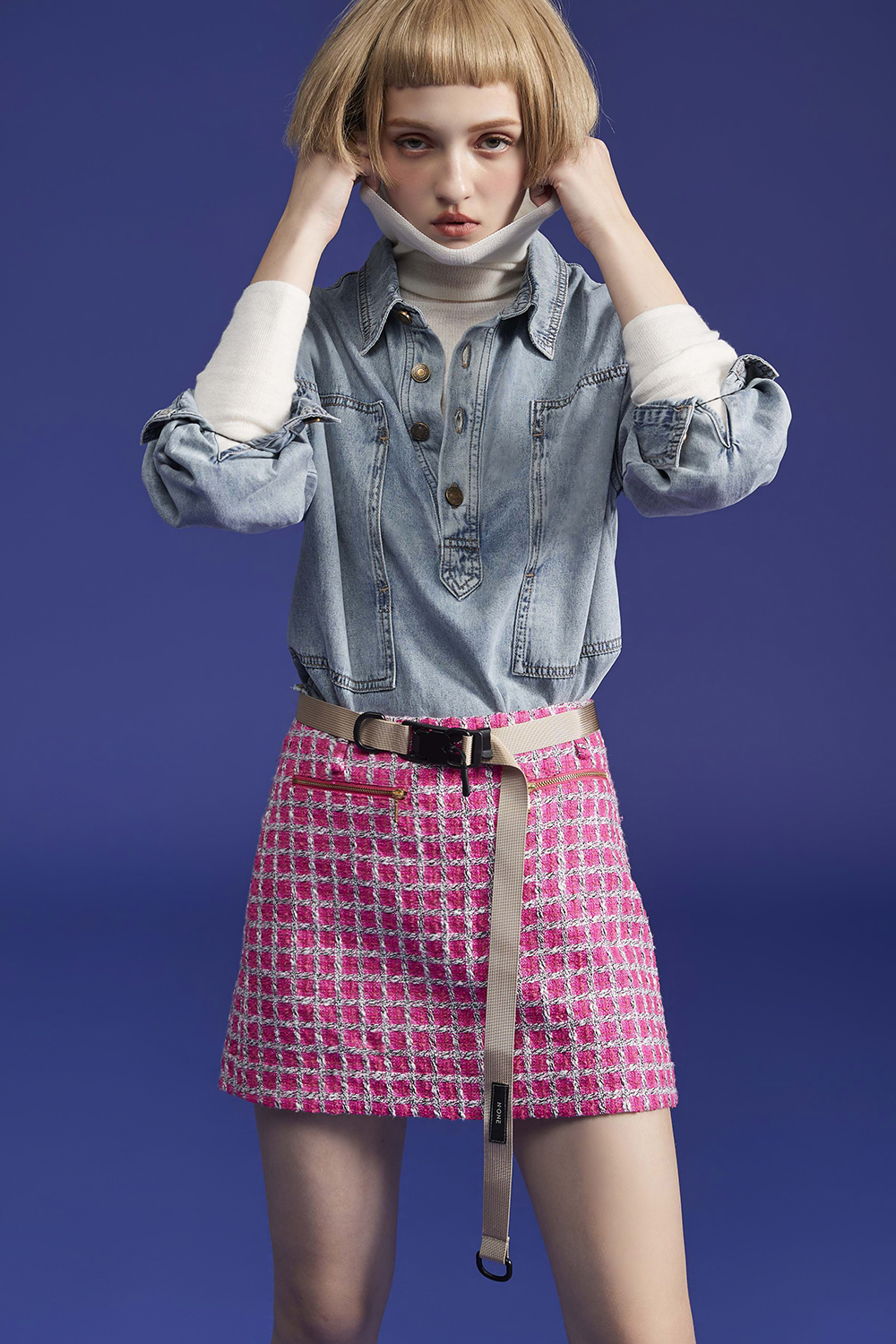 法式浪漫短裙,與花紗面料相映成趣 ,相約冬日的陽光下。