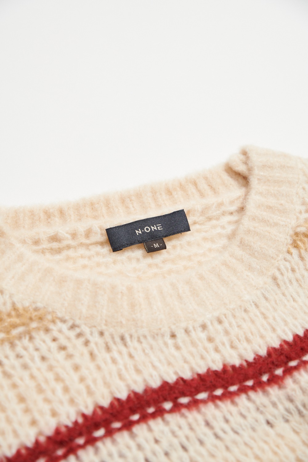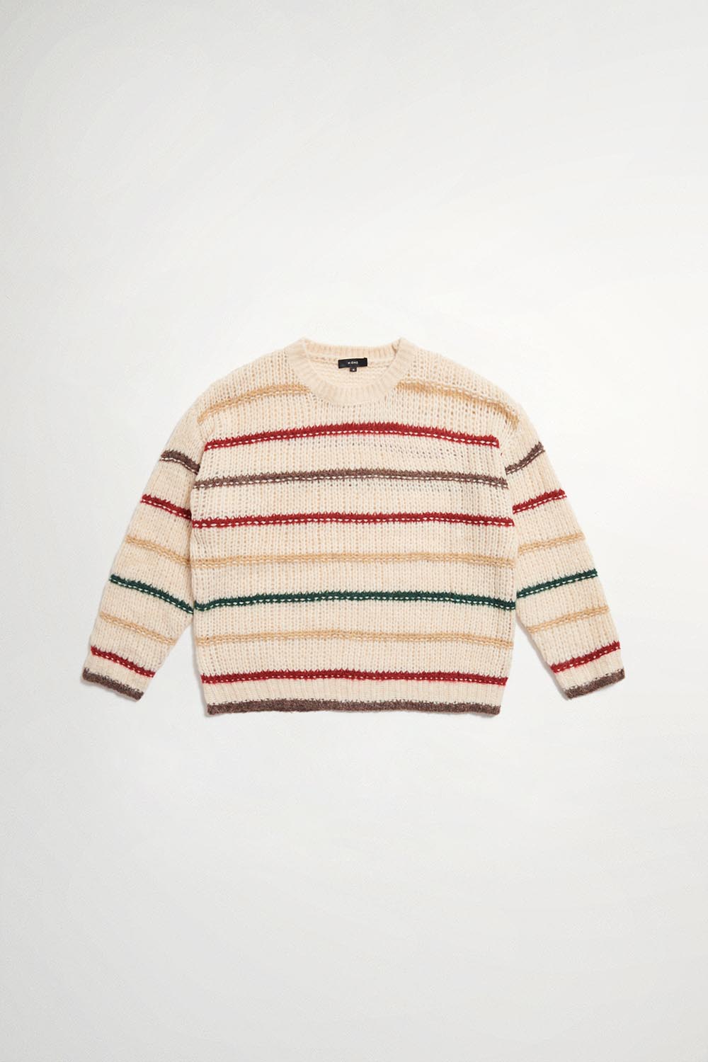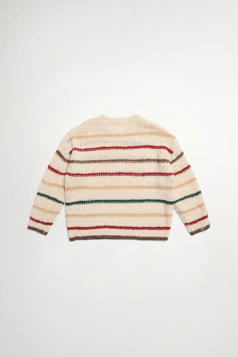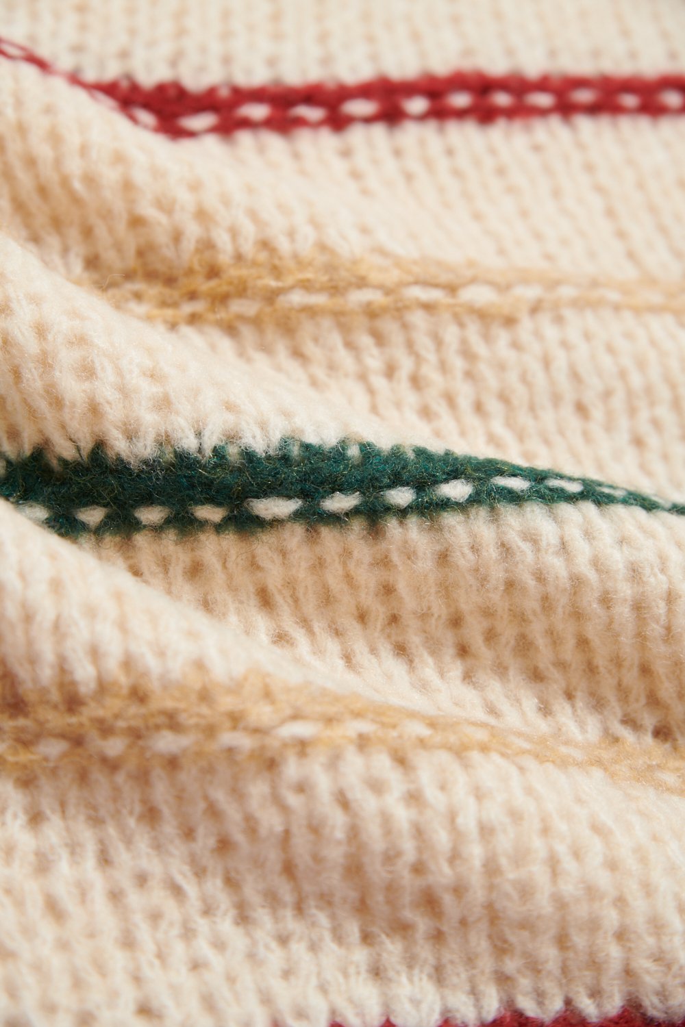 冬的圓舞曲條紋針織上衣 - 可可卡其, F