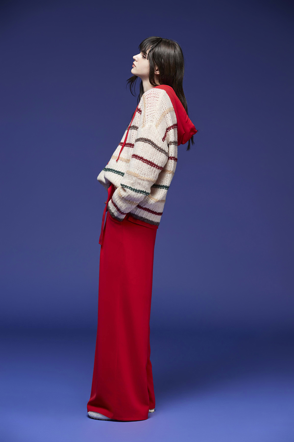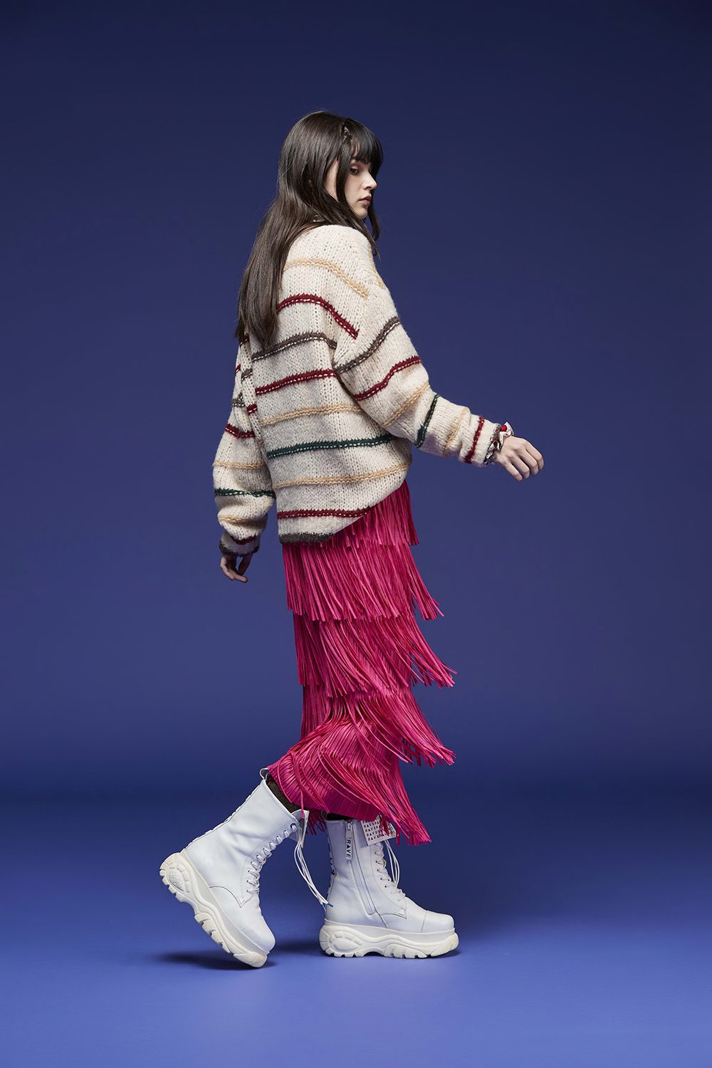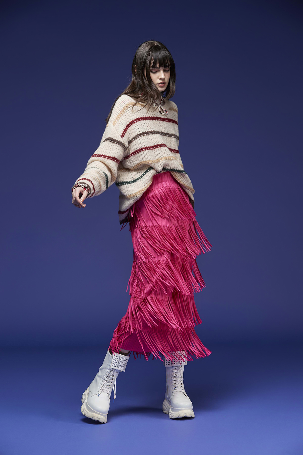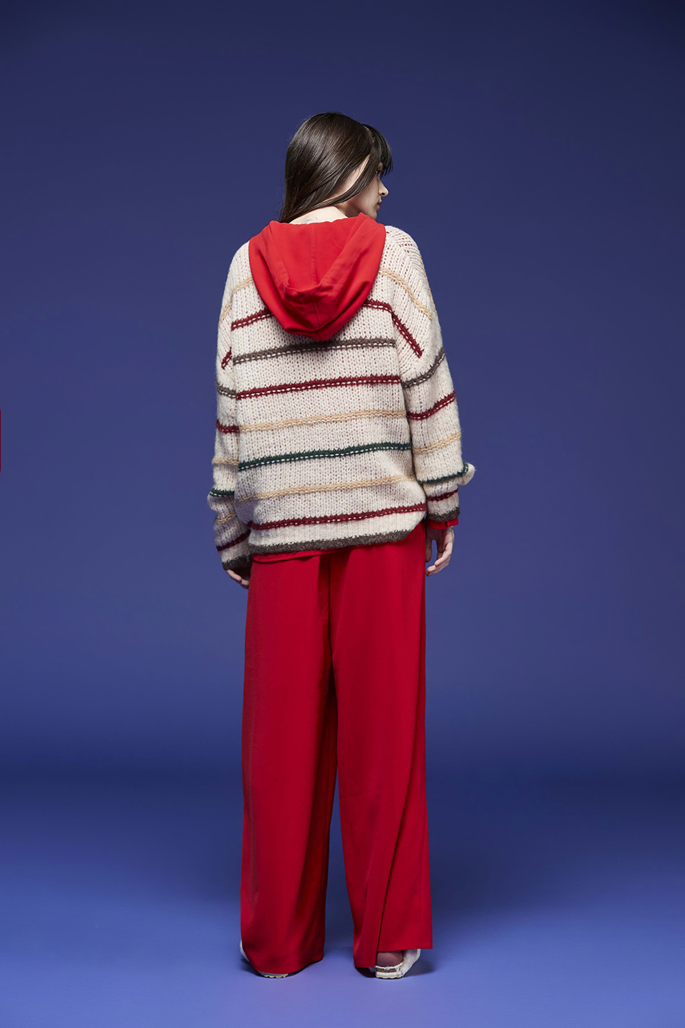 冬的圓舞曲條紋針織上衣 - 可可卡其, F