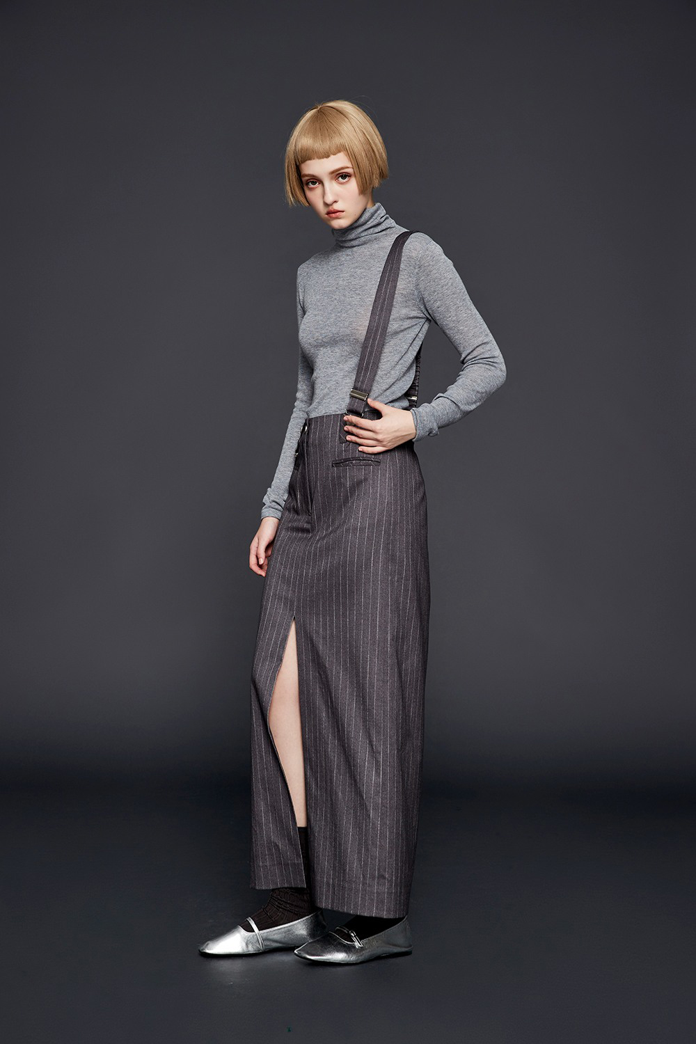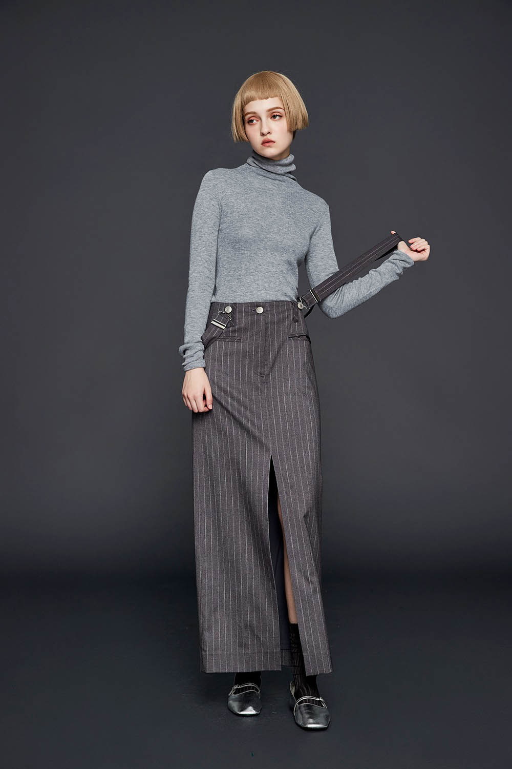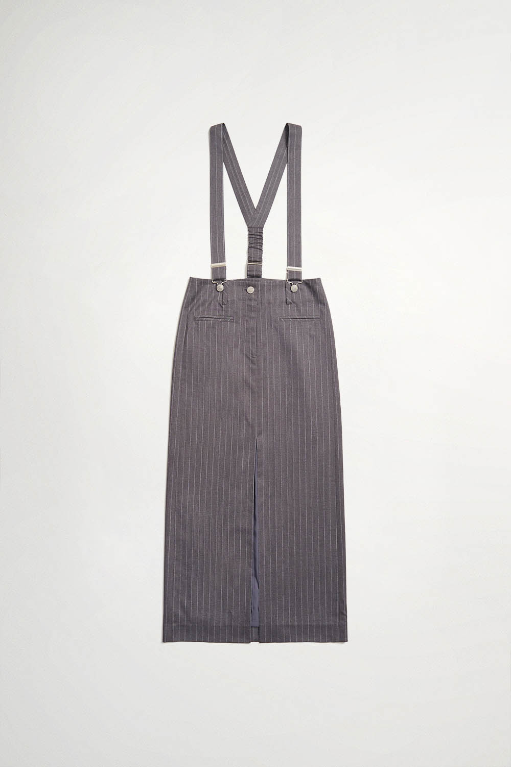 風華絕代條紋吊帶開岔裙 - 沉穩霧灰, 36