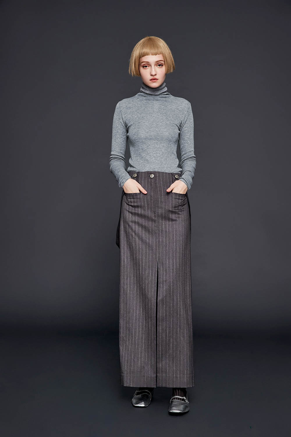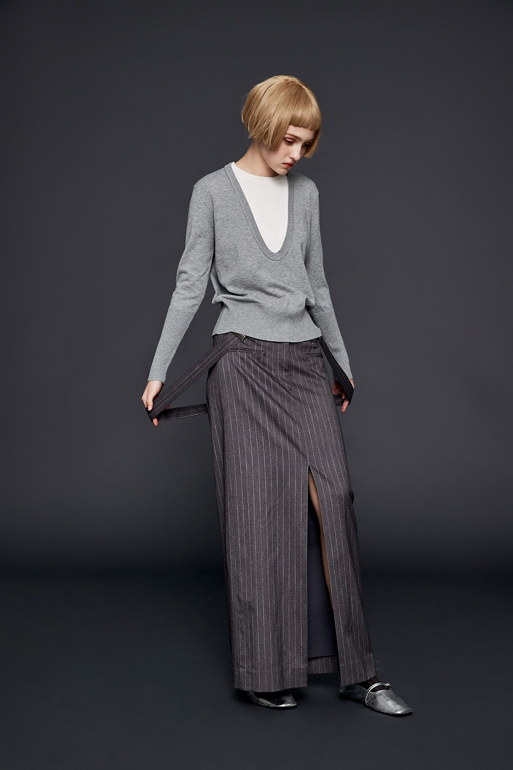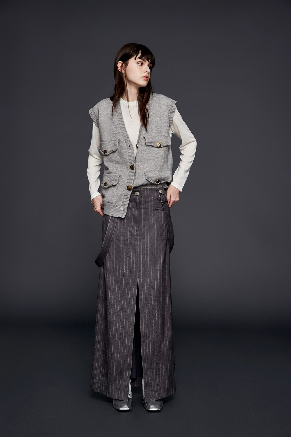 風華絕代條紋吊帶開岔裙 - 沉穩霧灰, 36