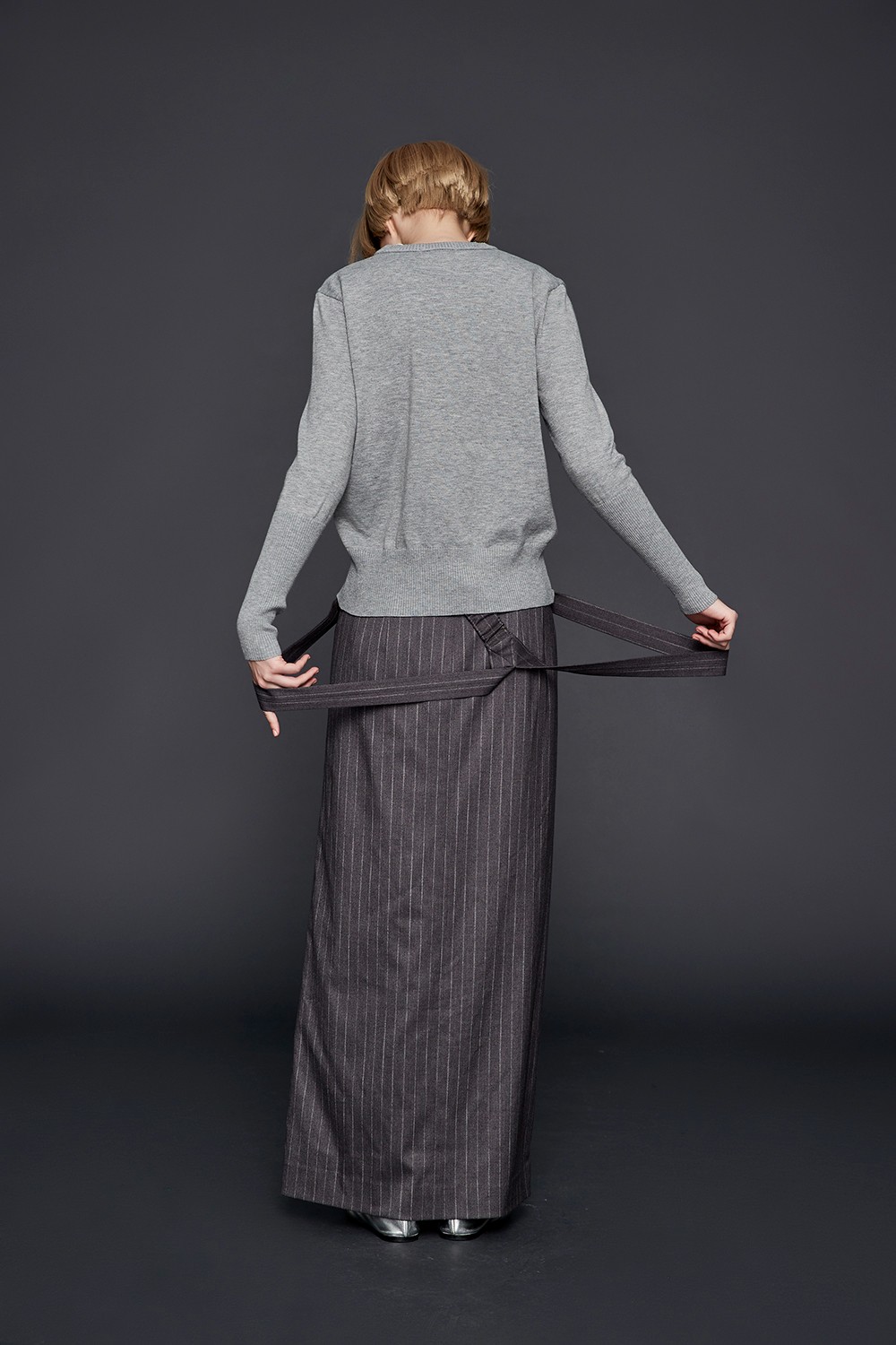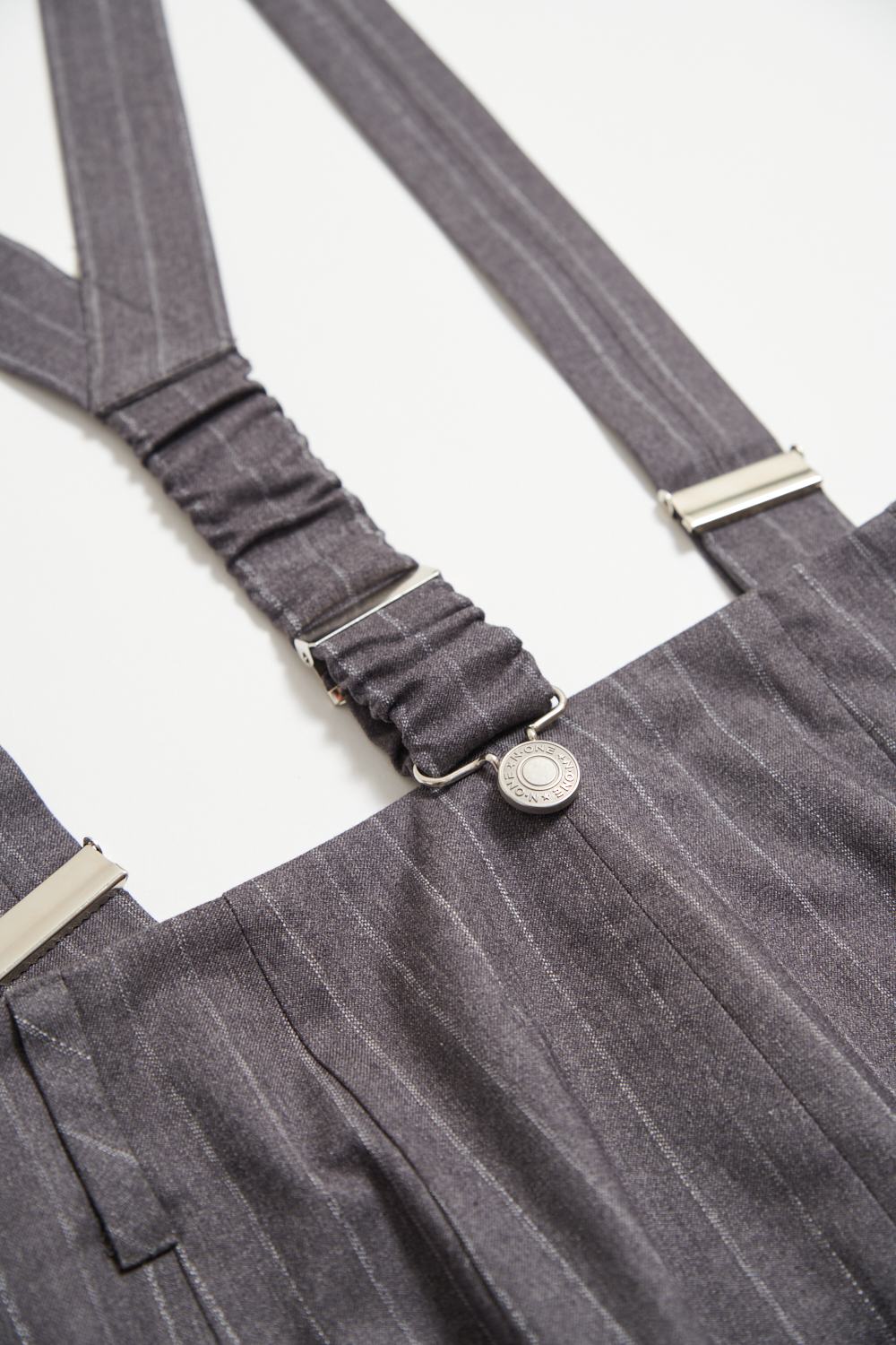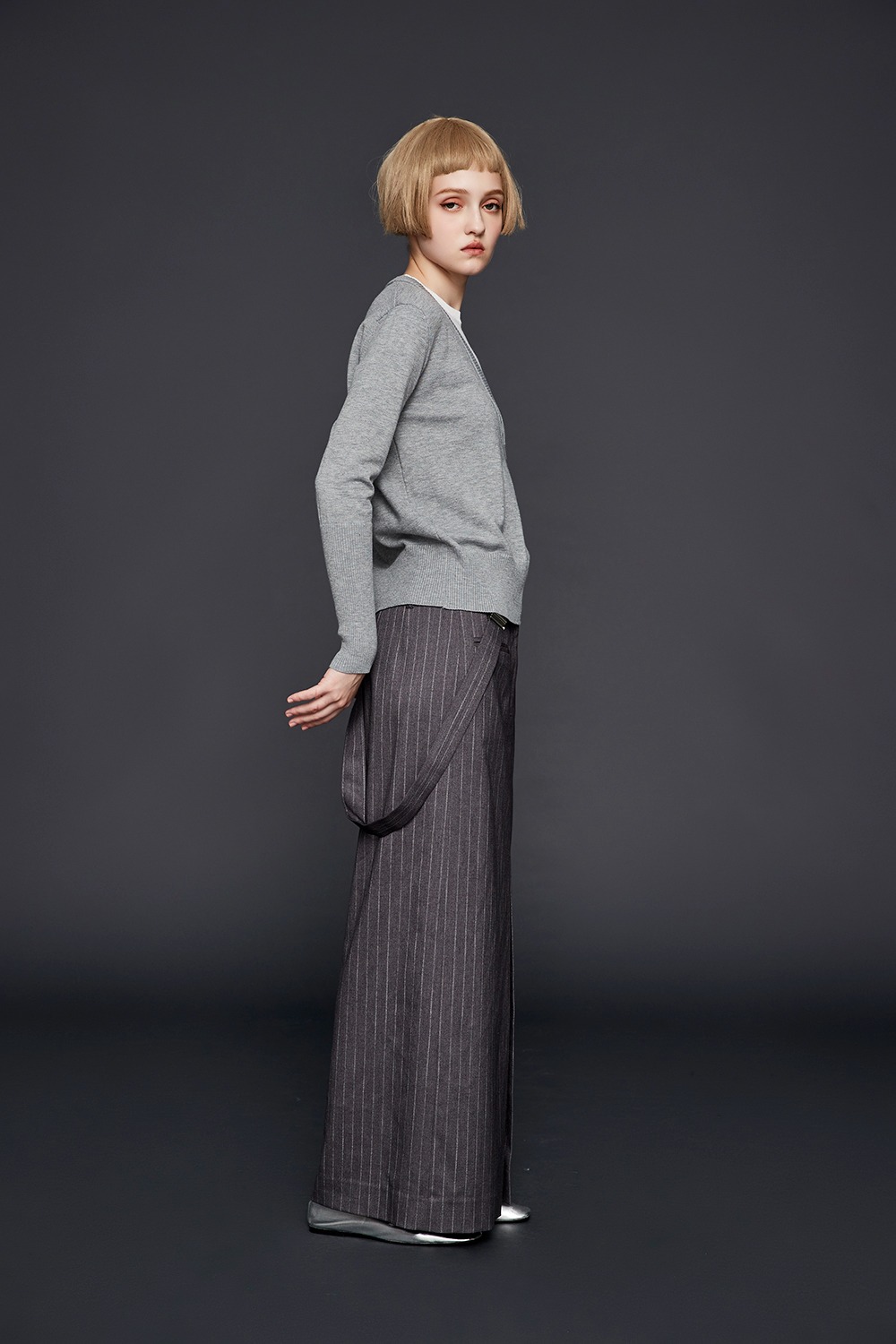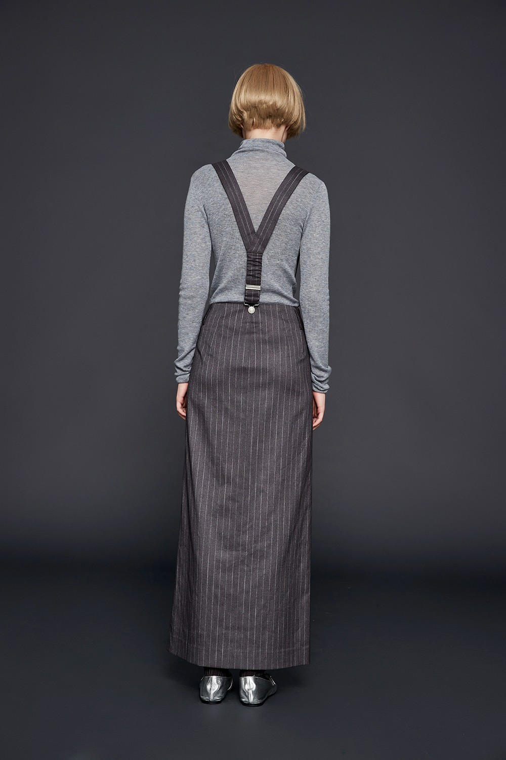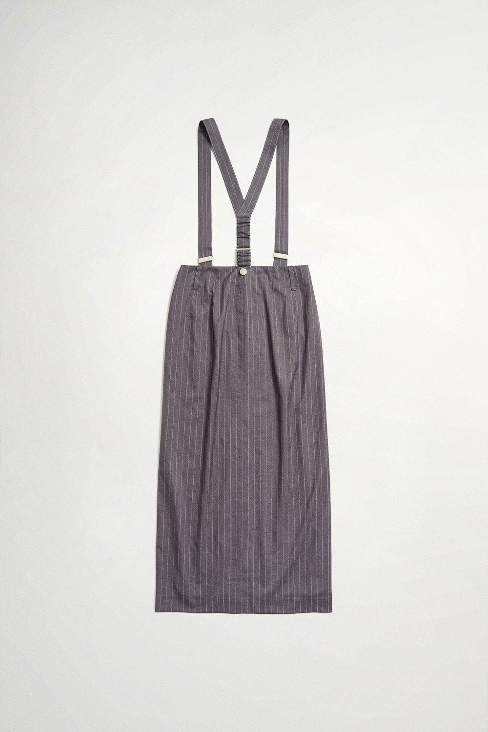 風華絕代條紋吊帶開岔裙 - 沉穩霧灰, 40