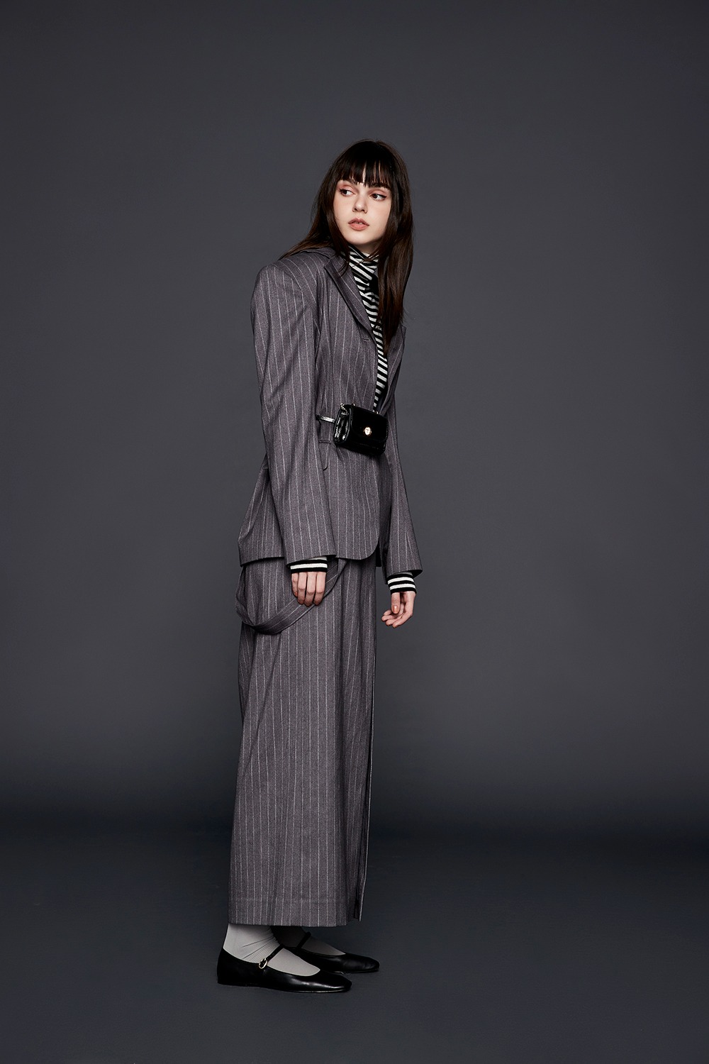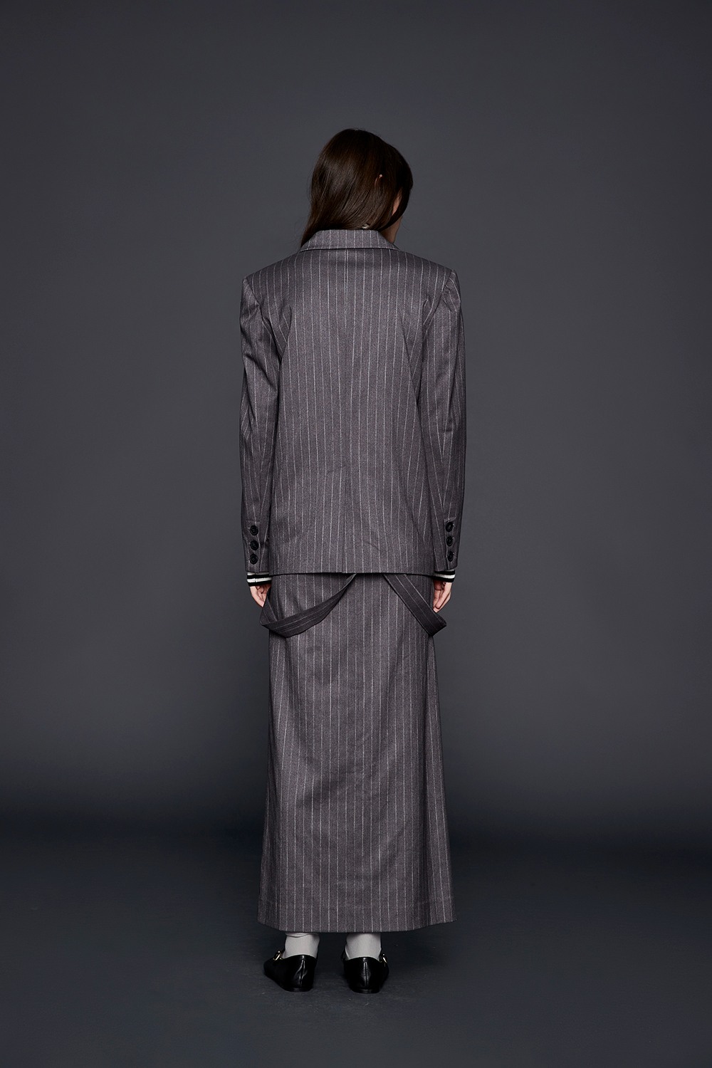 風華絕代條紋吊帶開岔裙 - 沉穩霧灰, 38