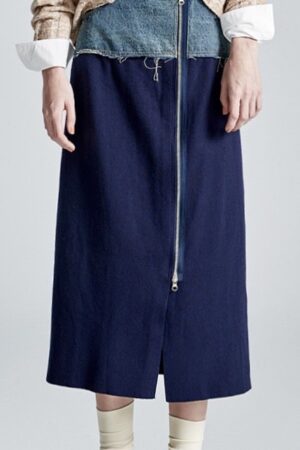 深邃牛仔拼接長裙 - 寧靜黛藍, 38