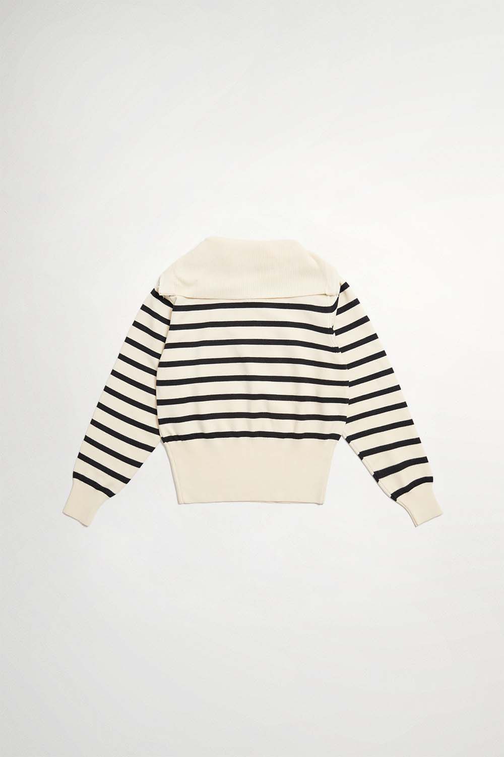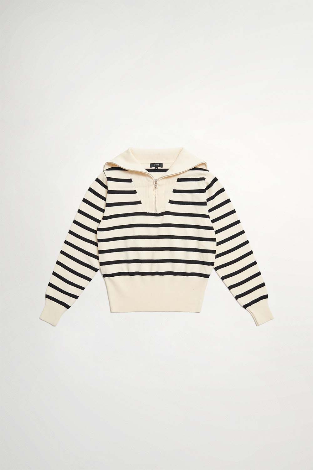 條紋元素是時尚元素到中心,搭配上 拉鍊翻領,既簡約又時髦