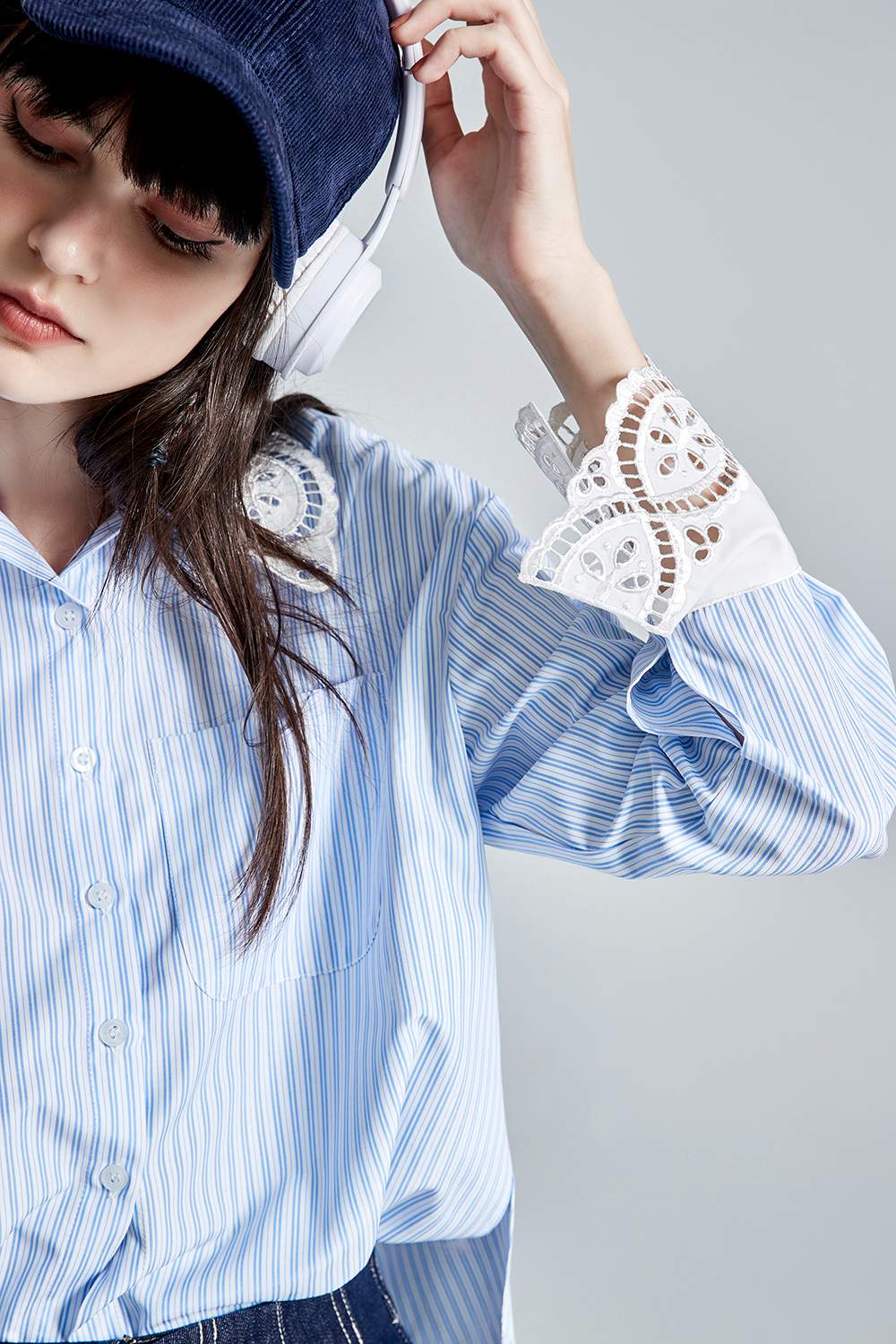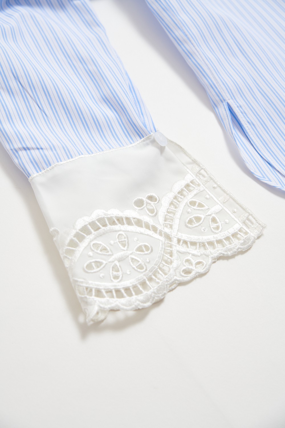 蕾絲綺夢條紋襯衫 - 寧靜黛藍, 40