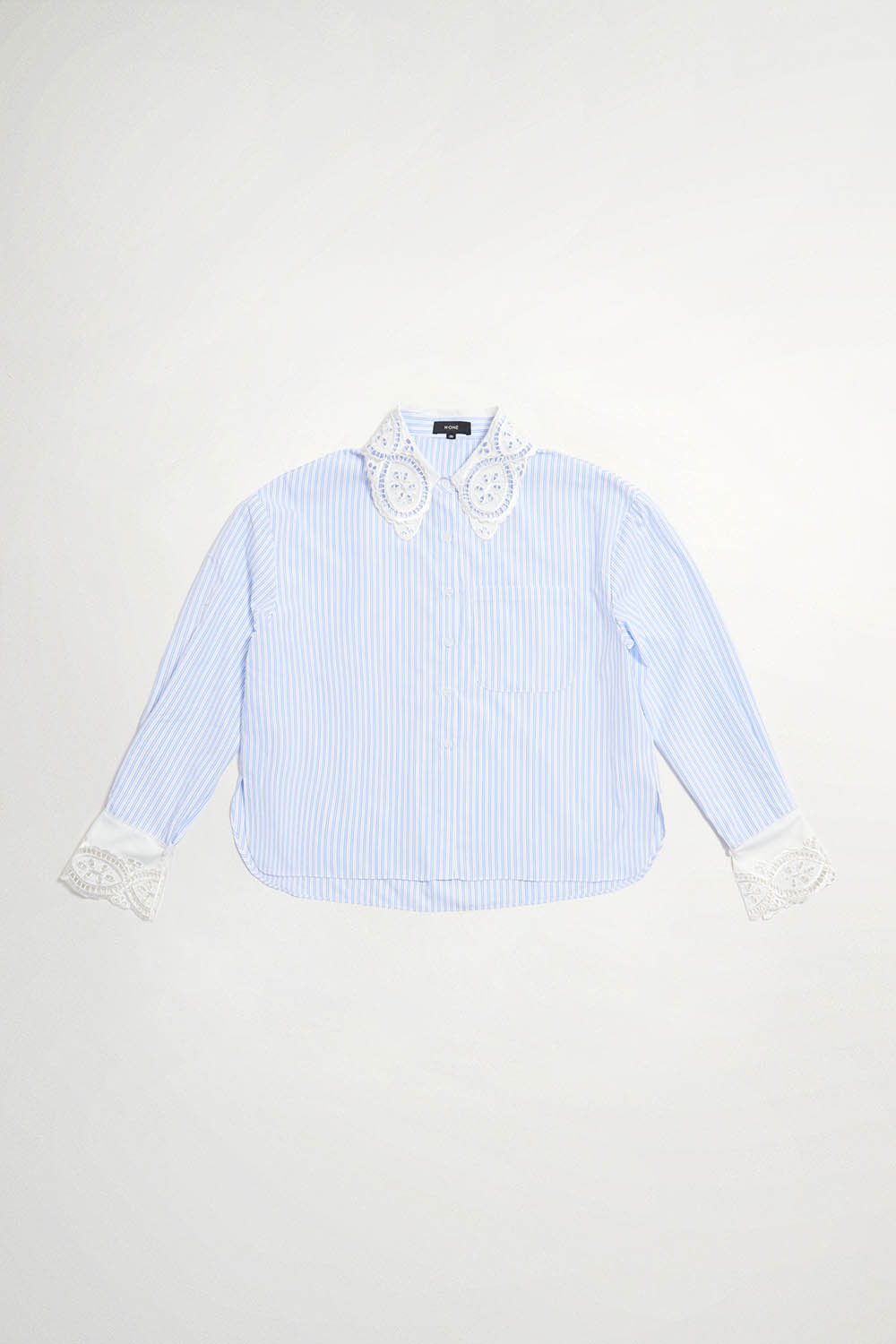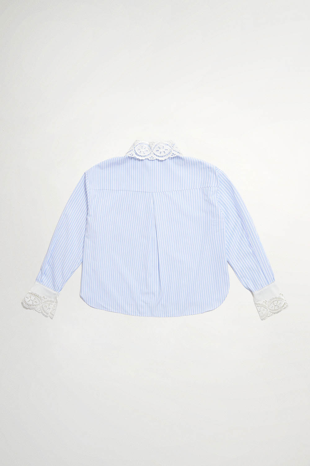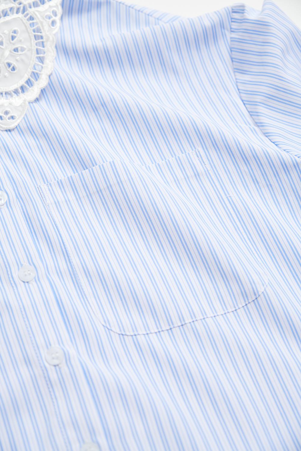 蕾絲綺夢條紋襯衫 - 寧靜黛藍, 38