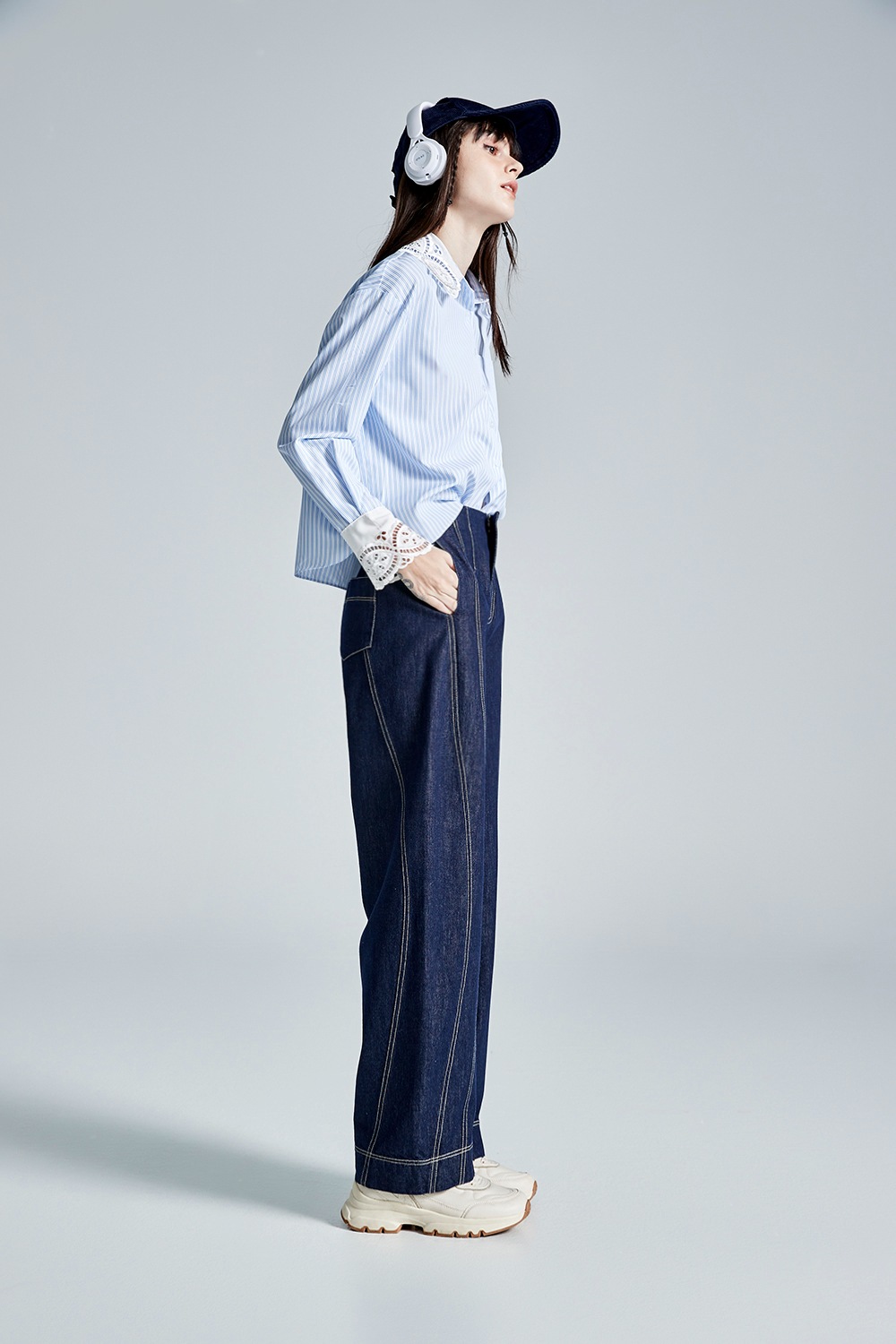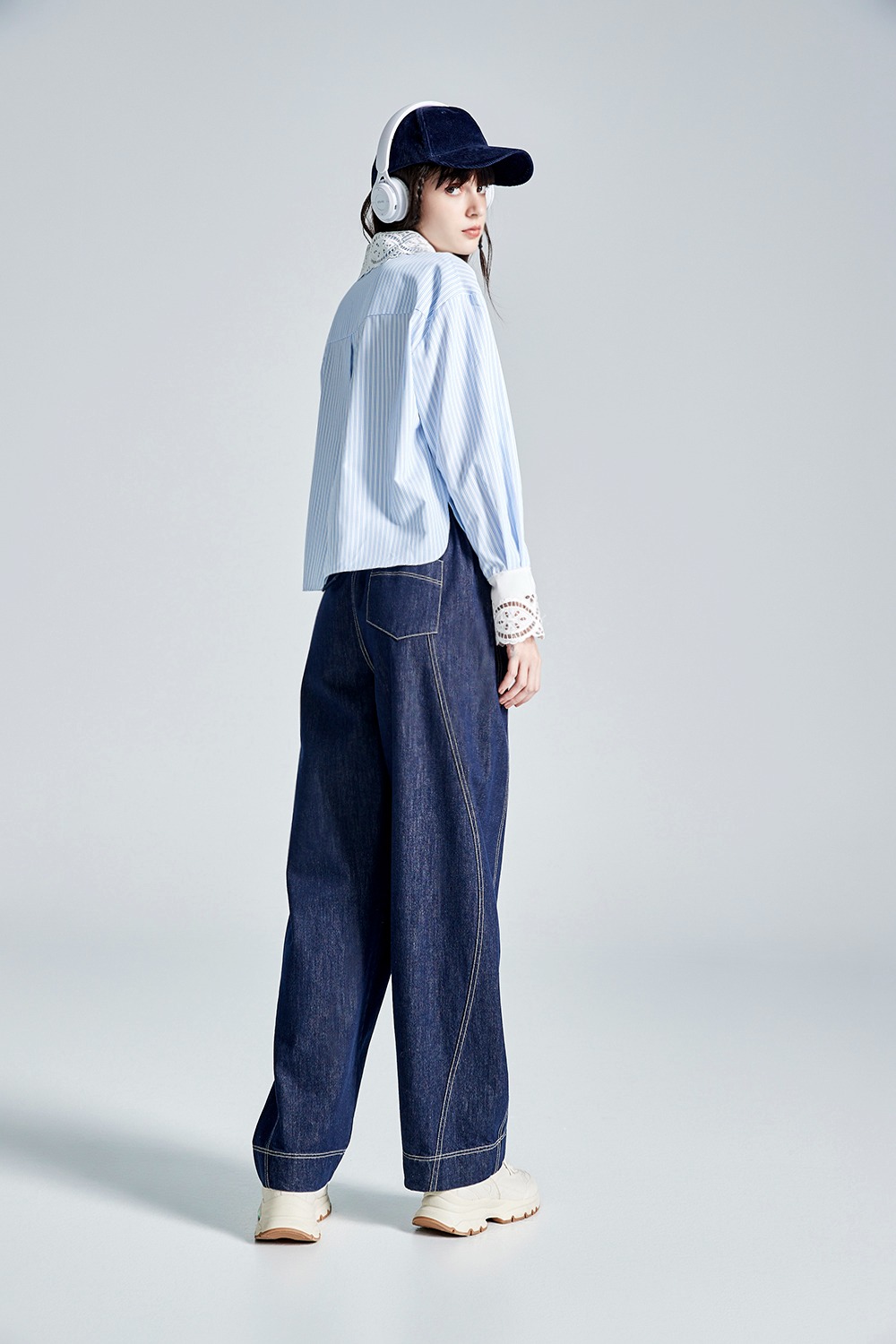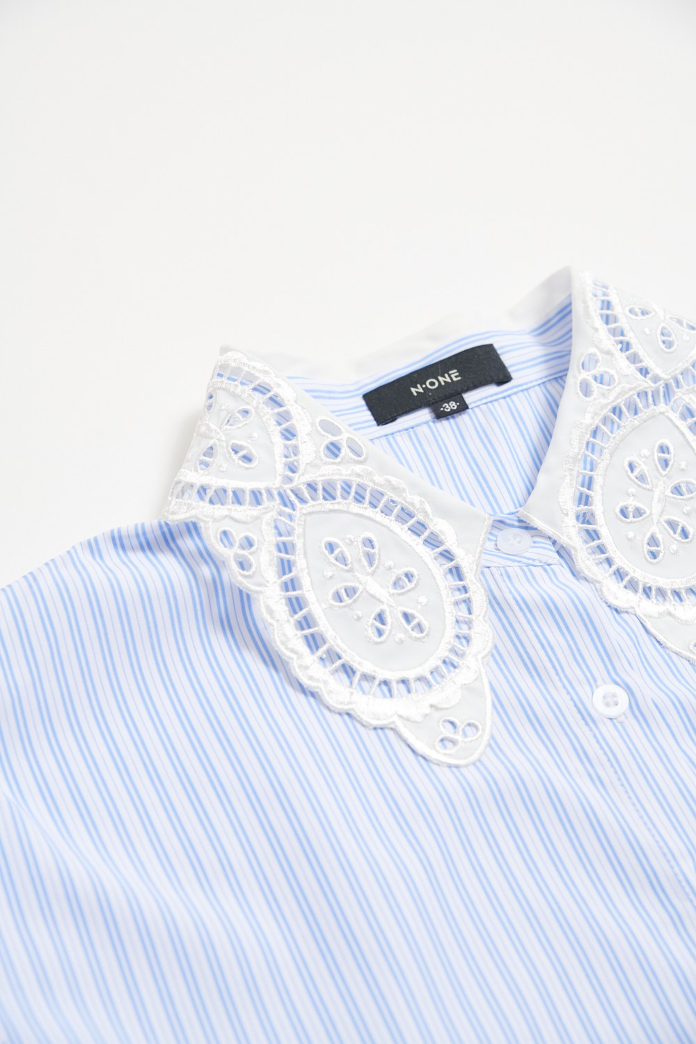 蕾絲綺夢條紋襯衫 - 寧靜黛藍, 38
