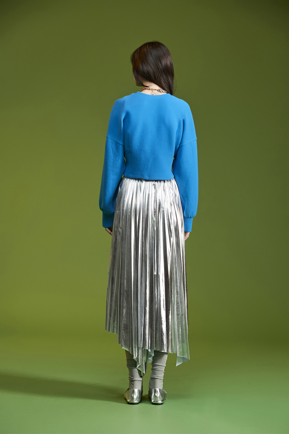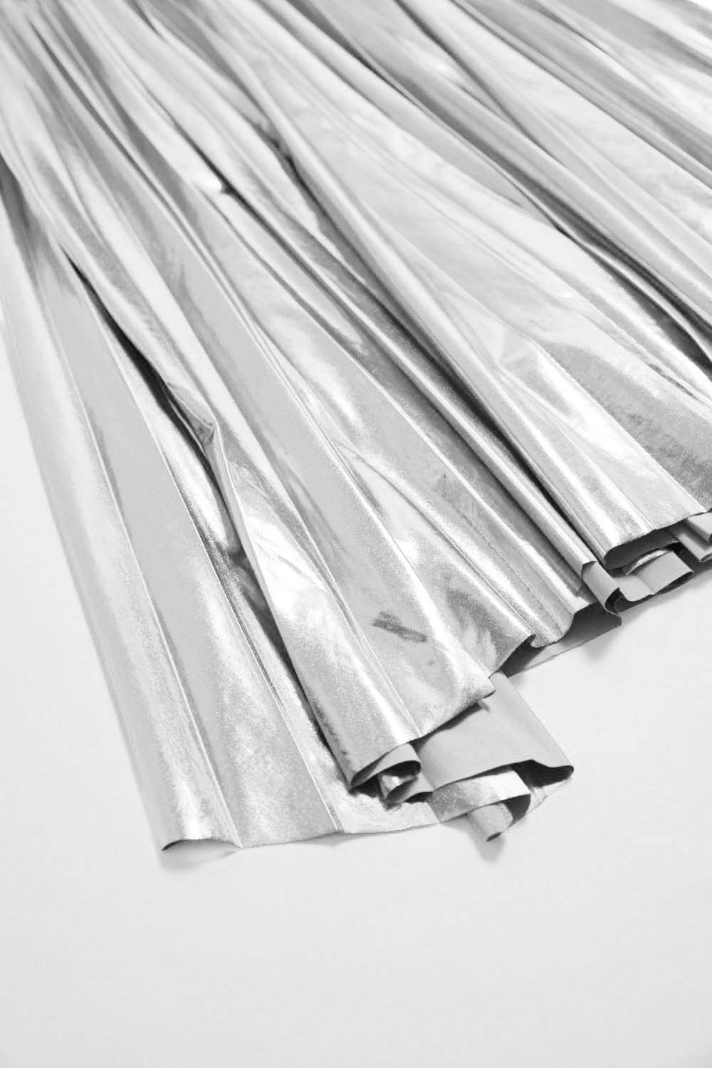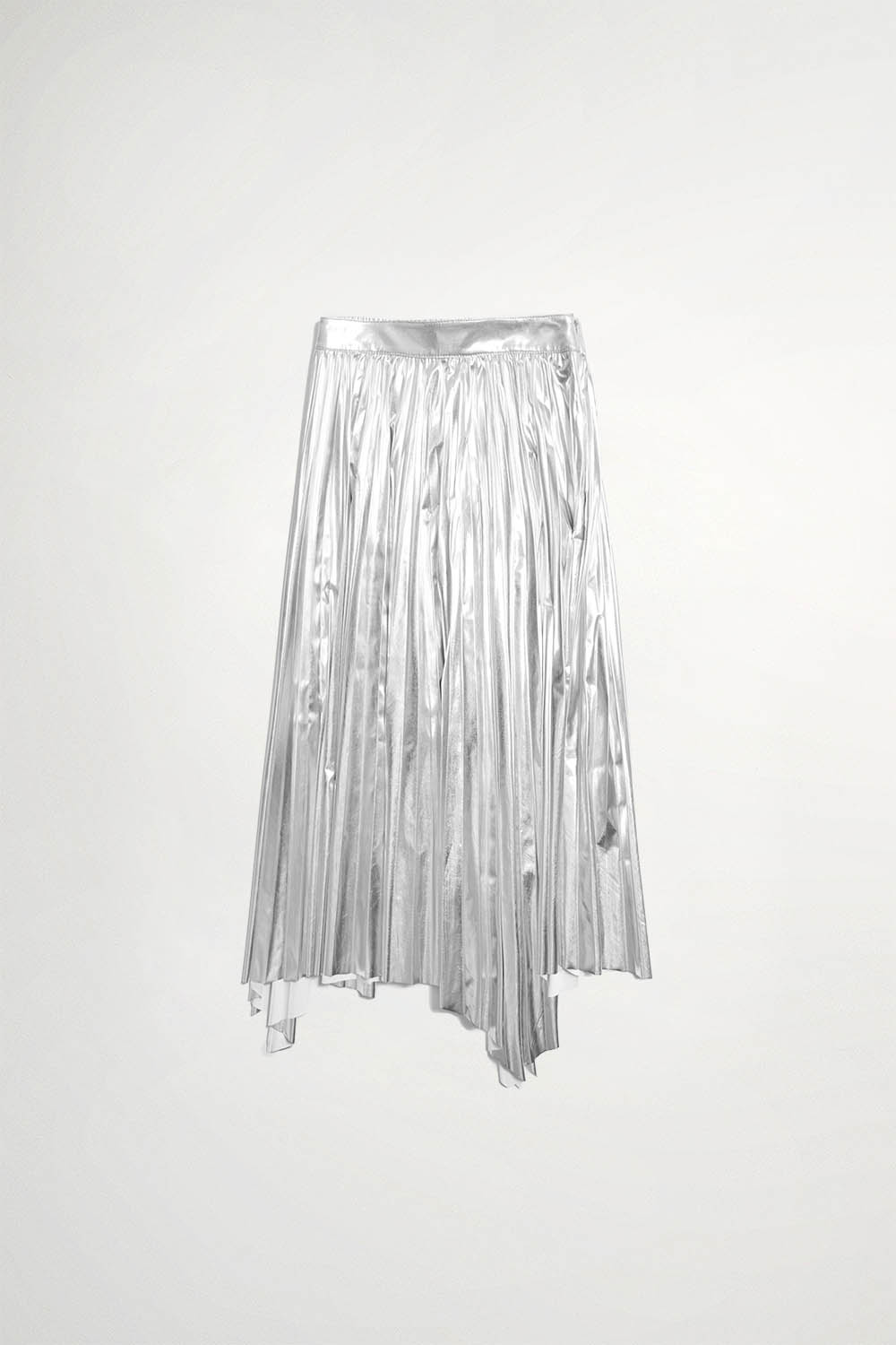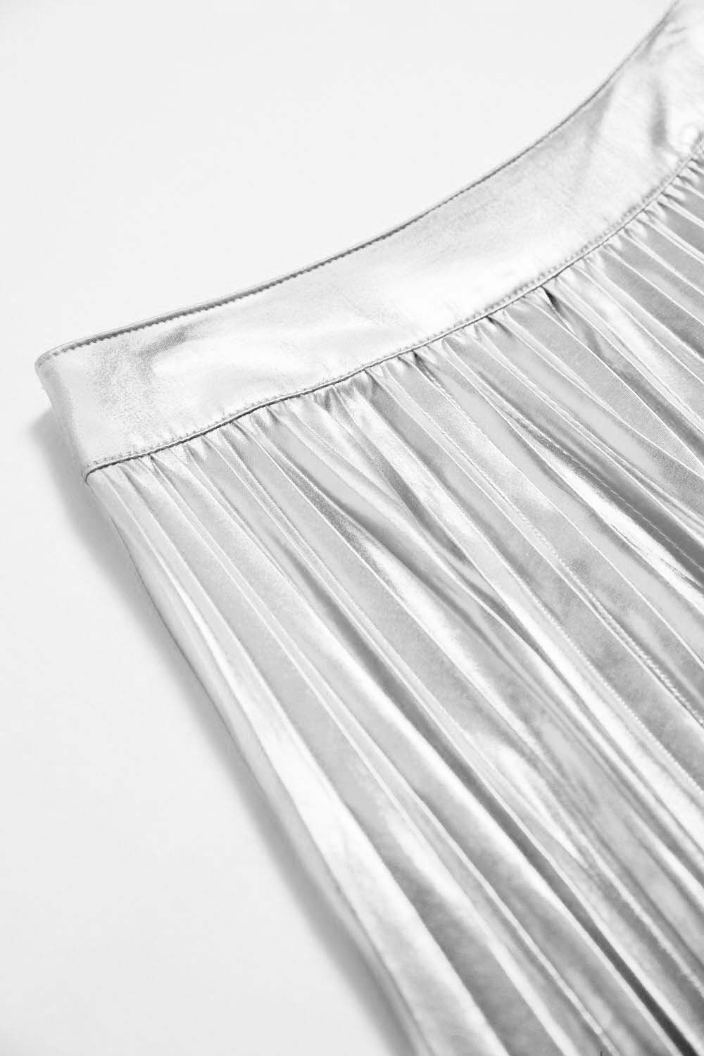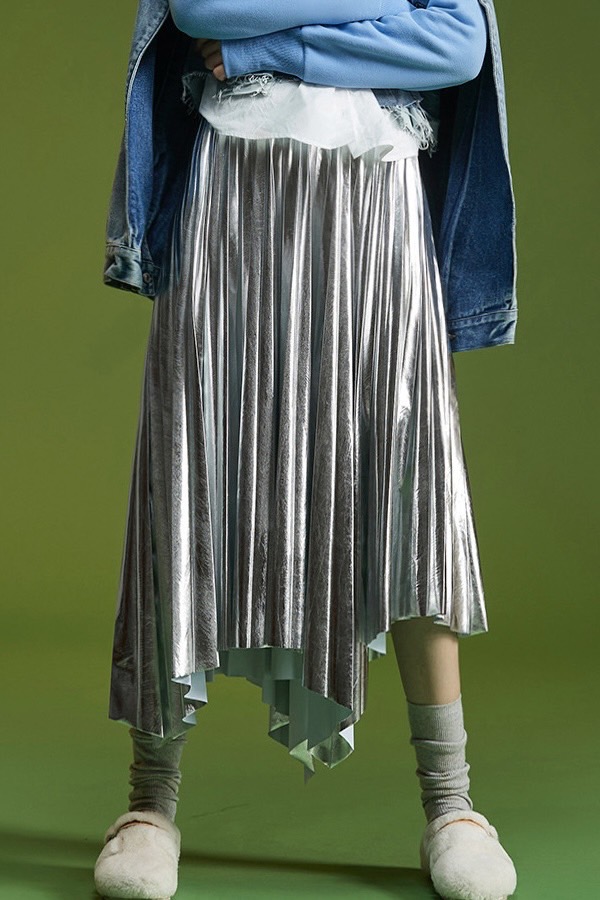 閃耀綻放不規則亮面百褶裙 - 時尚純銀, 38