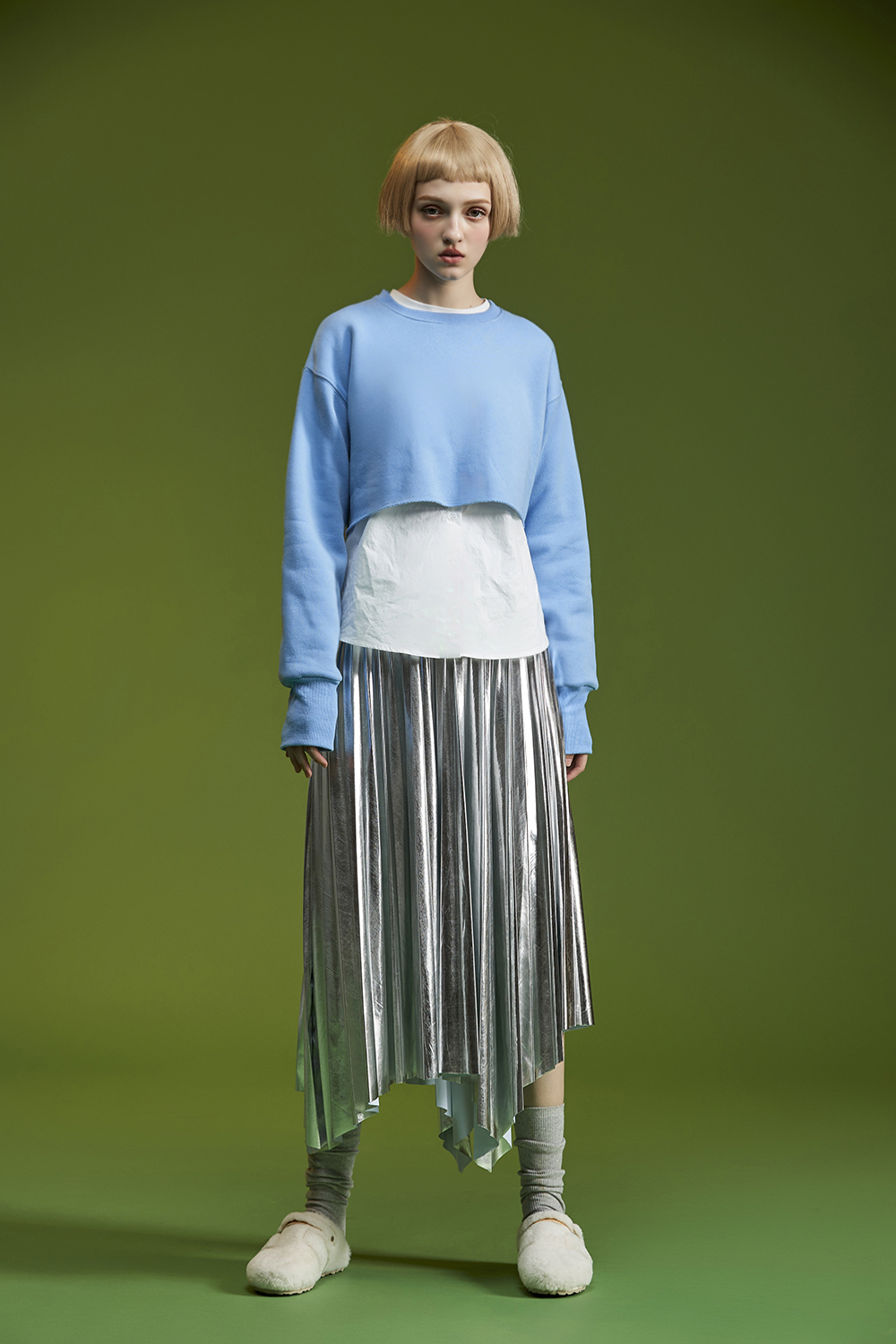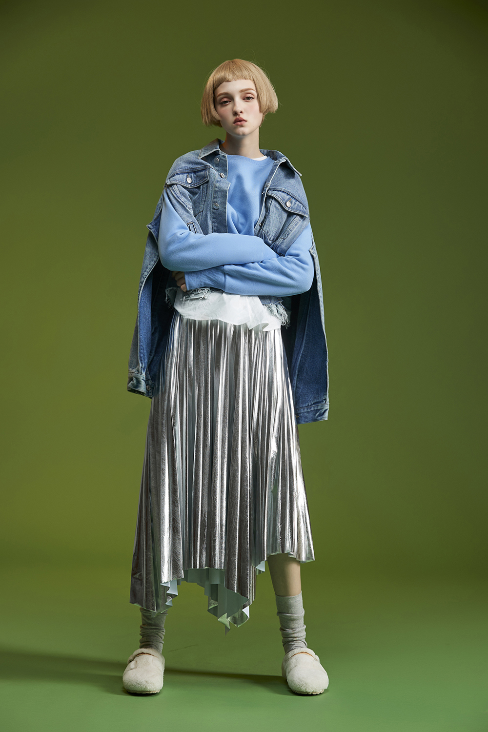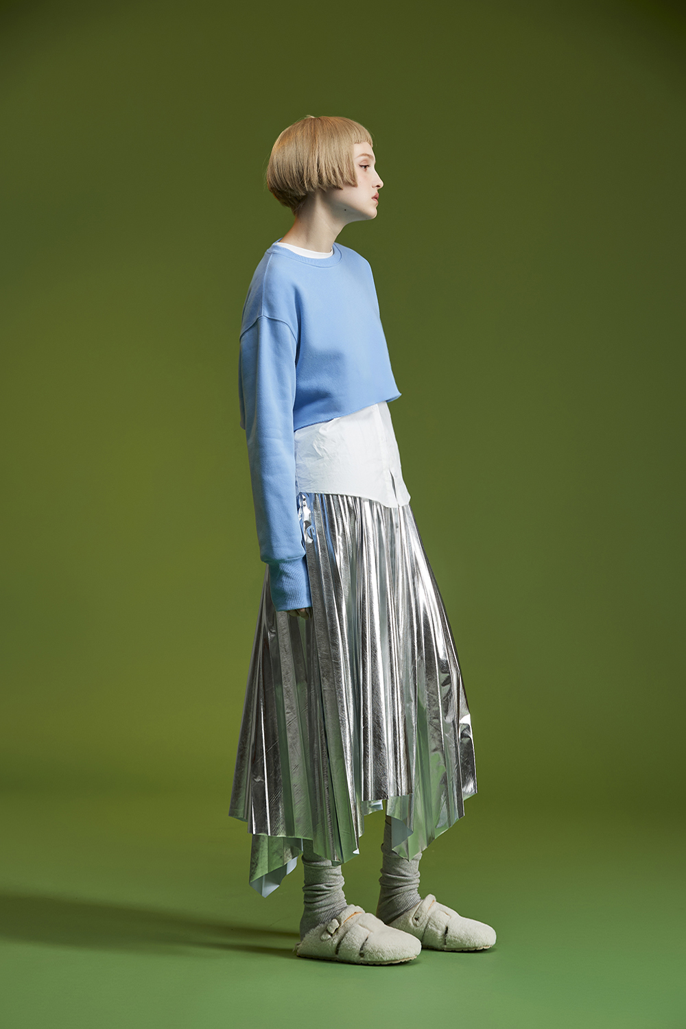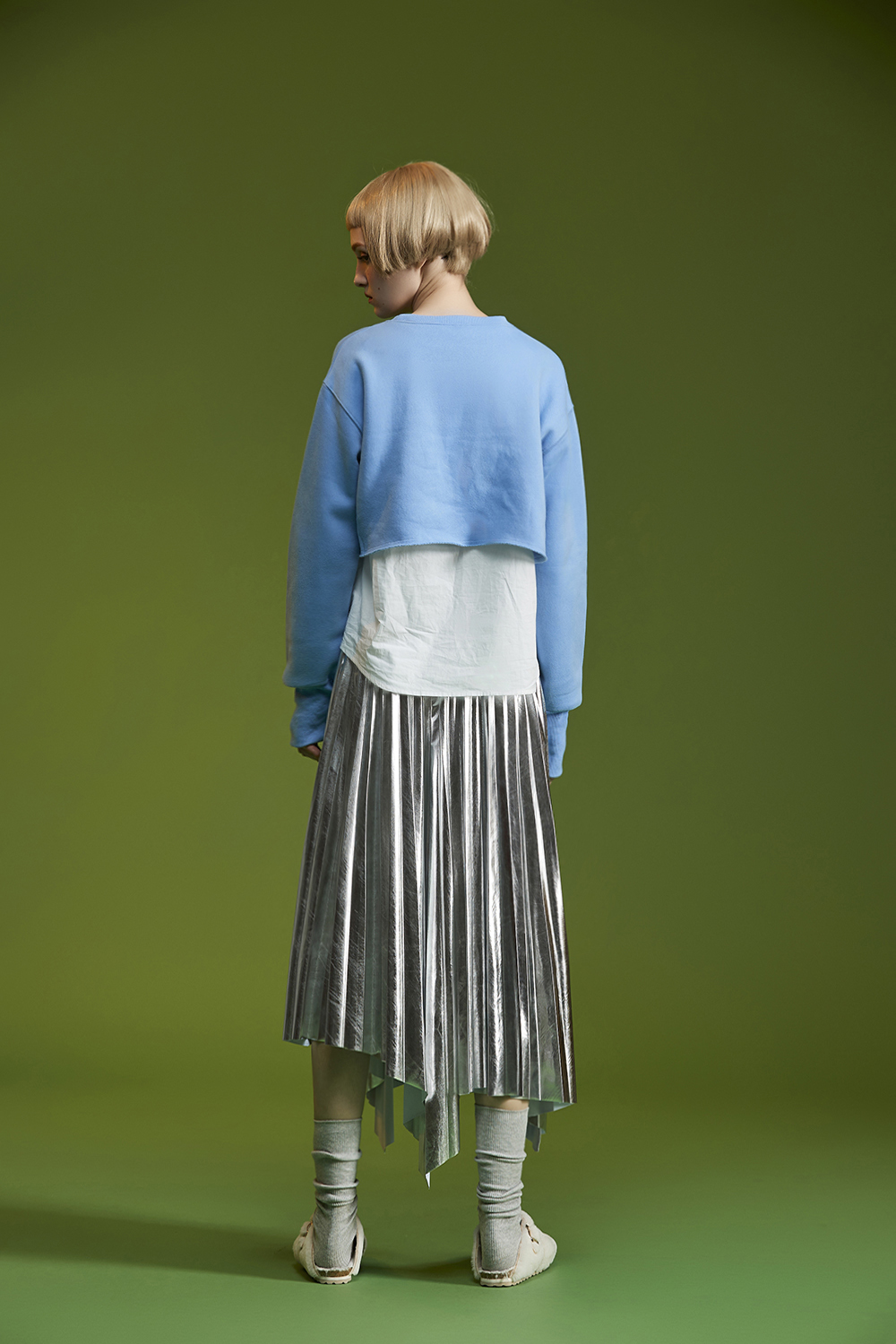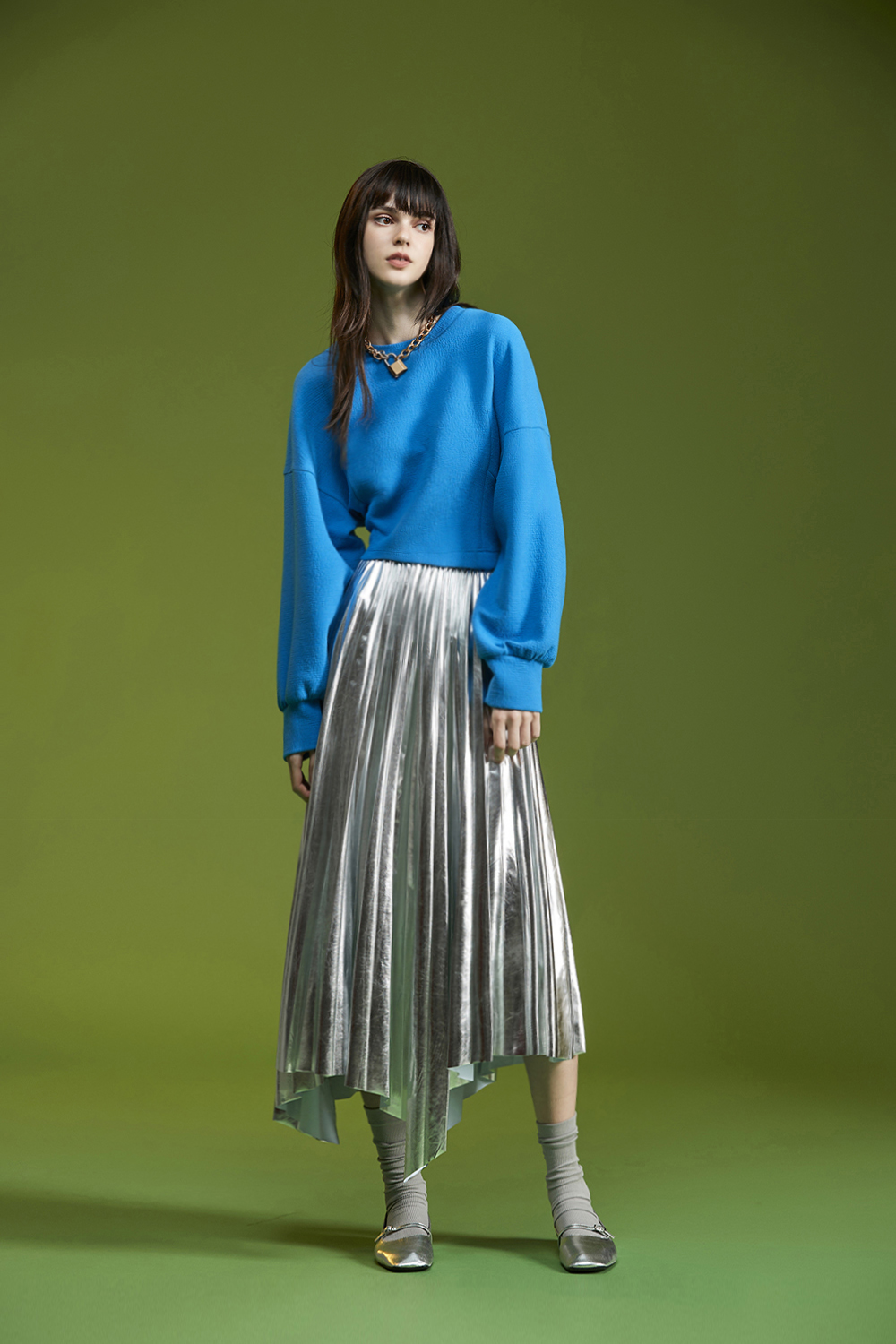 閃耀綻放不規則亮面百褶裙 - 時尚純銀, 38