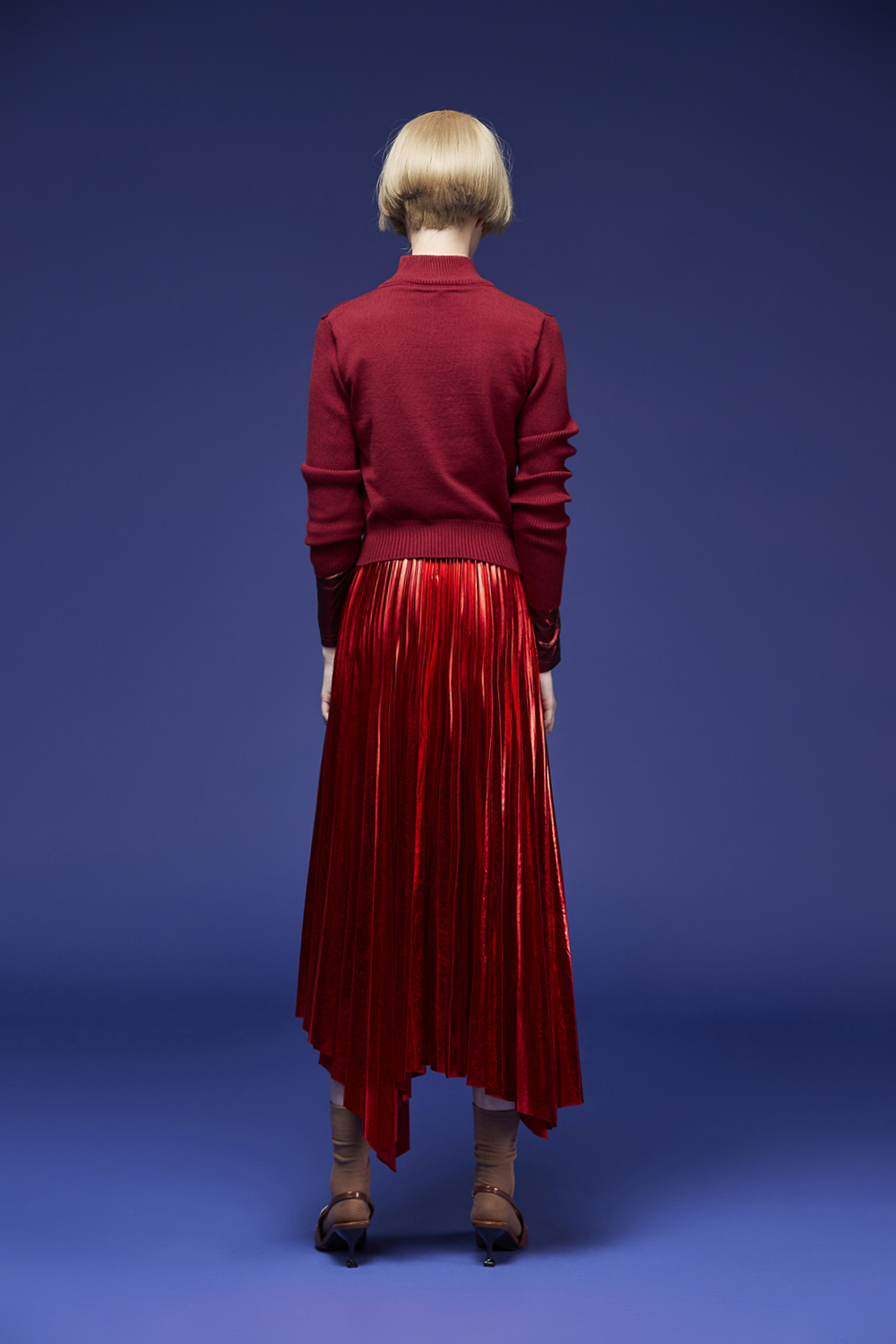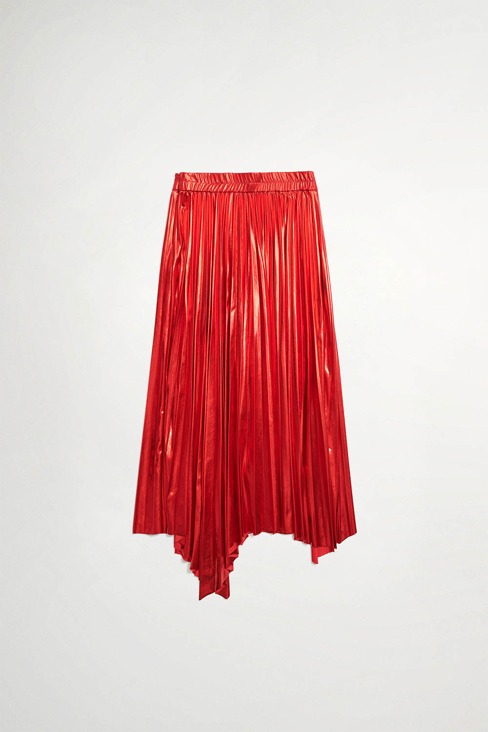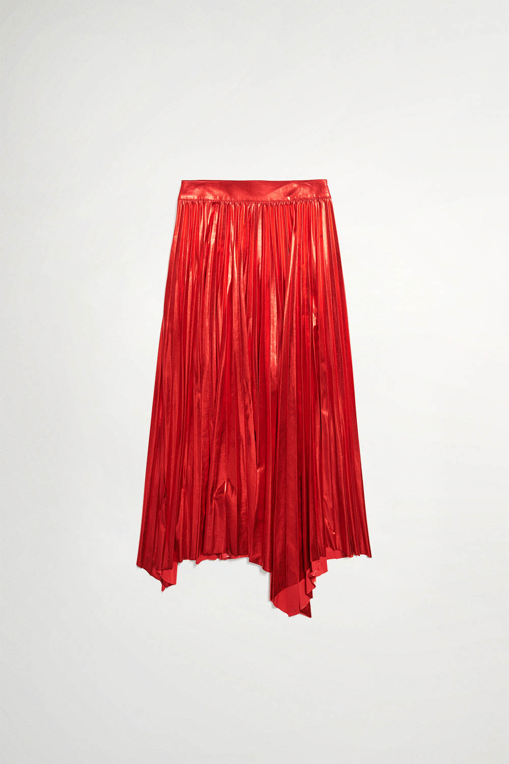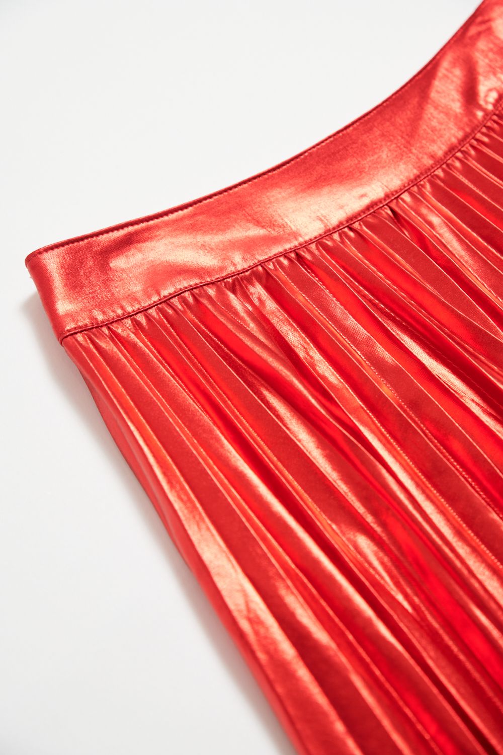 閃耀綻放不規則亮面百褶裙 - 耀眼赤紅, 38