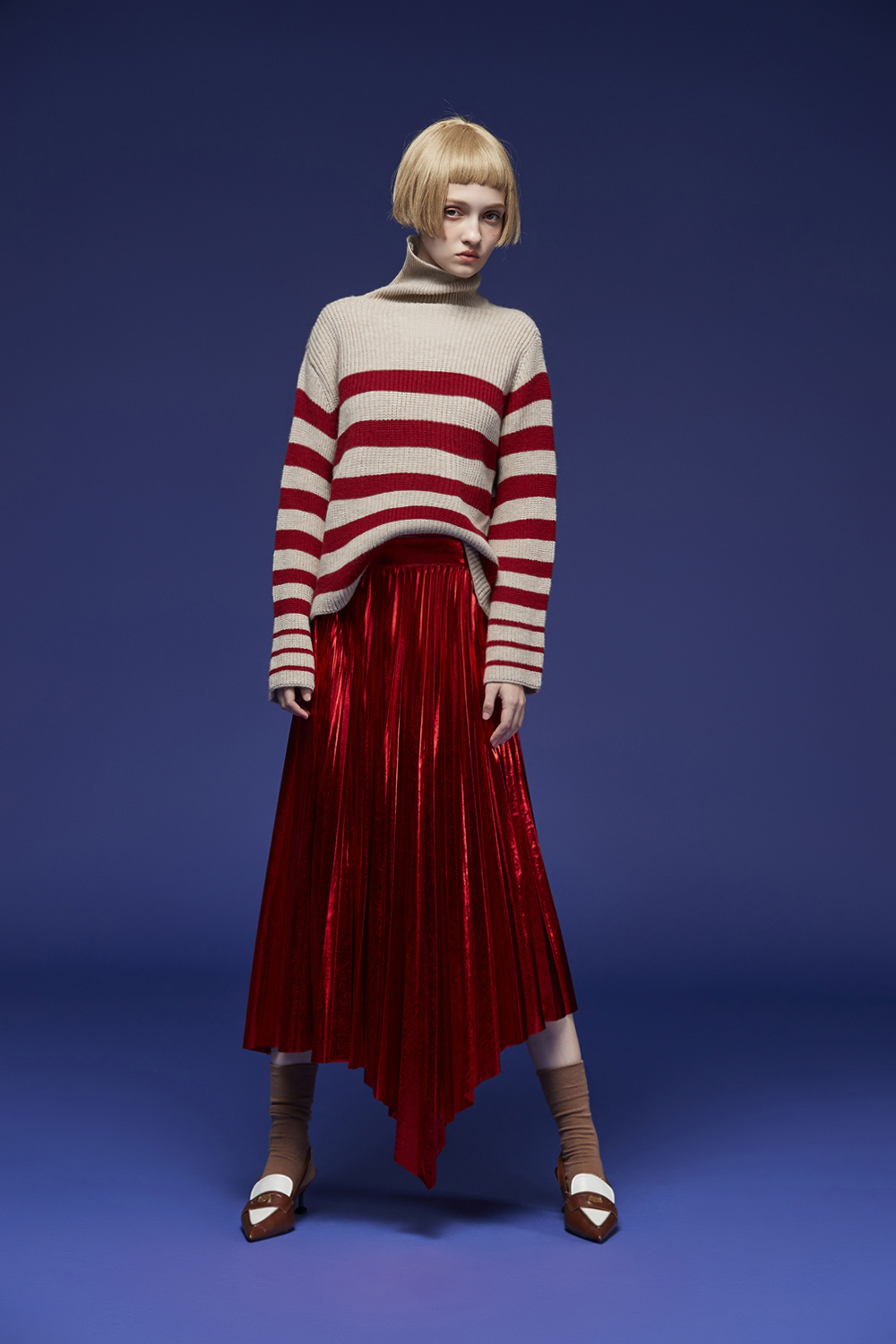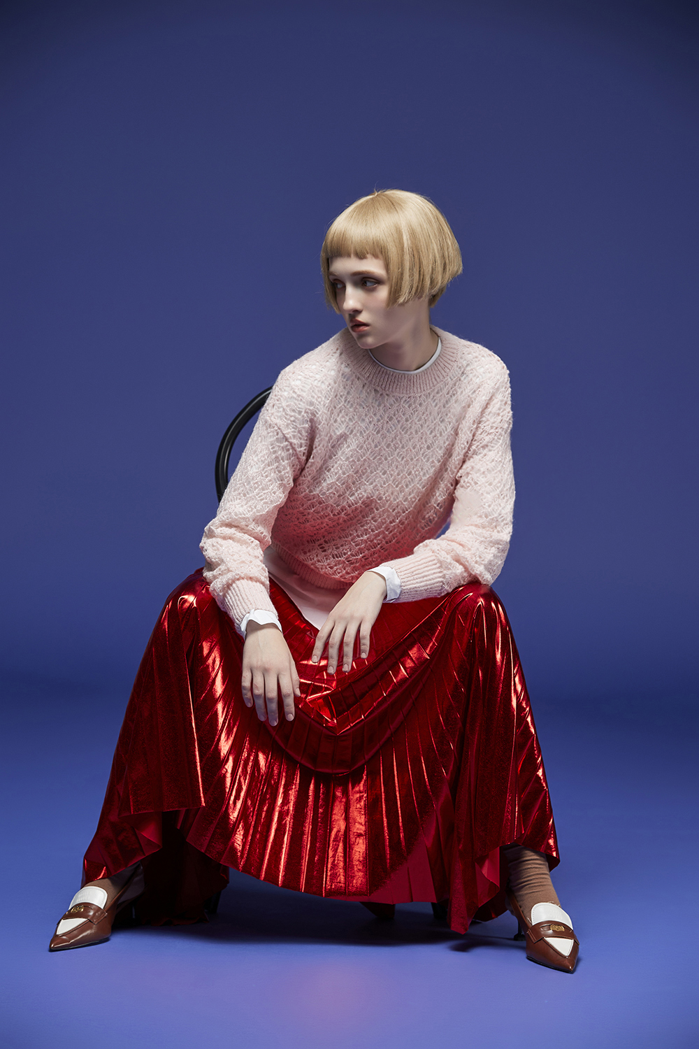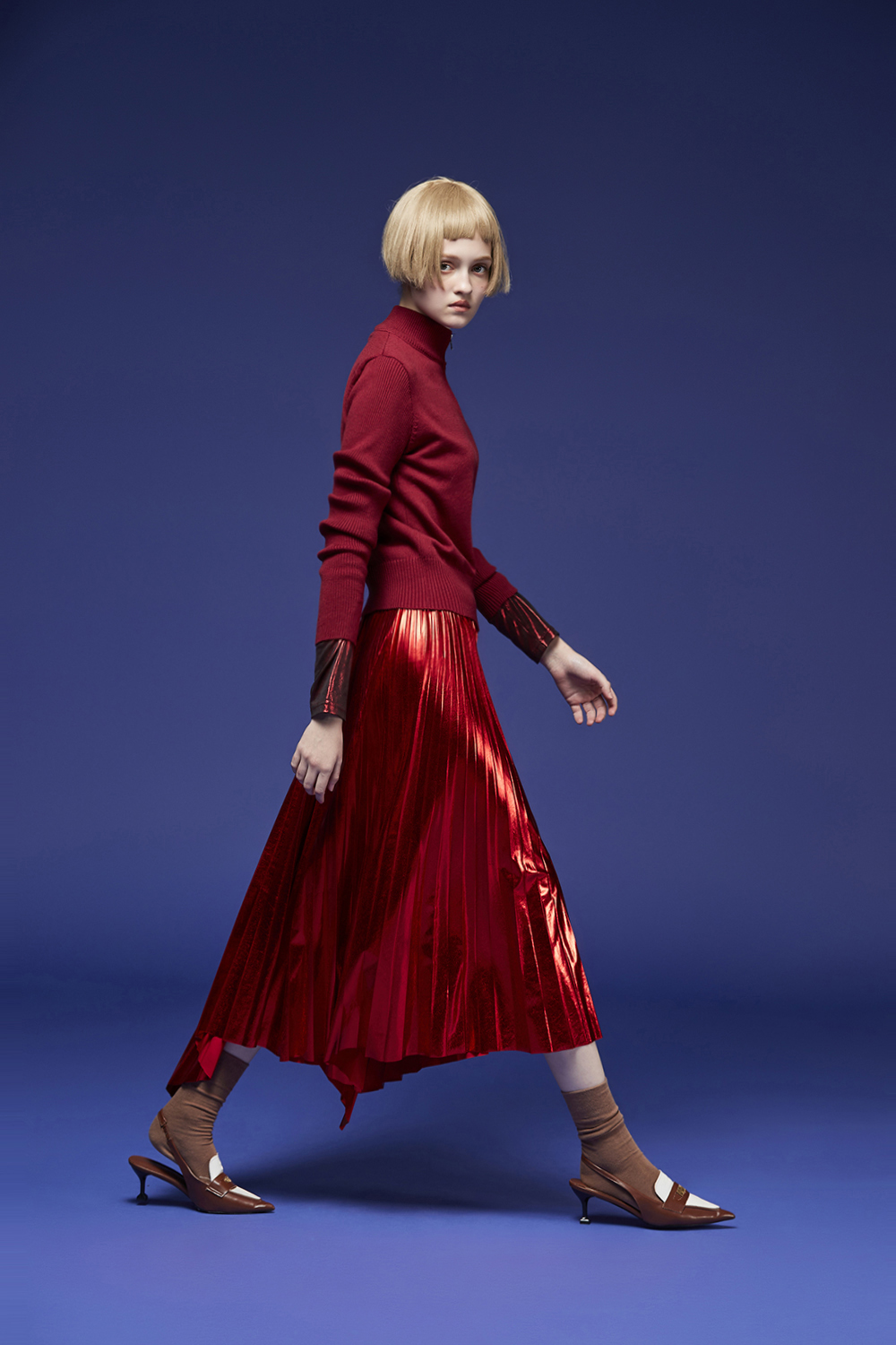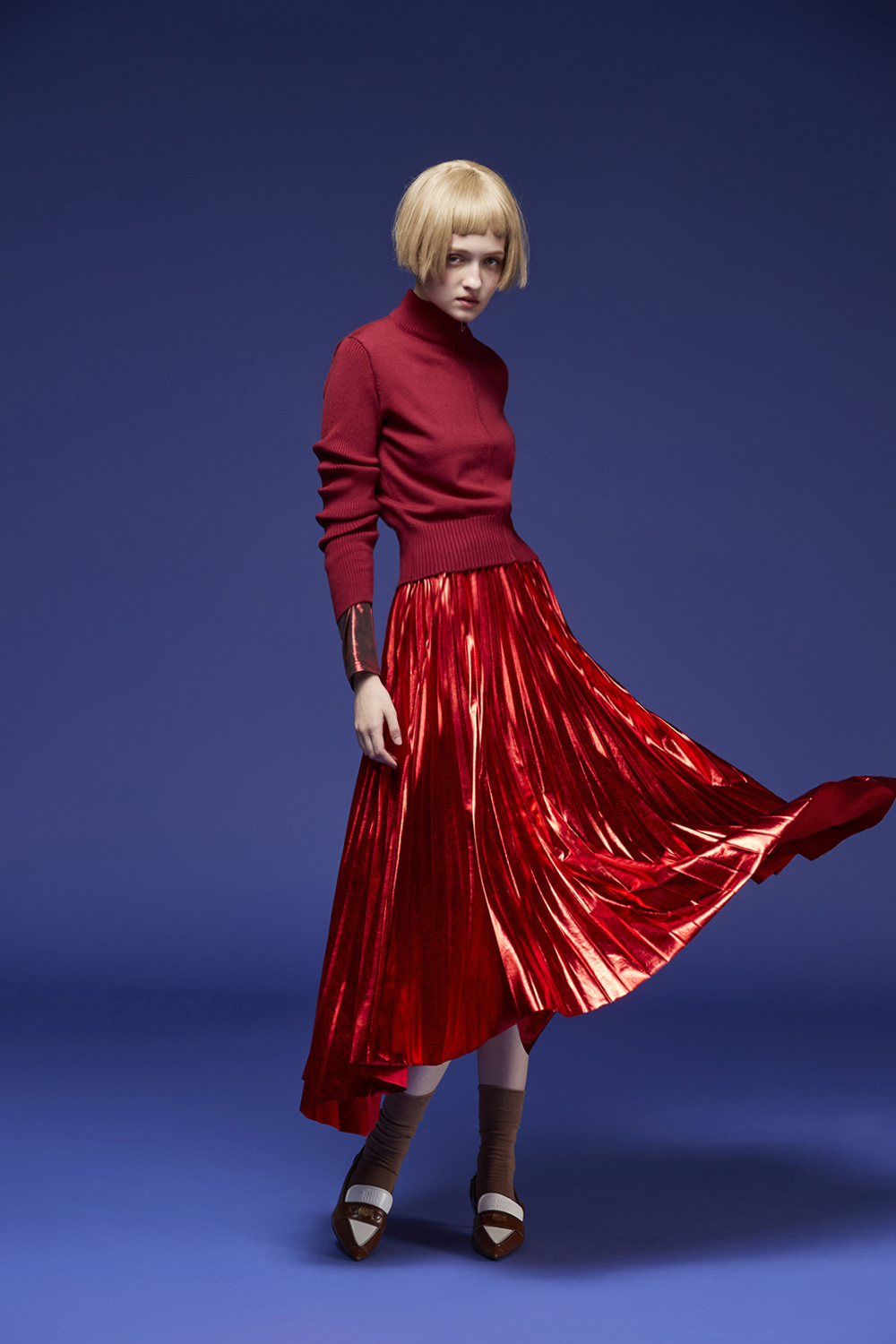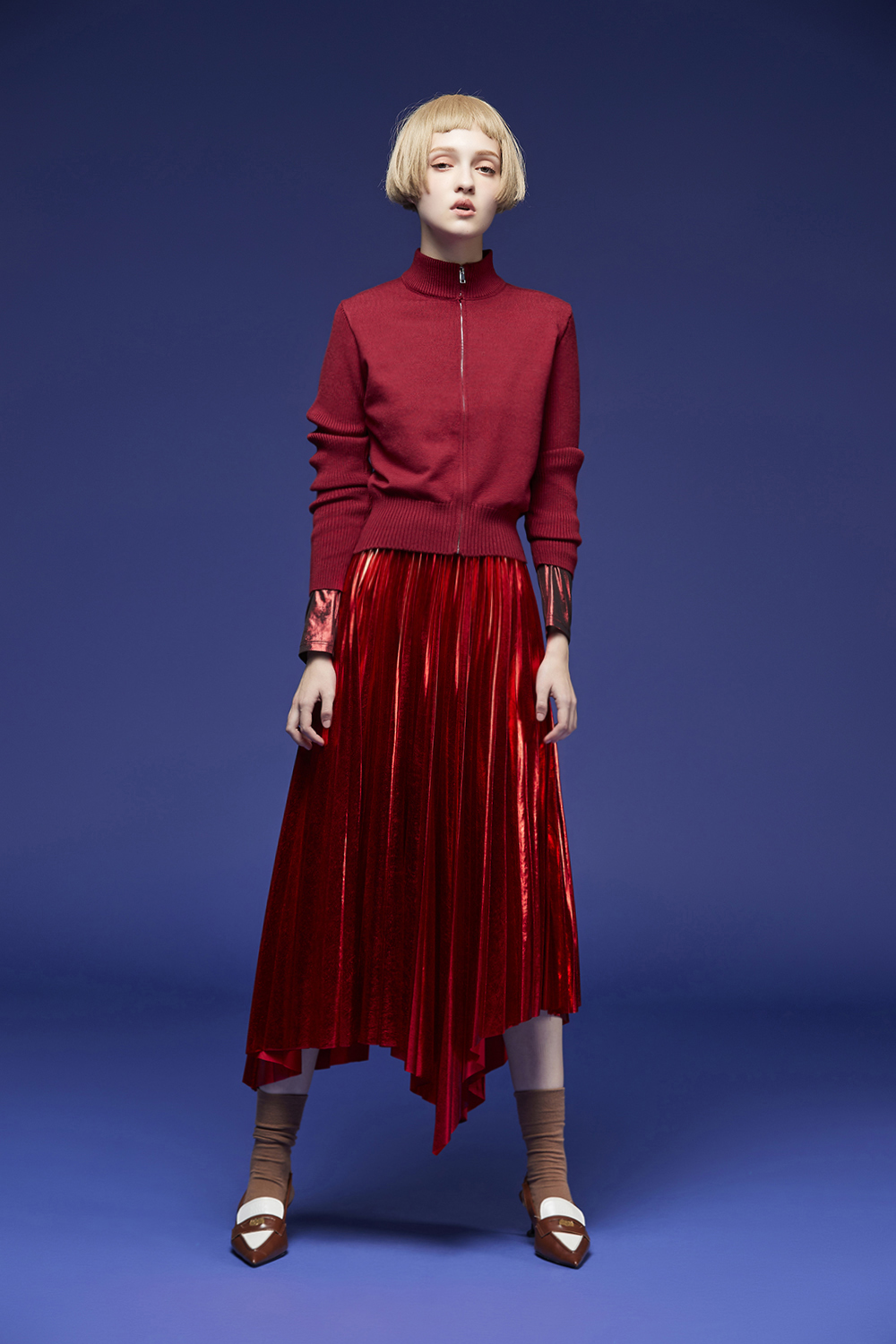 閃耀綻放不規則亮面百褶裙 - 耀眼赤紅, 38
