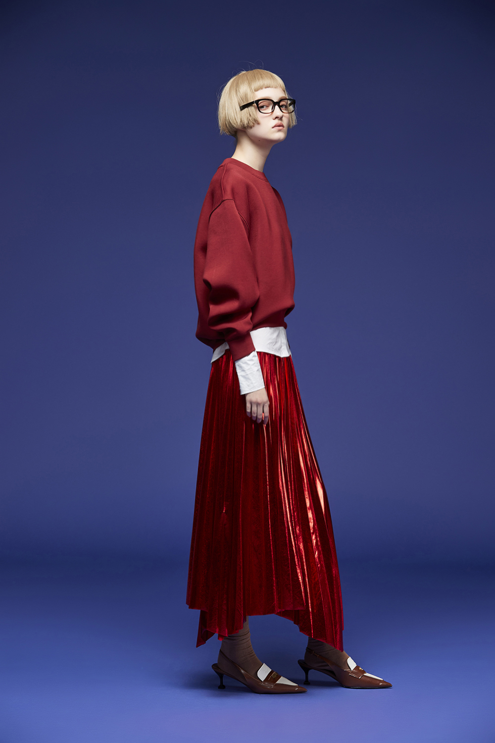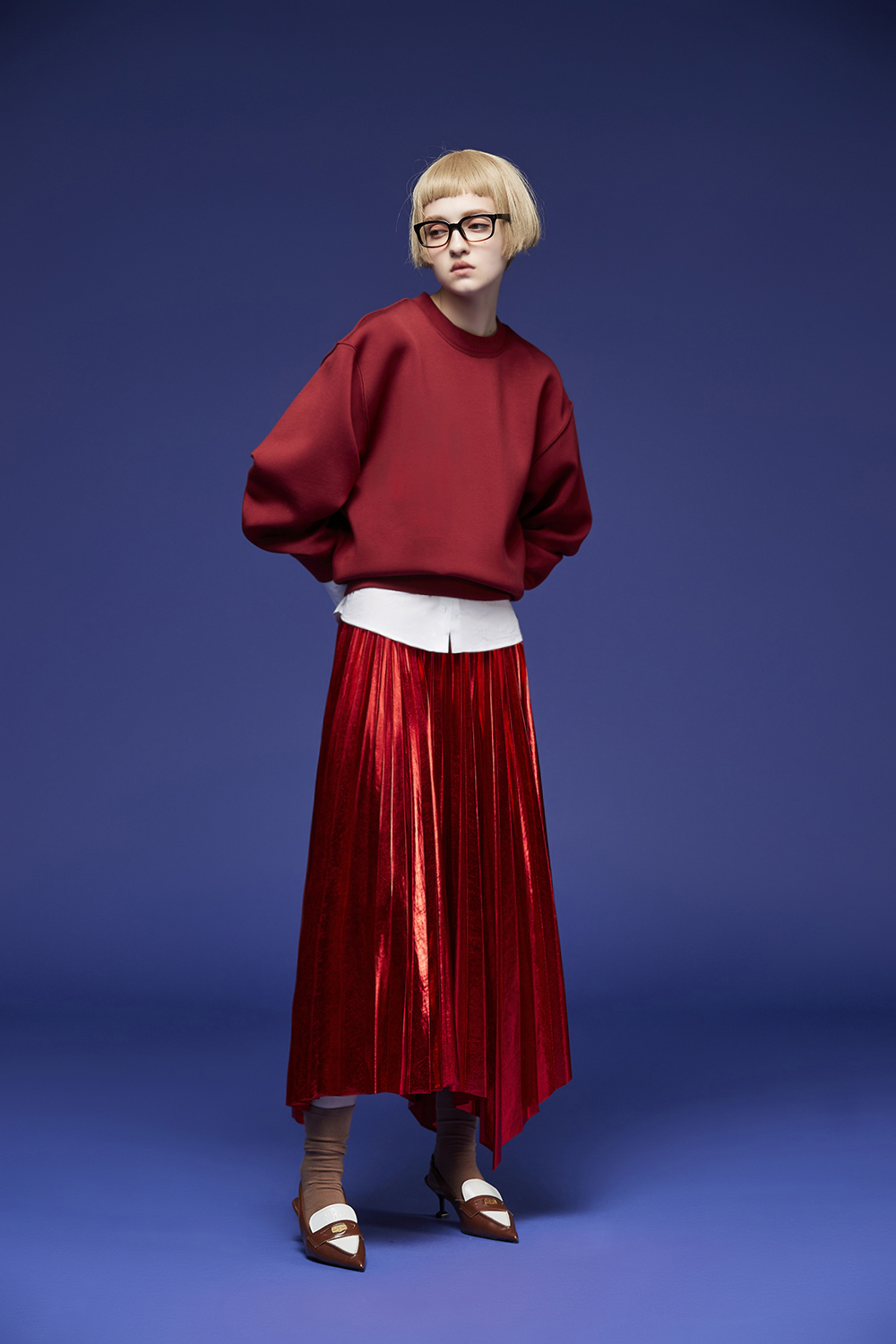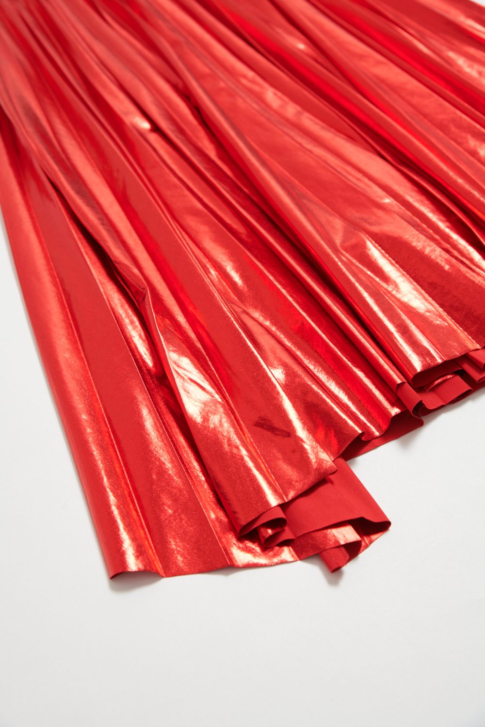 閃耀綻放不規則亮面百褶裙 - 耀眼赤紅, 40
