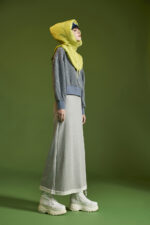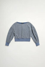 灰色舞會牛仔感一字領上衣 - 寧靜黛藍, 38