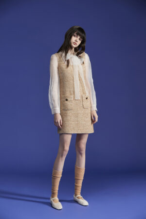 華麗金蔥花紗材質,將浪漫一併拼接上 透過方領的表現讓妳在正式場合裡獲得力量