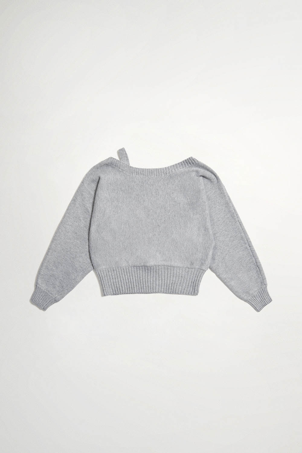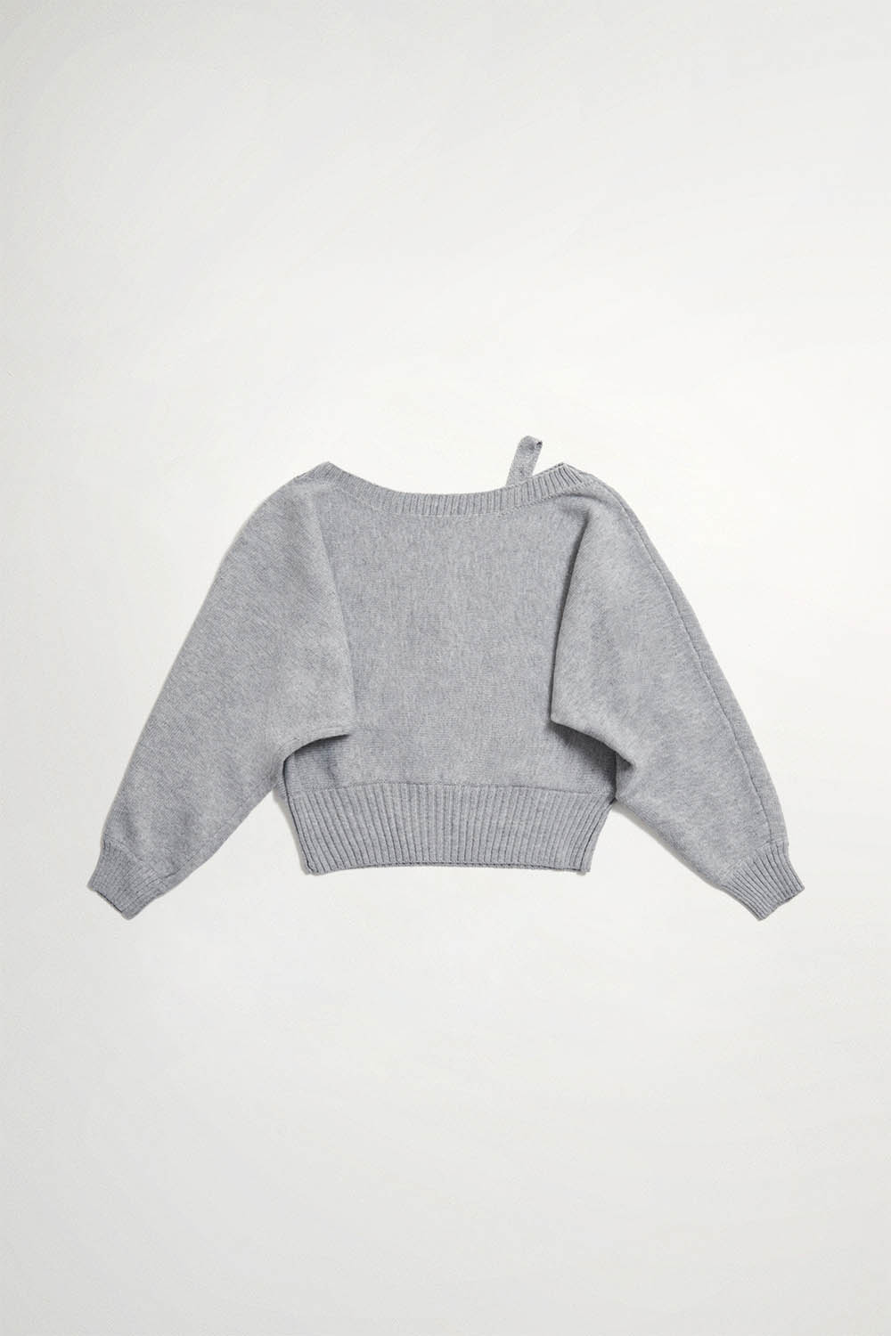 俏皮舞會不規則露肩針織上衣 - 沉穩霧灰, F