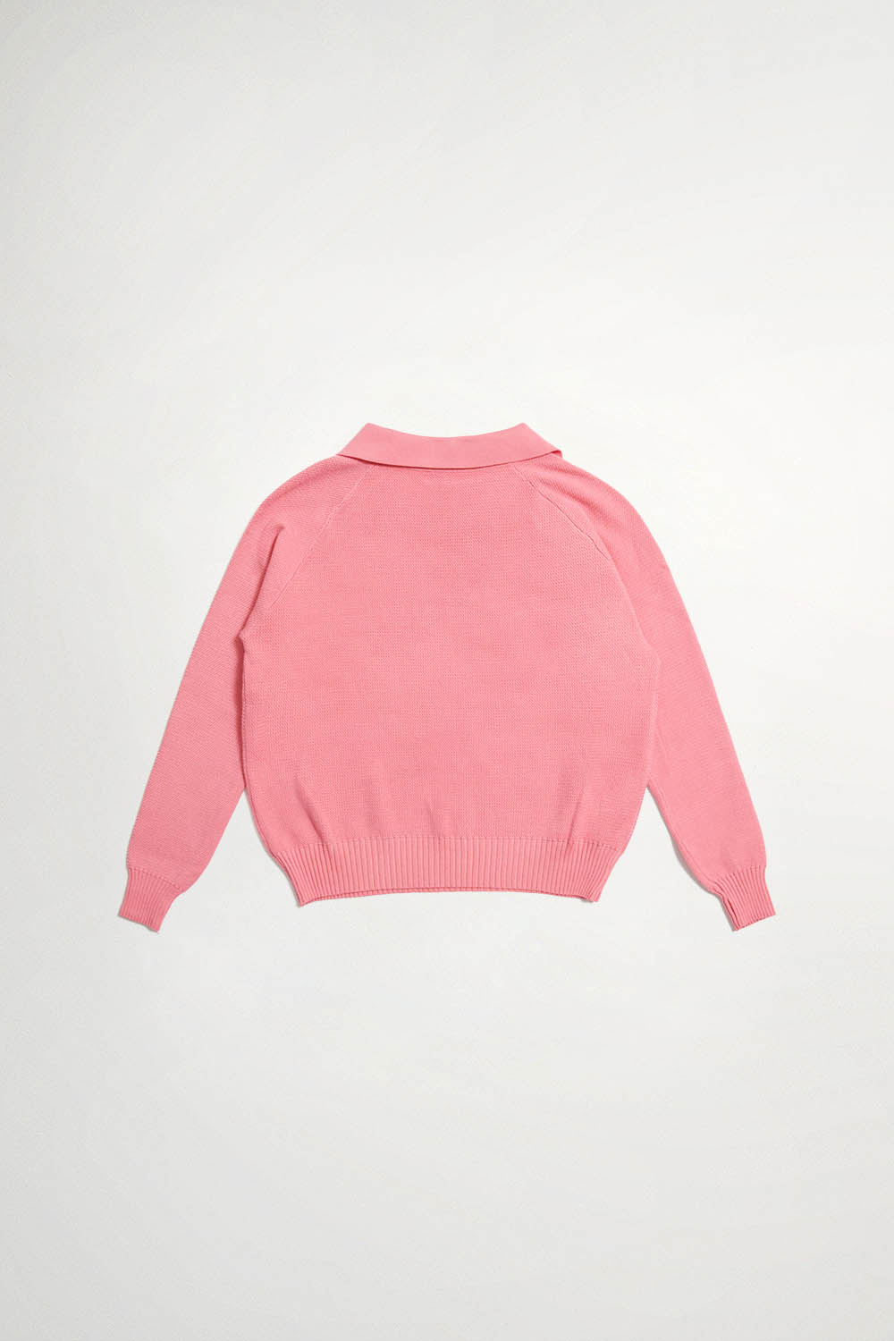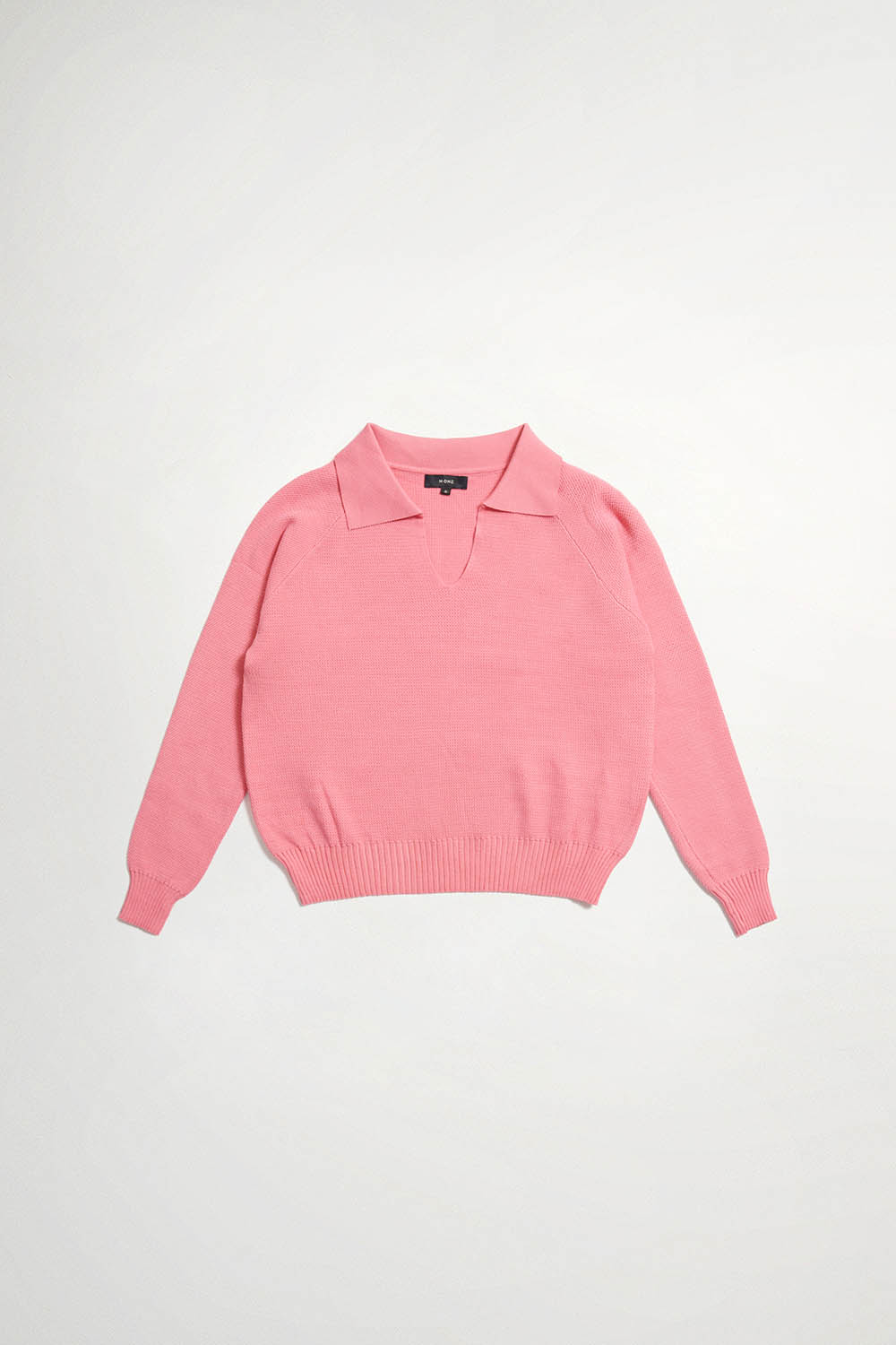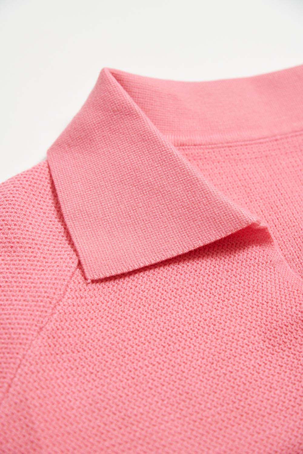 春日心動襯衫式V領針織上衣 - 微施粉澤, F