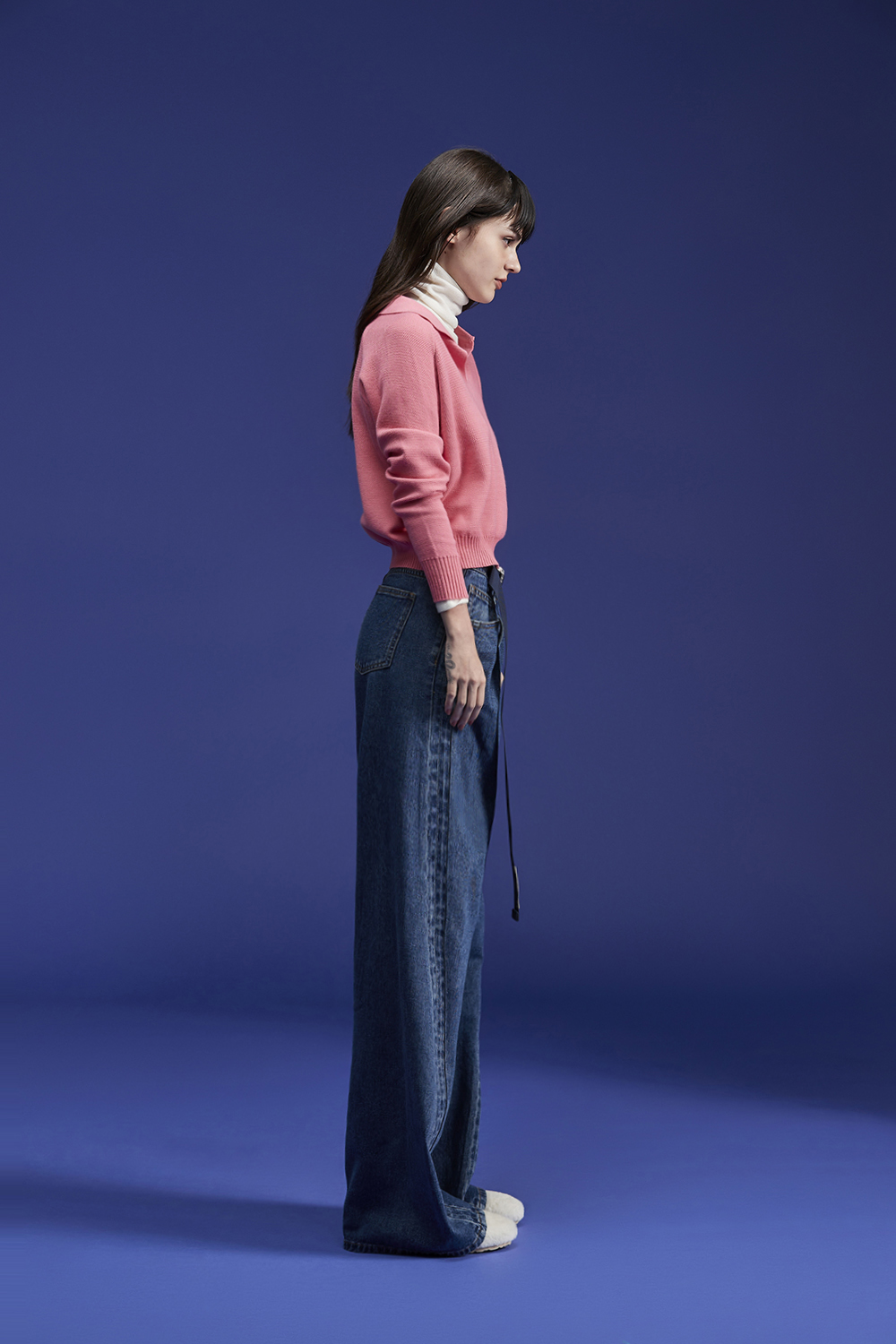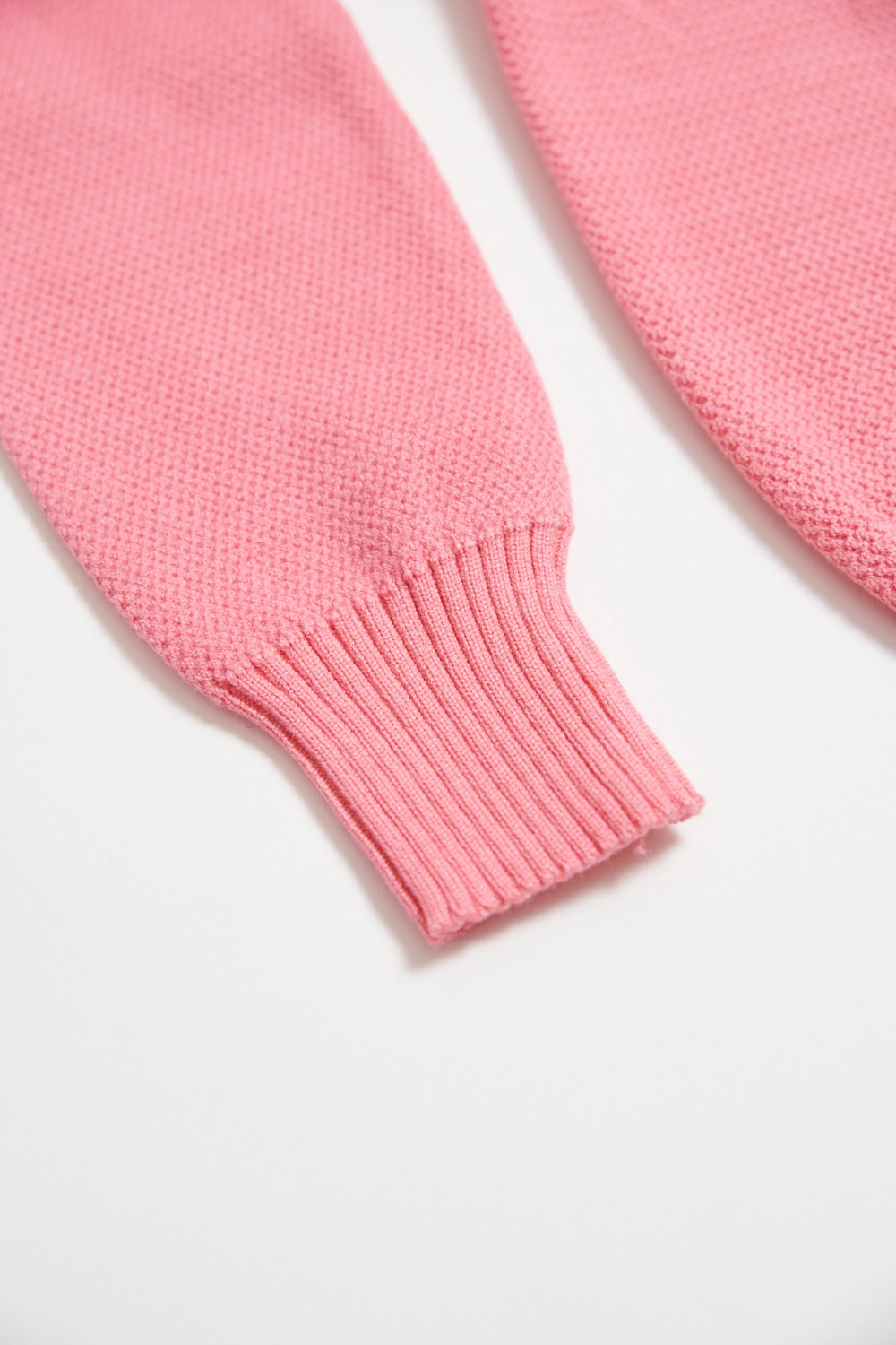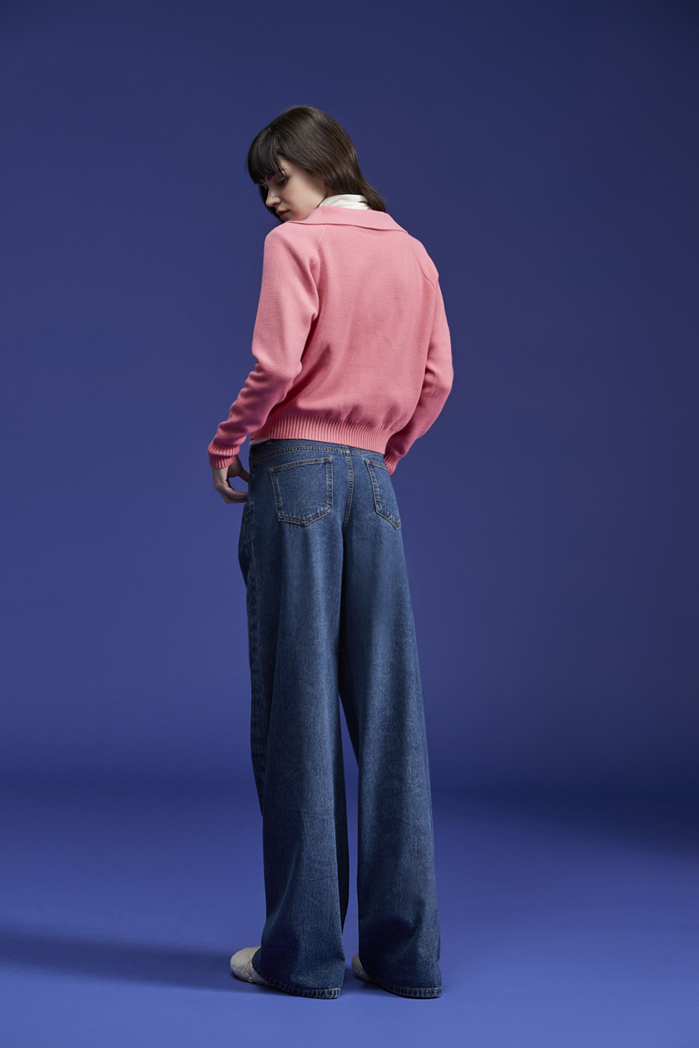 春日心動襯衫式V領針織上衣 - 微施粉澤, F