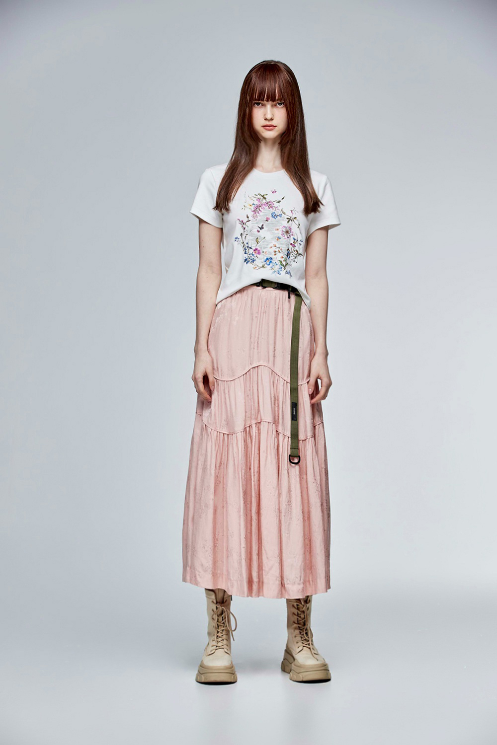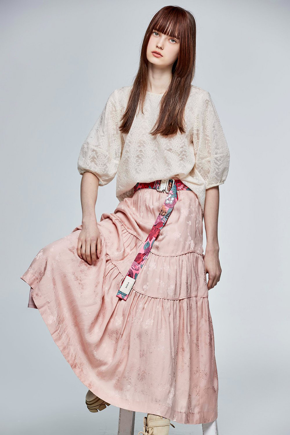 流動美感表現從容悠然,搭配上緹花面料,讓春日粉嫩氣息穿在身上