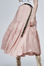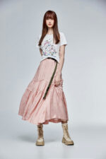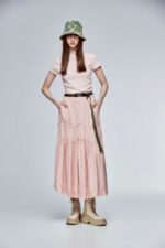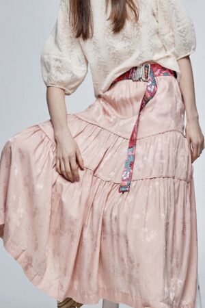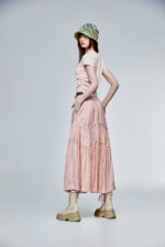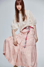 流動美感表現從容悠然,搭配上緹花面料,讓春日粉嫩氣息穿在身上