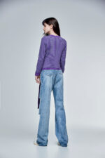 迷情詩人假兩件細條圓領上衣 - 薰衣草紫, 38