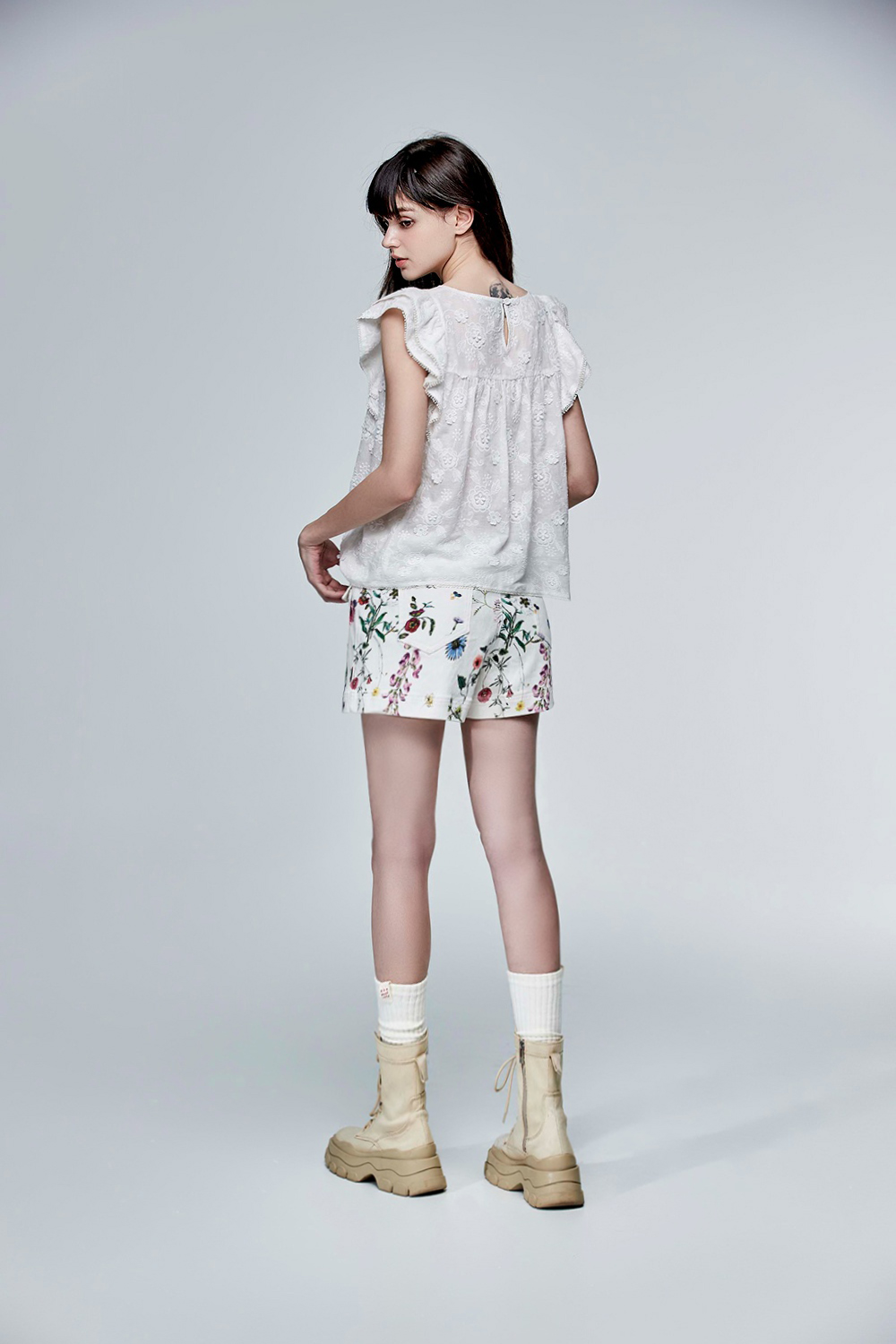 春日補月繡花荷葉上衣 - 無瑕純白, 38