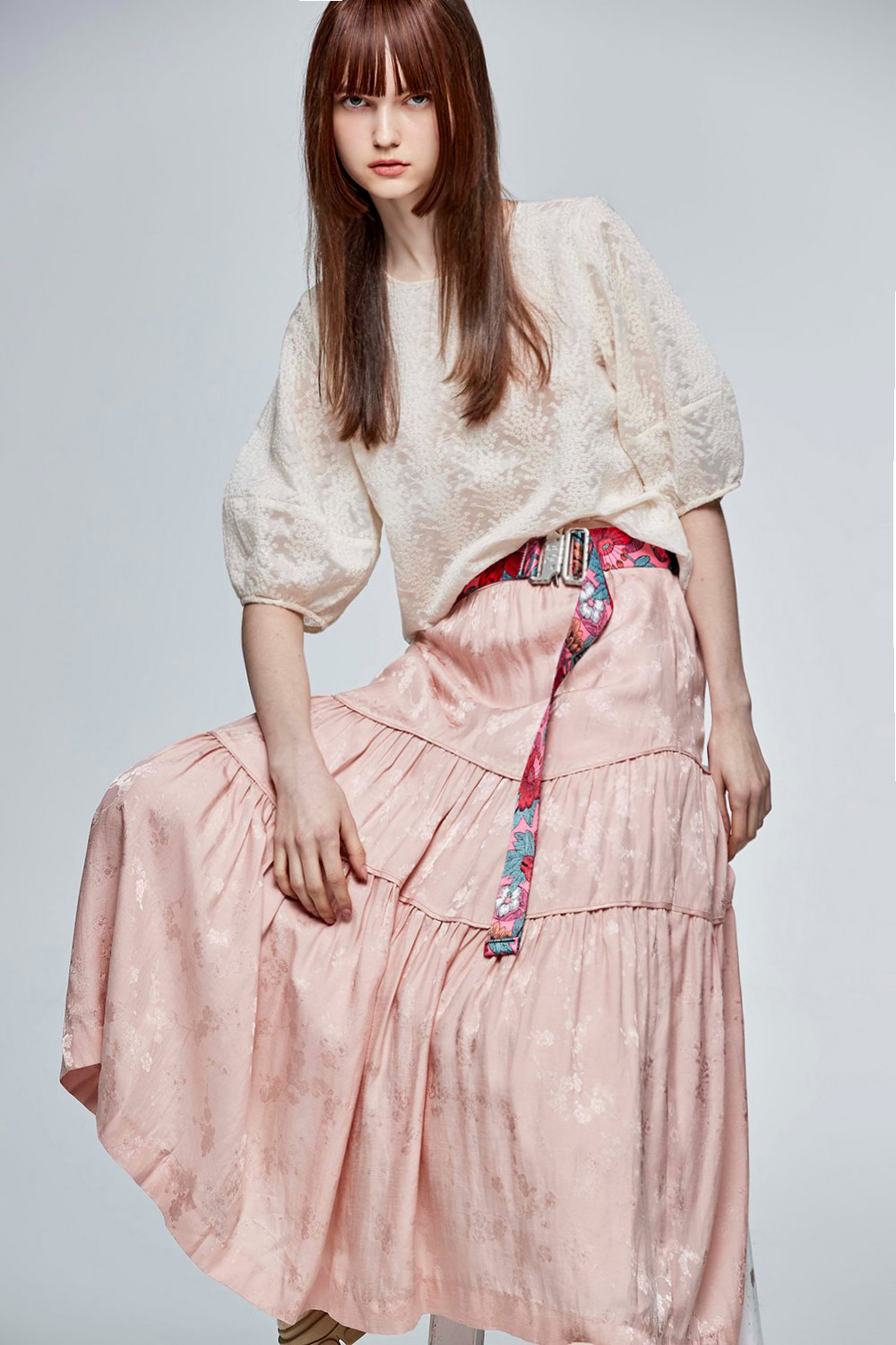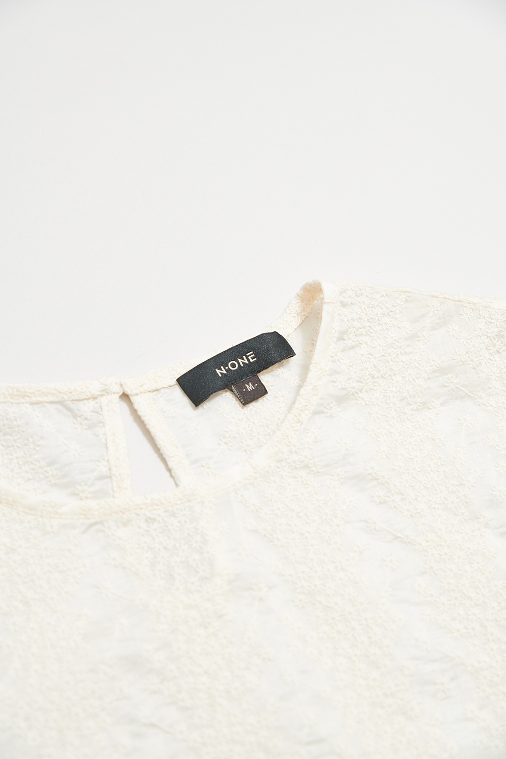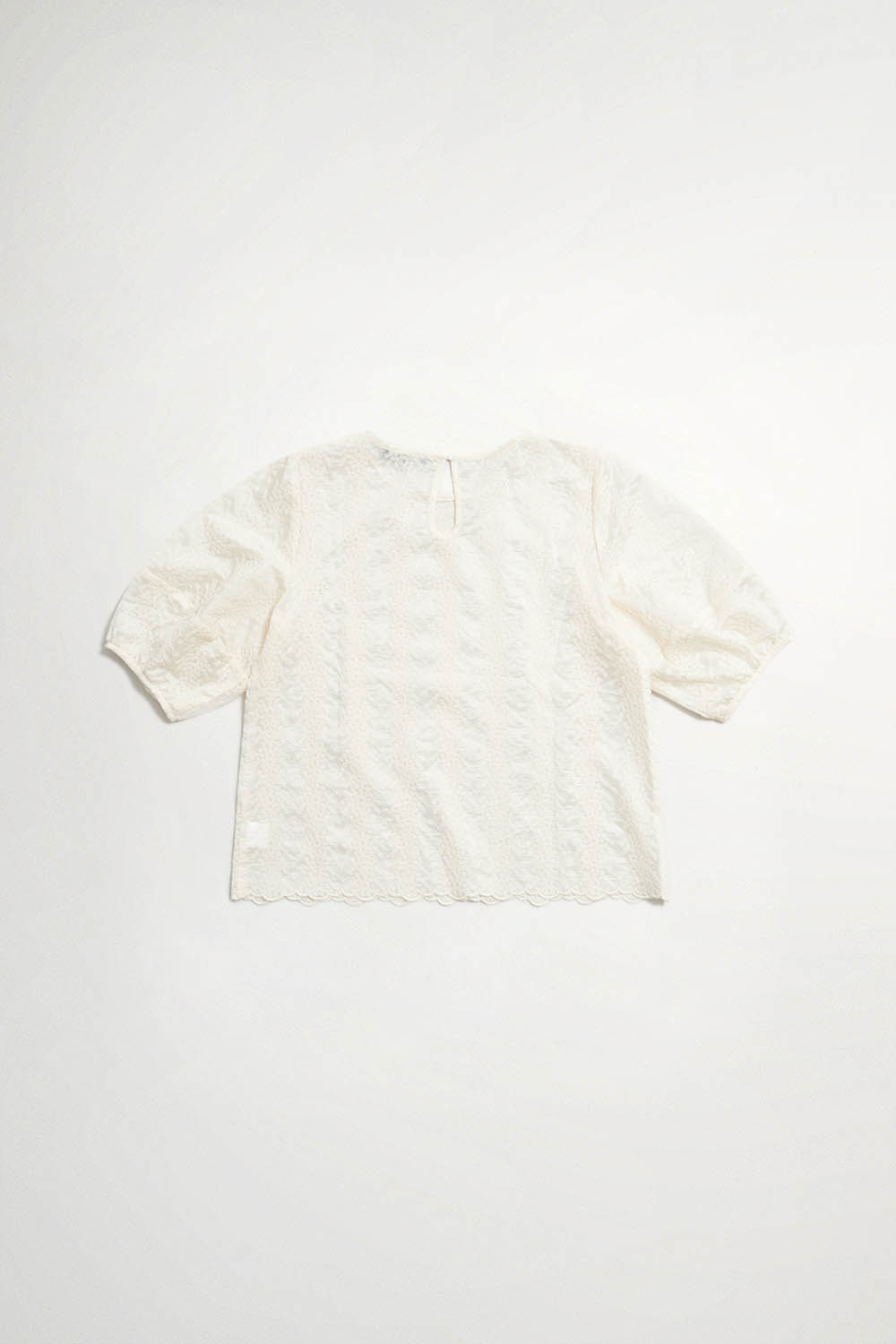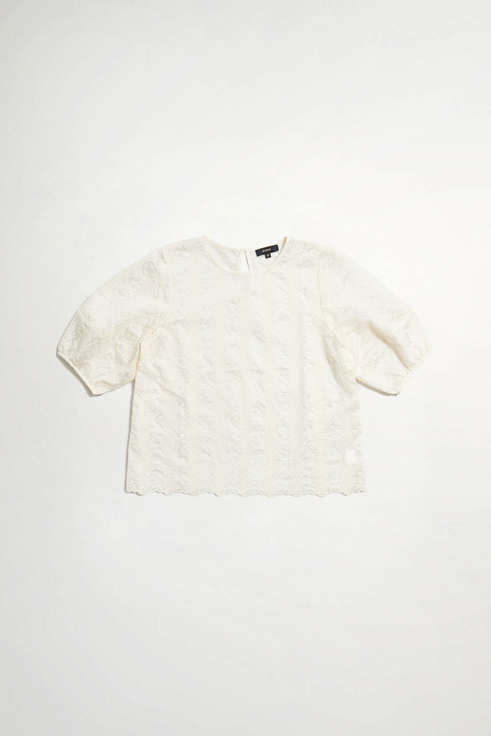 甜味春風花瓣邊繡花寬袖上衣 - 奶油杏色, 38