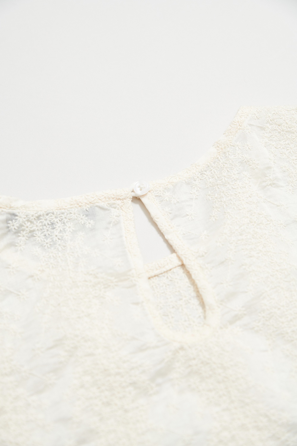 甜味春風花瓣邊繡花寬袖上衣 - 奶油杏色, 36
