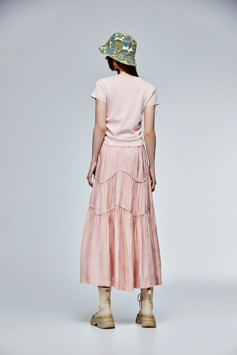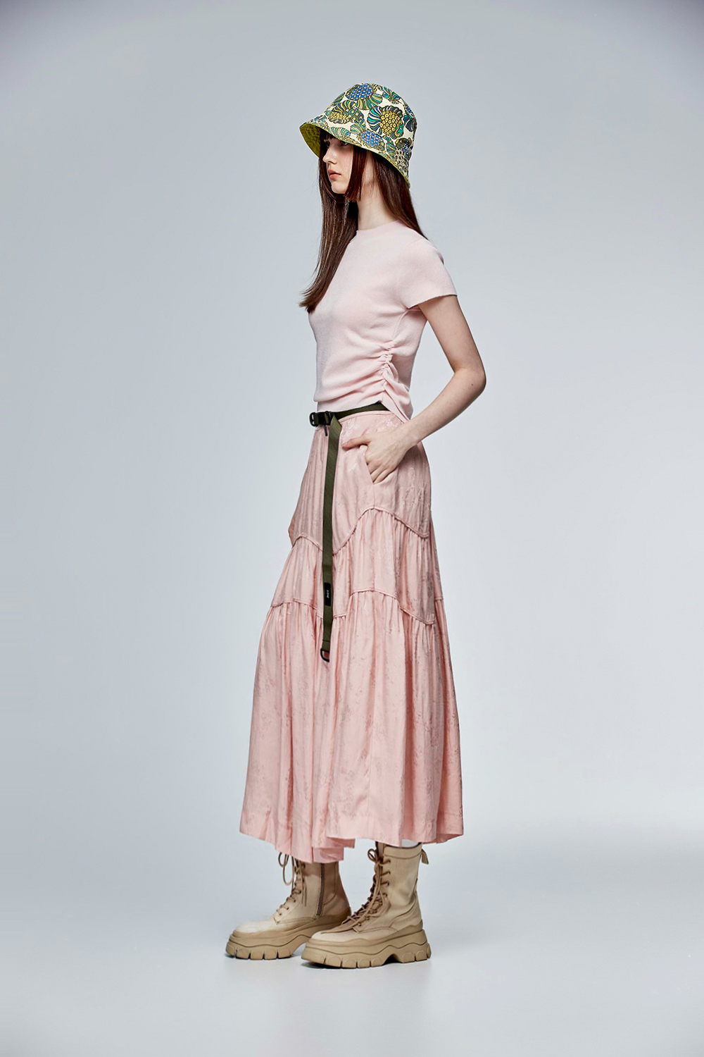 初戀時刻抓皺修身針織上衣 - 微施粉澤, F