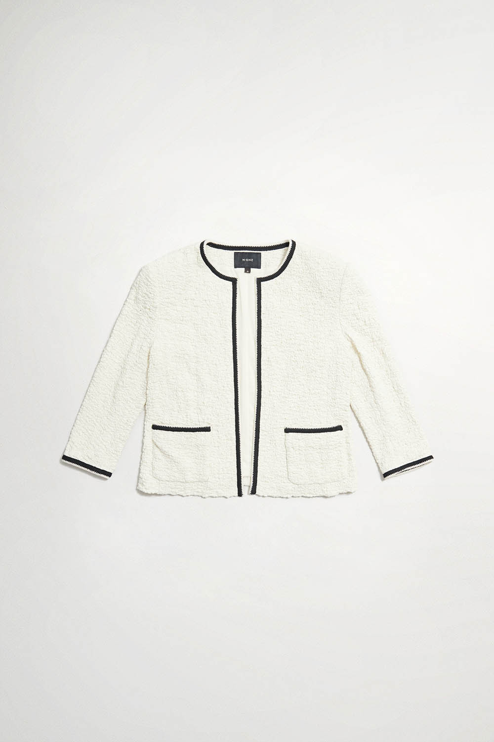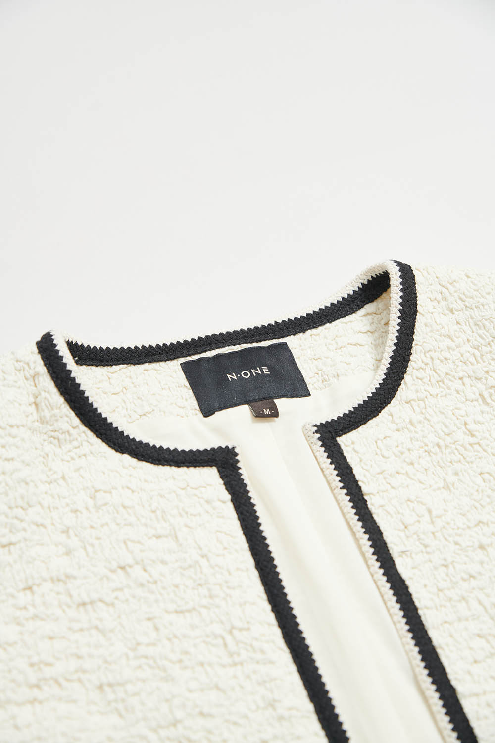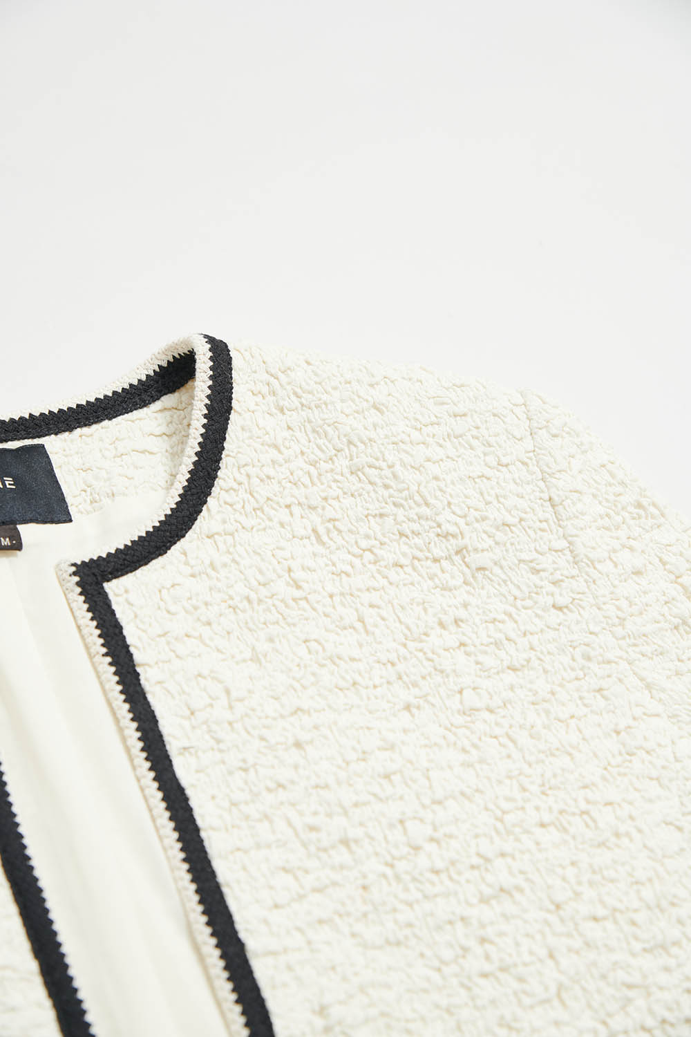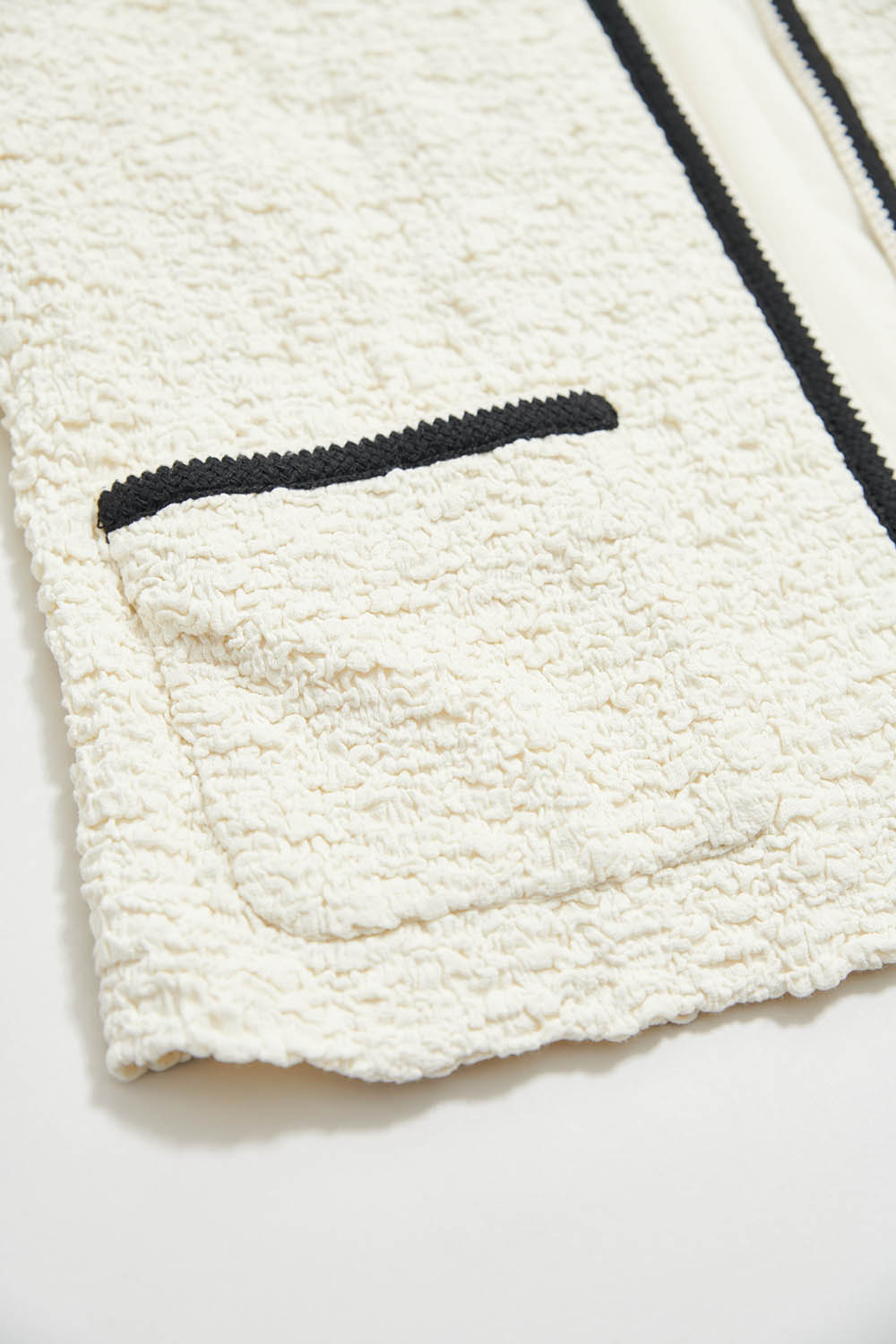 琉璃時光跳色彈力抓皺開襟外套 - 奶油杏色, 38