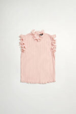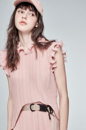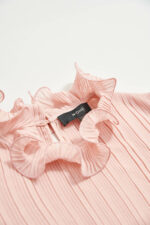 粉色海浪百褶木耳荷葉袖上衣