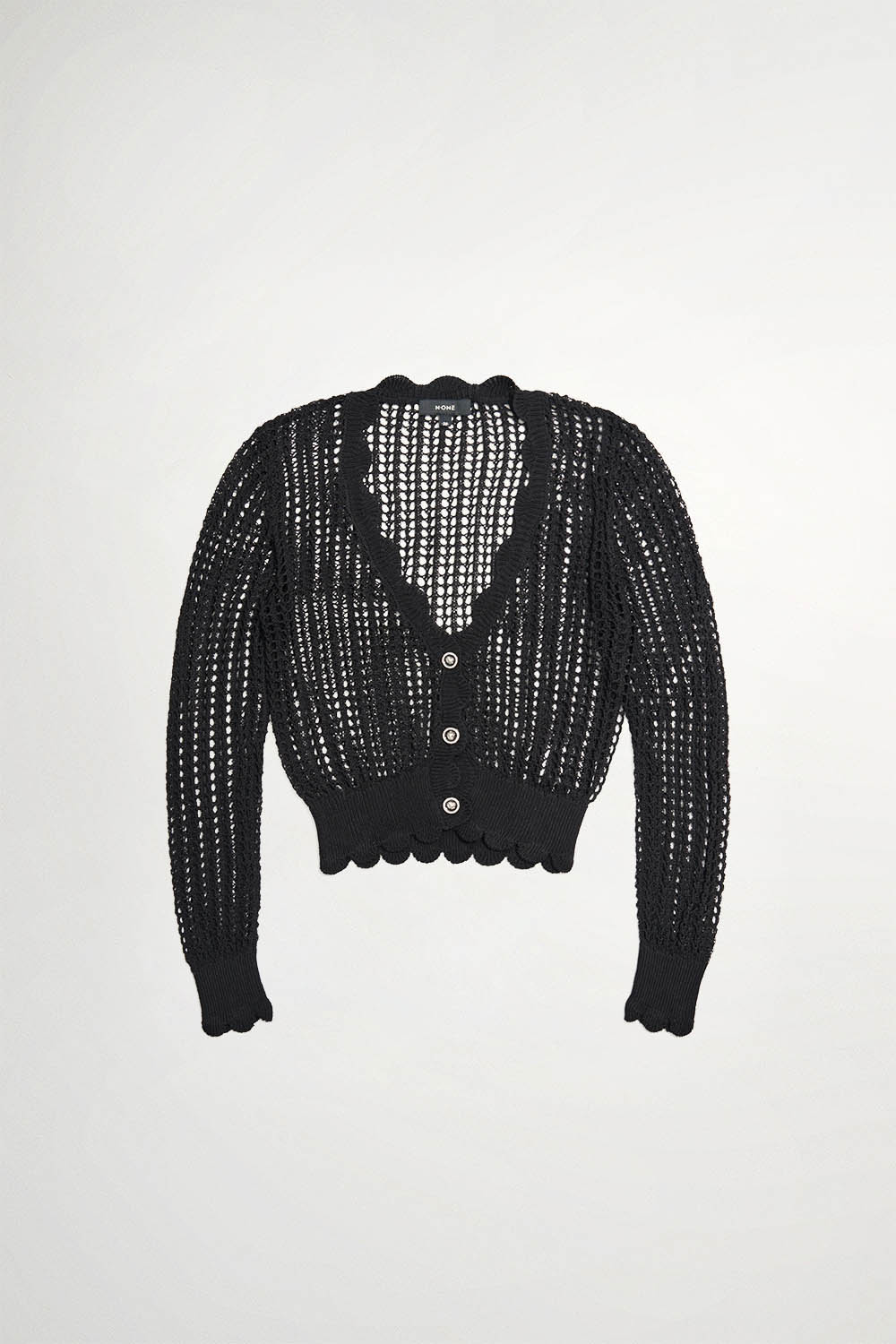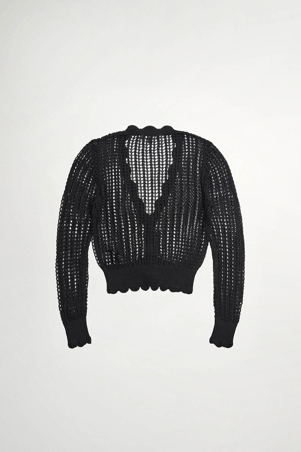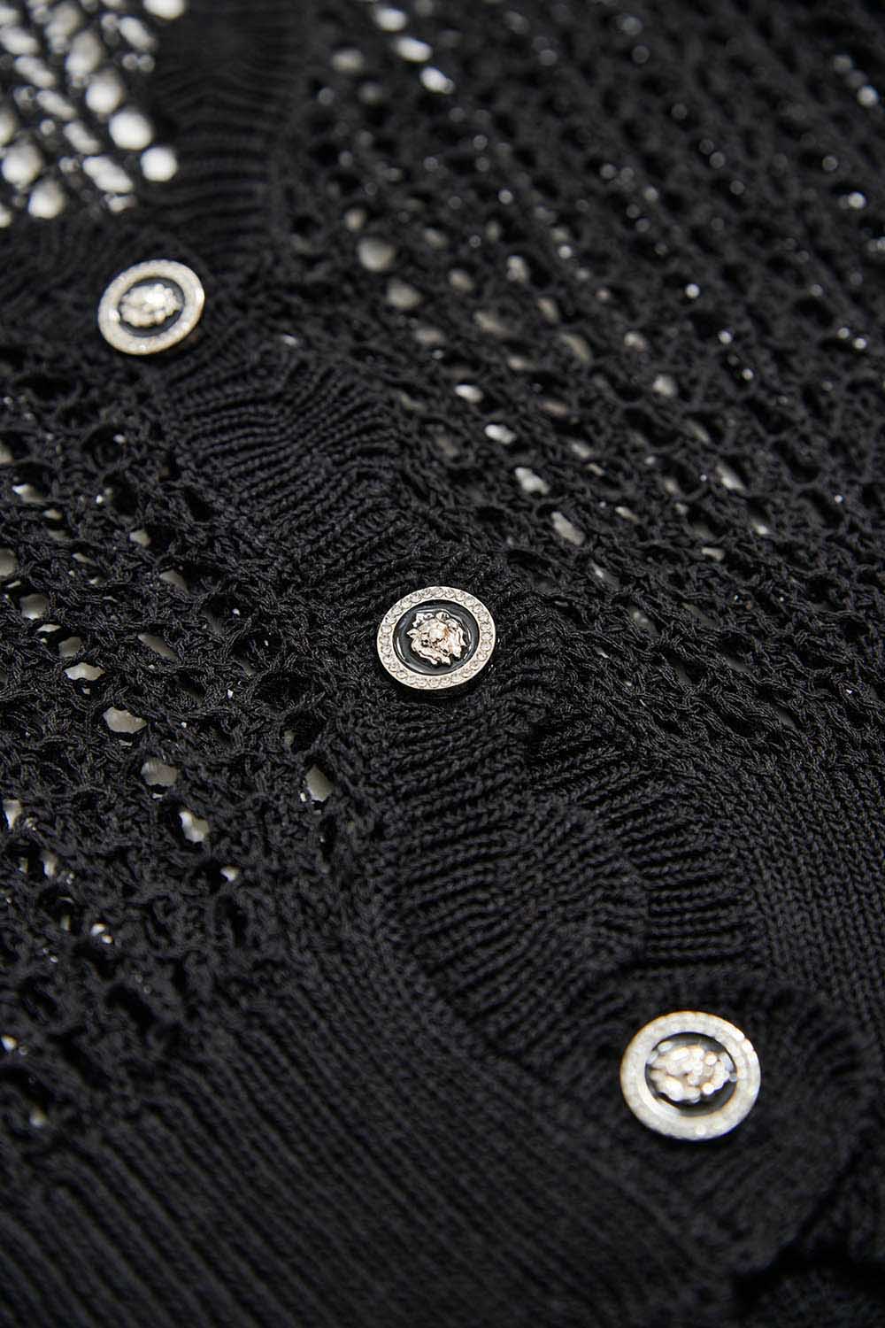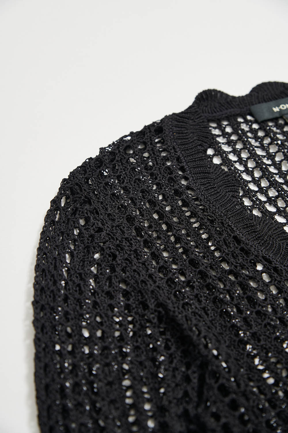 暗夜魅影花邊簍空針織外套 - 神祕純黑, 40