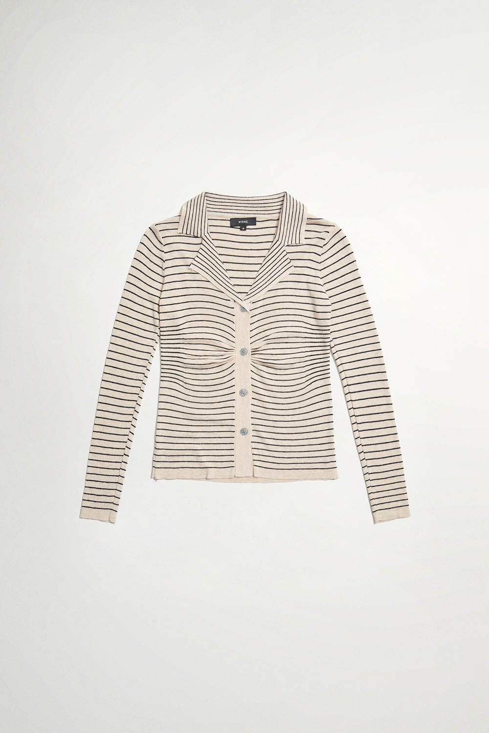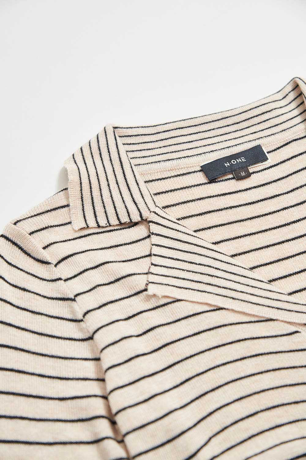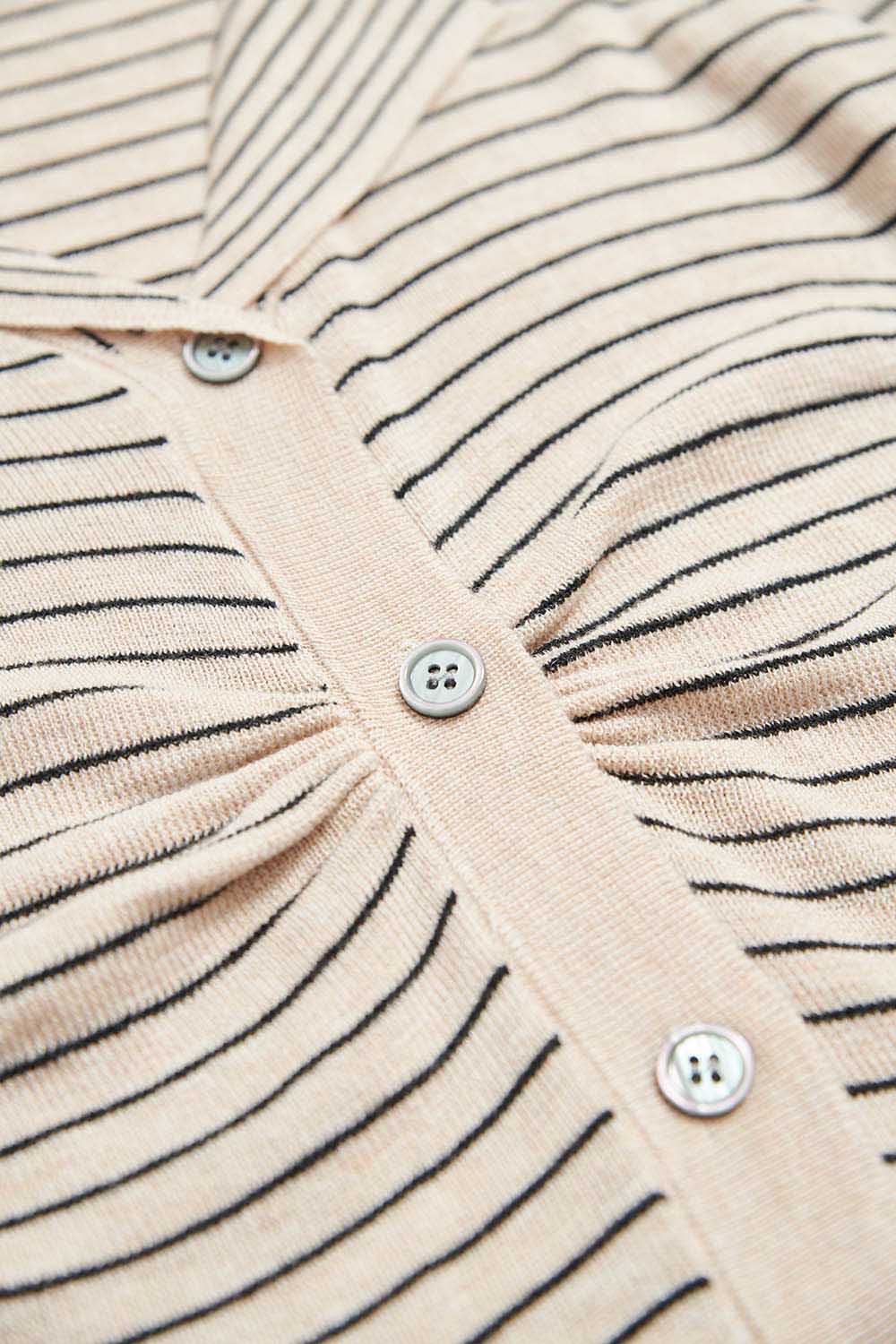舒適時光V領條紋針織外套 - 可可卡其, F