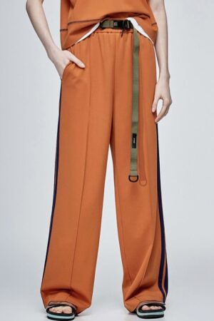 活力橘質感配色休閒長褲 - 晚霞橘, 40