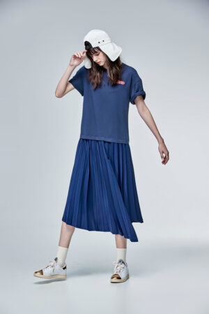活力氣息不規則百褶裙擺休閒洋裝 - 寧靜黛藍, 36